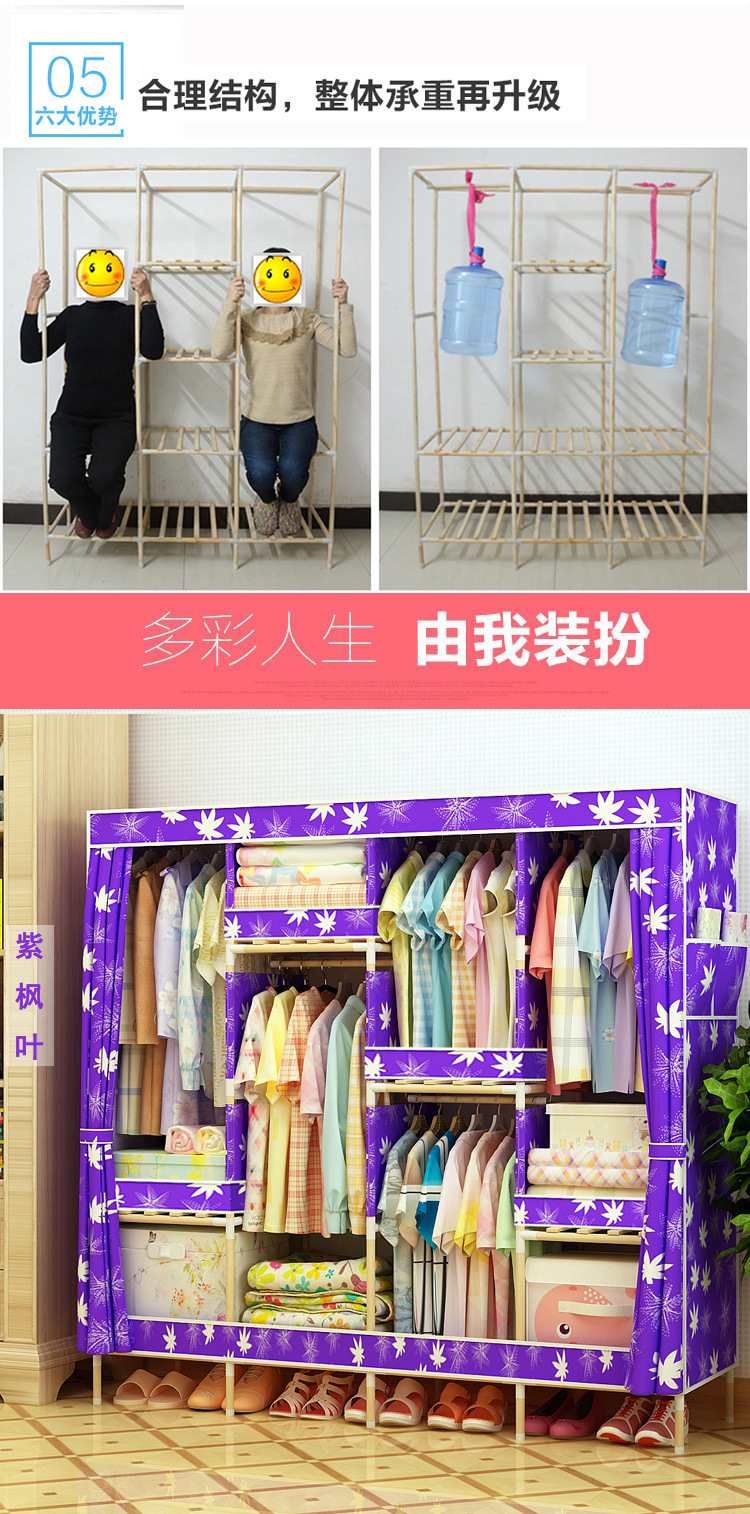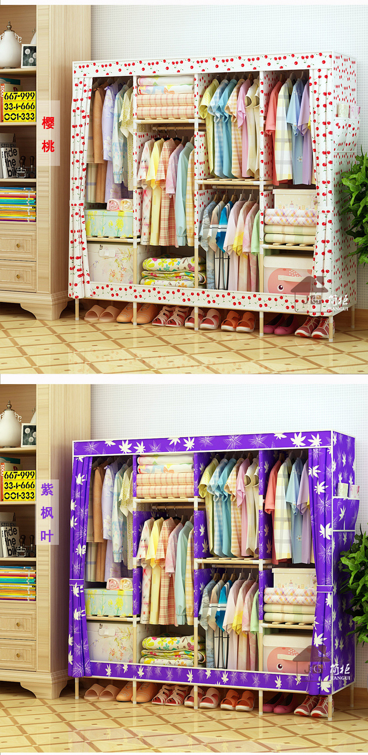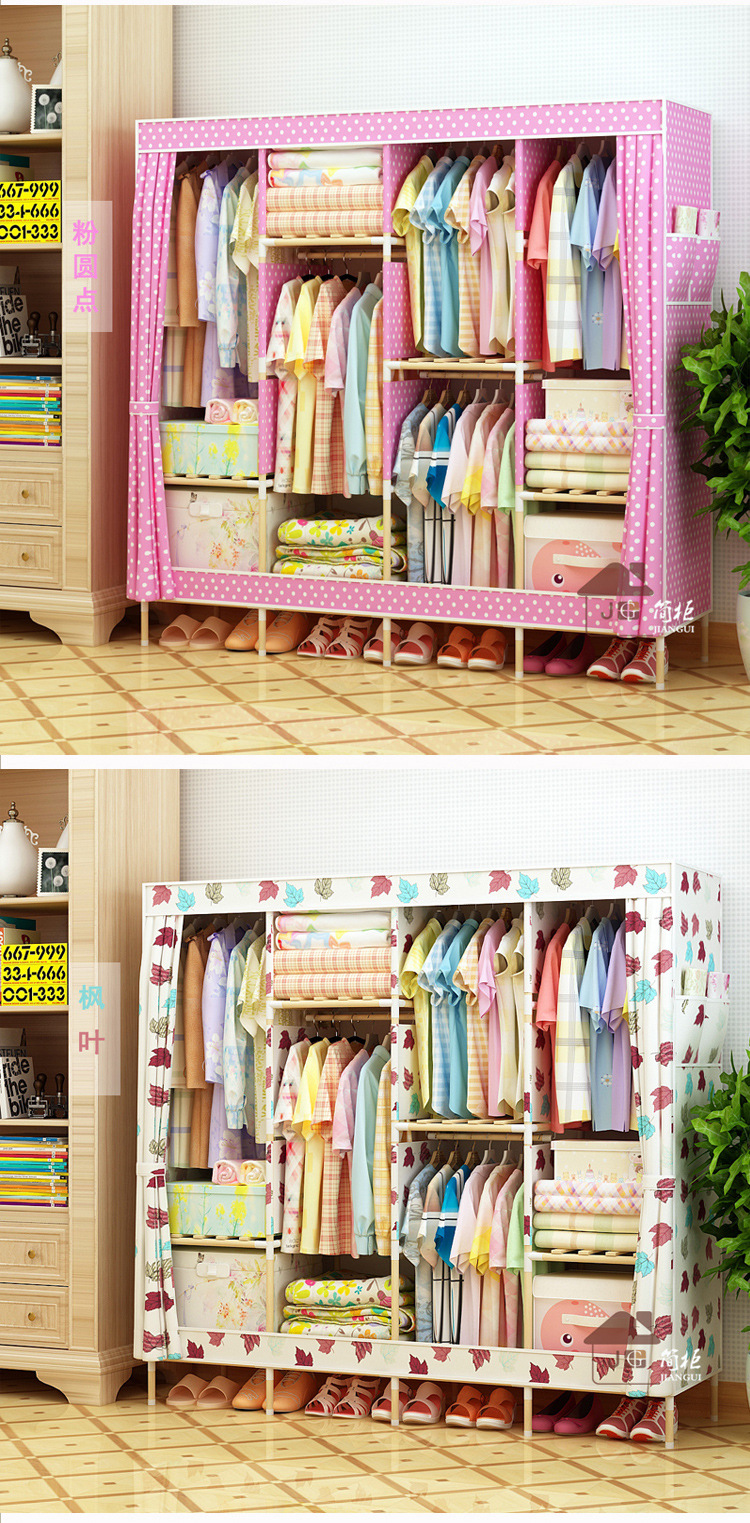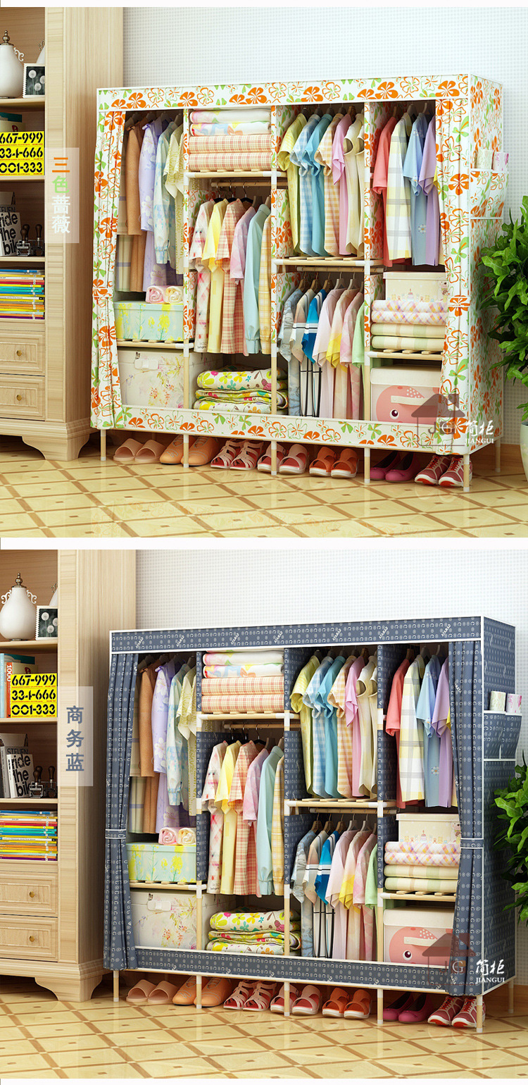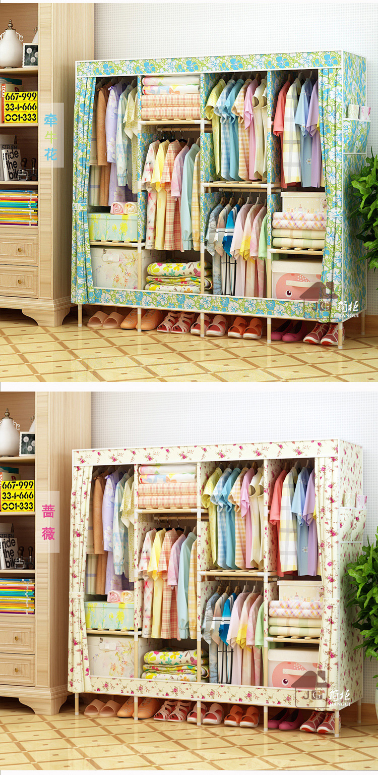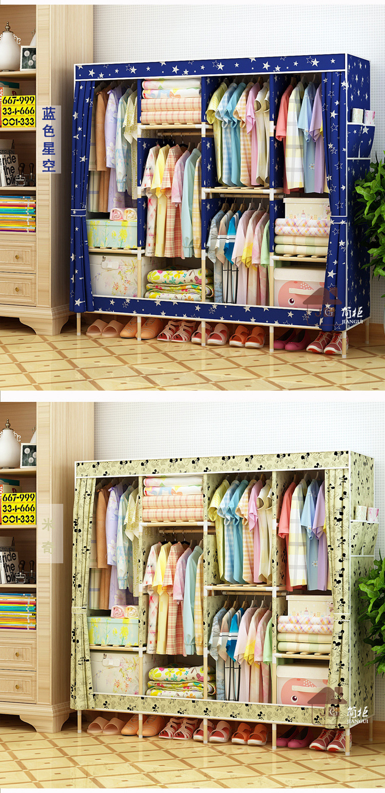 美汇特供:2017新款牛津布简易衣柜加粗实木衣柜布衣柜折叠布衣橱