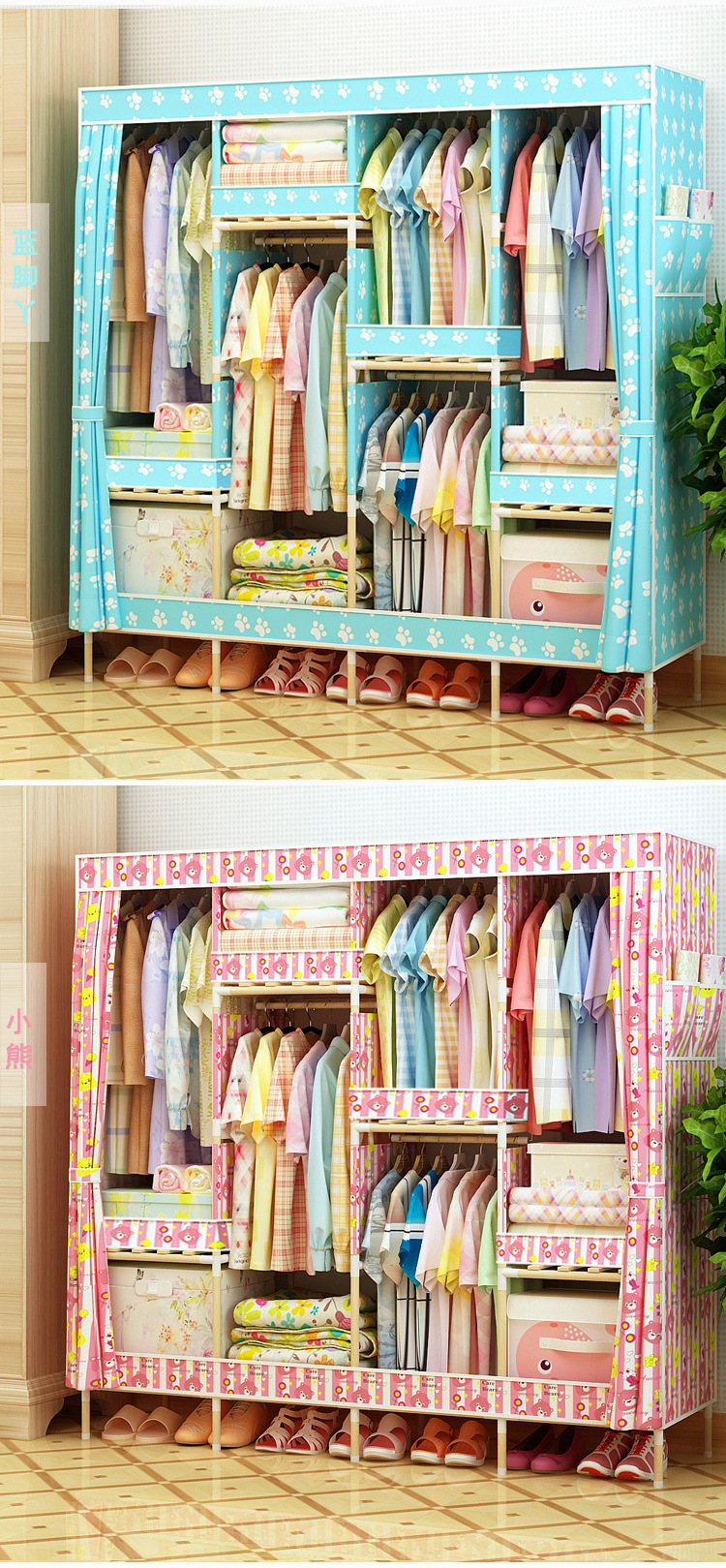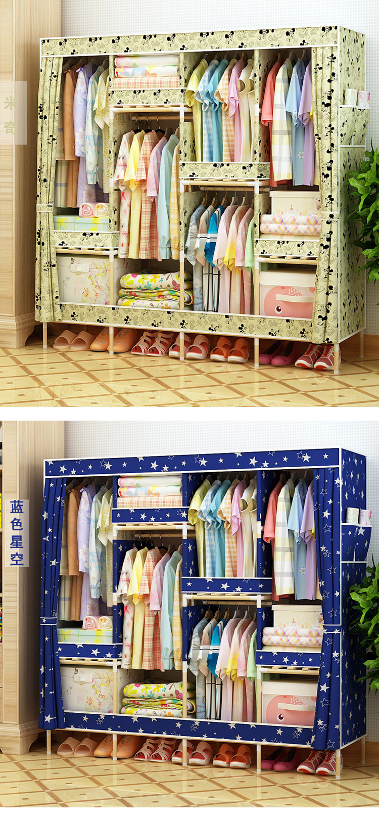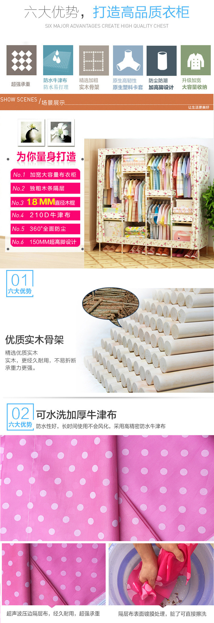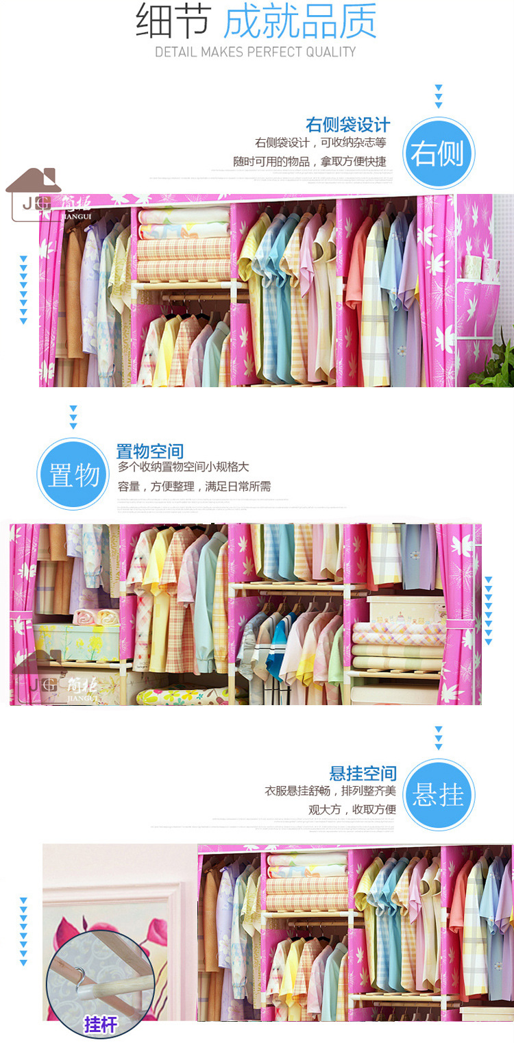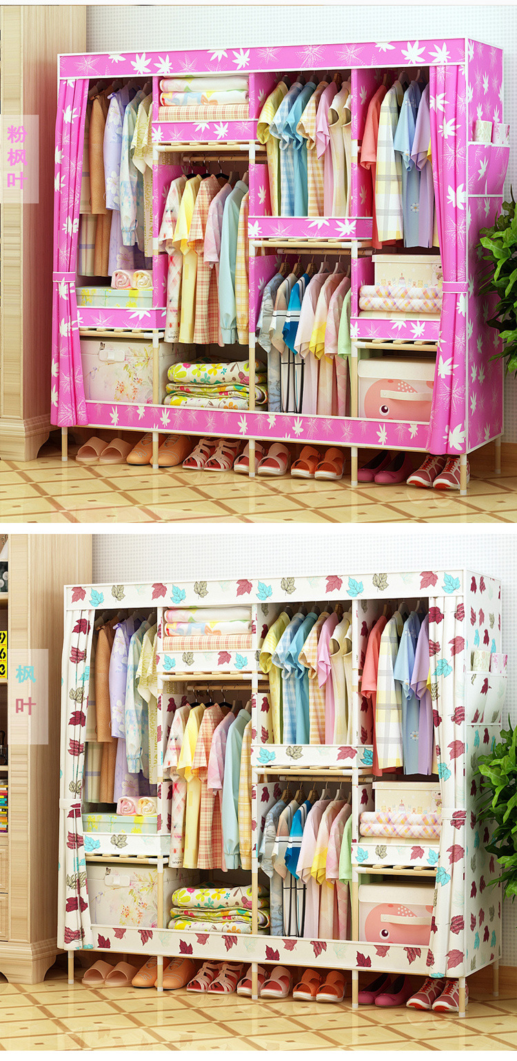 美汇特供:2017新款牛津布简易衣柜加粗实木衣柜布衣柜折叠布衣橱