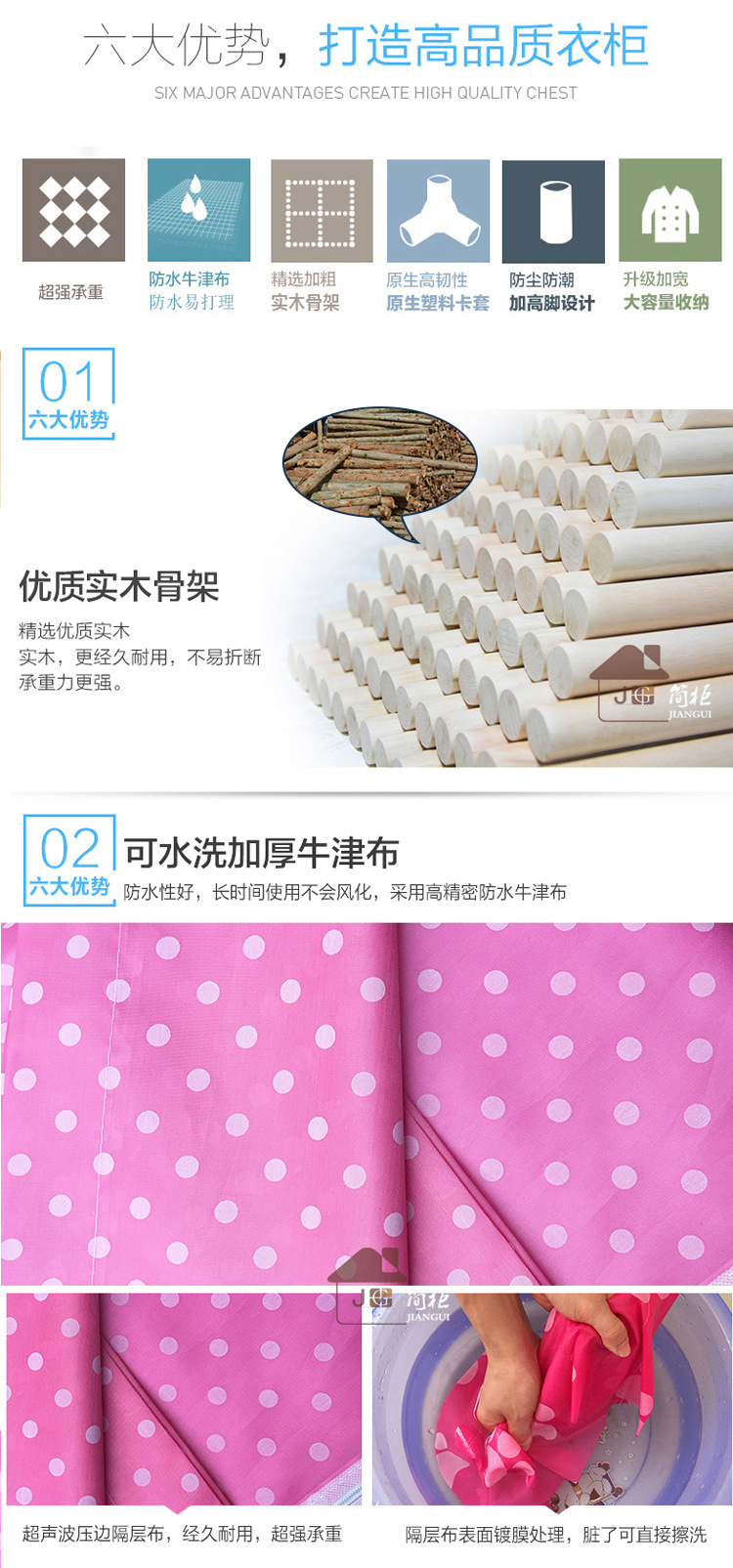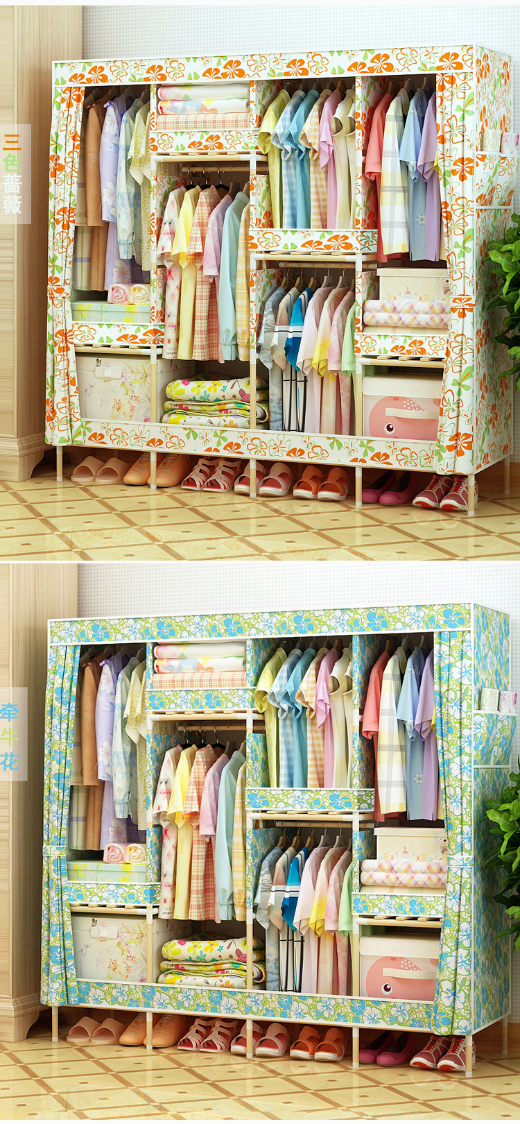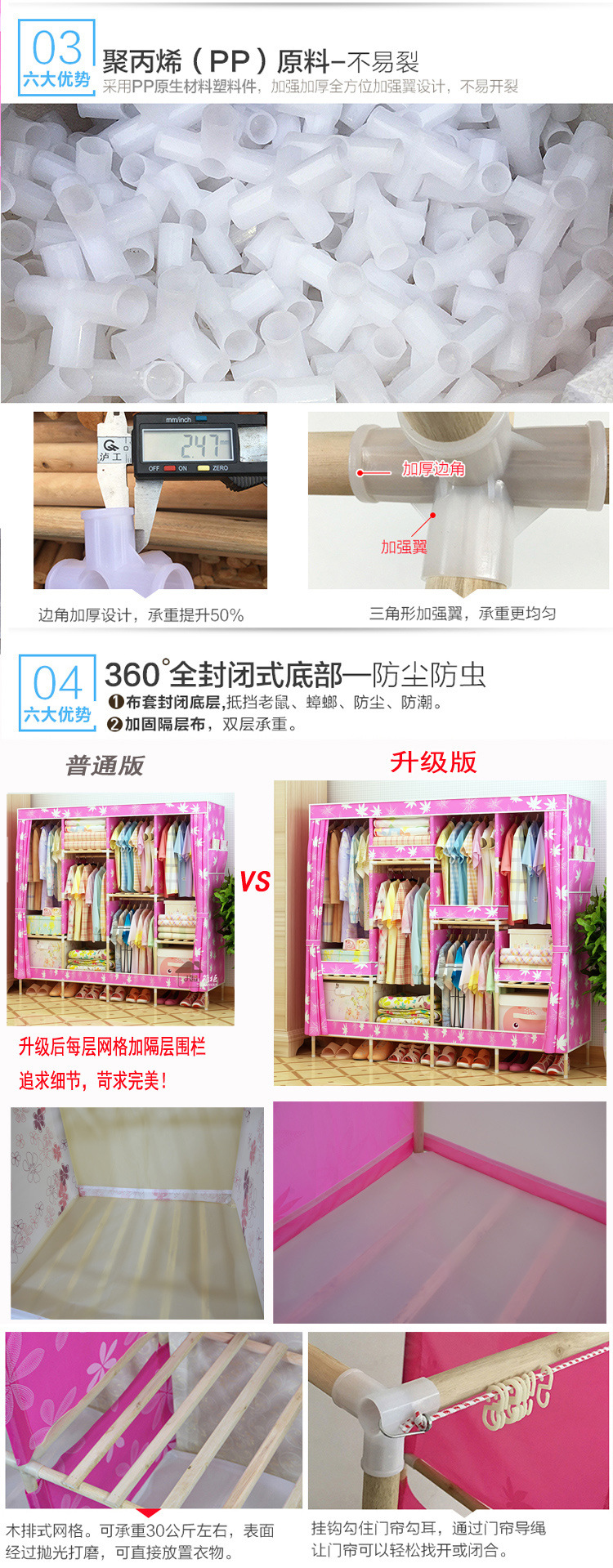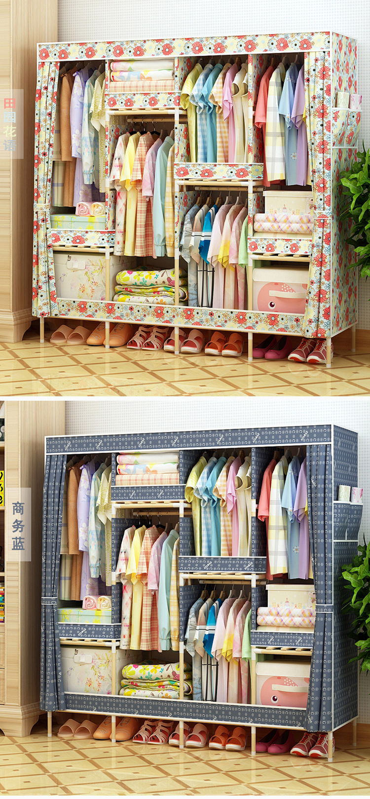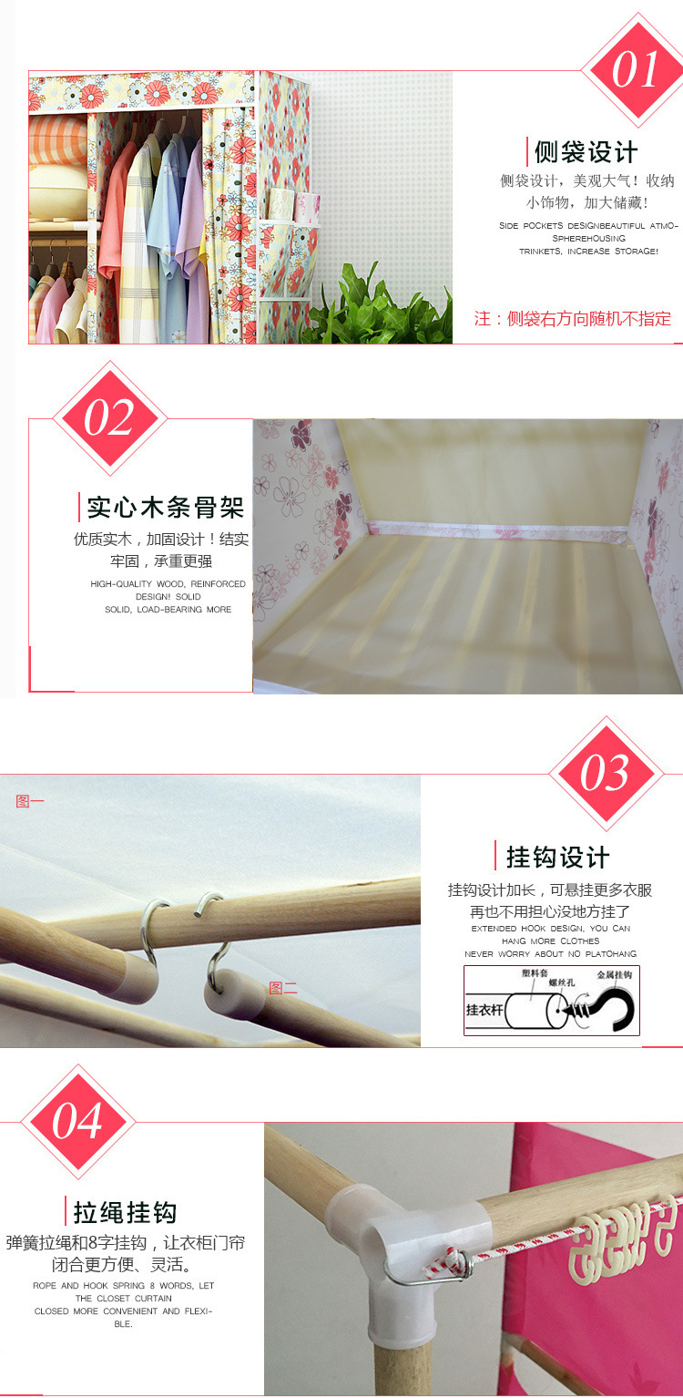 美汇特供:2017新款牛津布简易衣柜加粗实木衣柜布衣柜折叠布衣橱