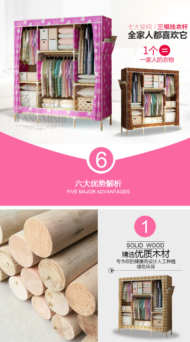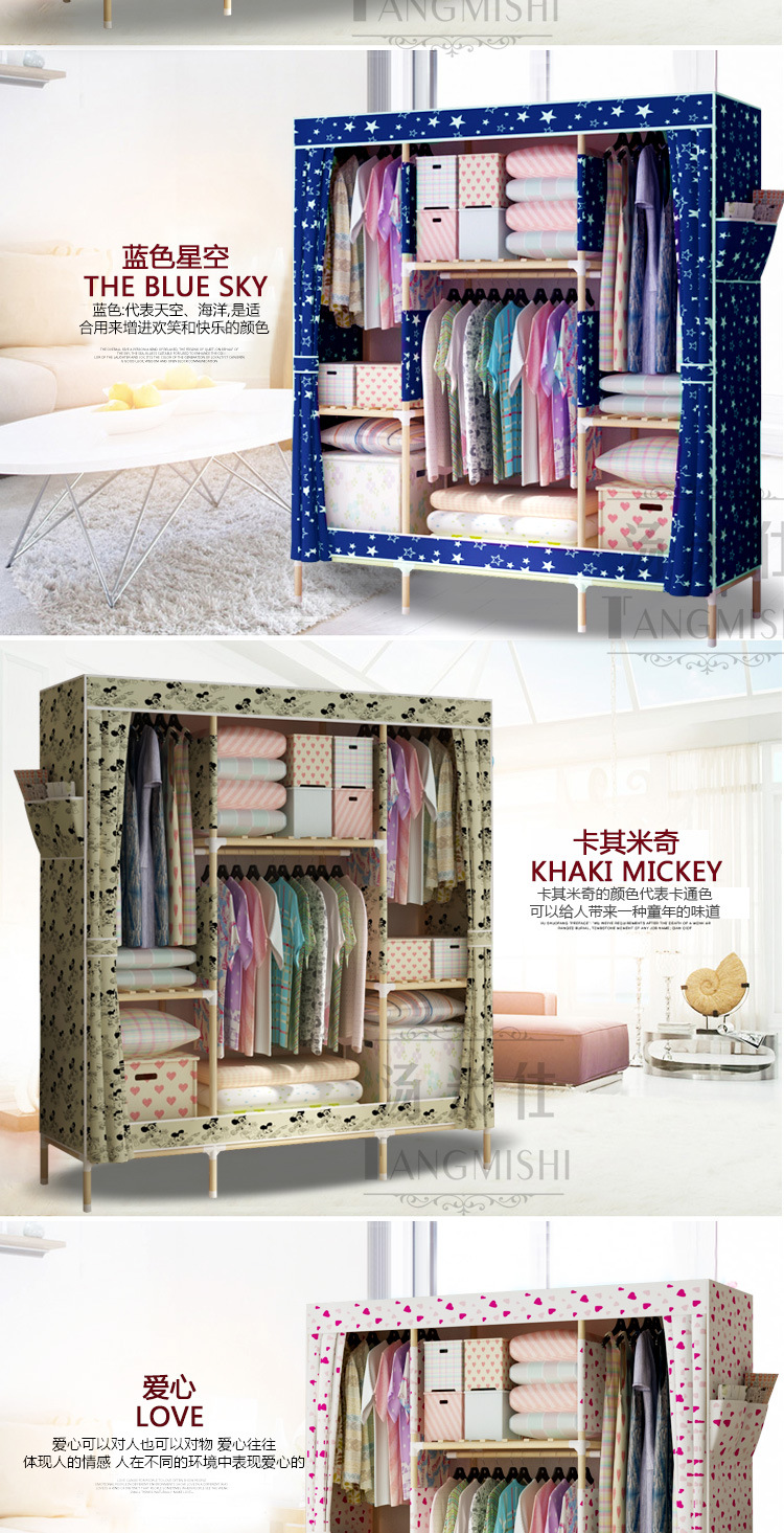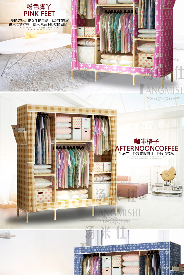 美汇特供:2017新款实木牛津布简易衣柜封闭防尘组装省空间布衣柜