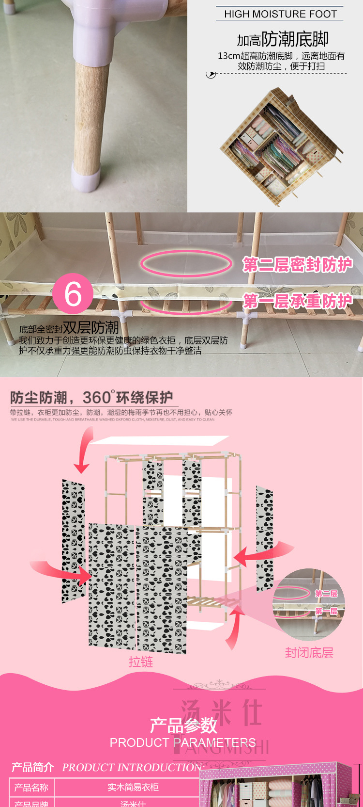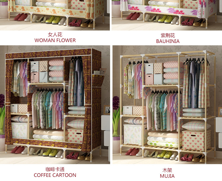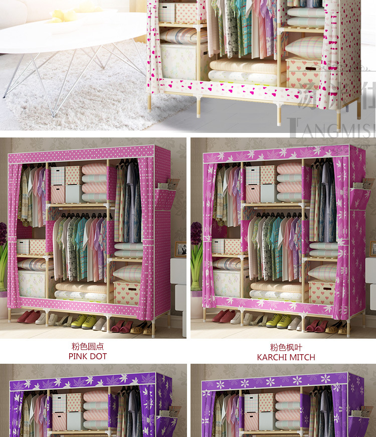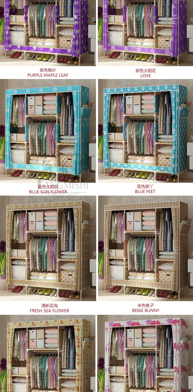 美汇特供:2017新款实木牛津布简易衣柜封闭防尘组装省空间布衣柜