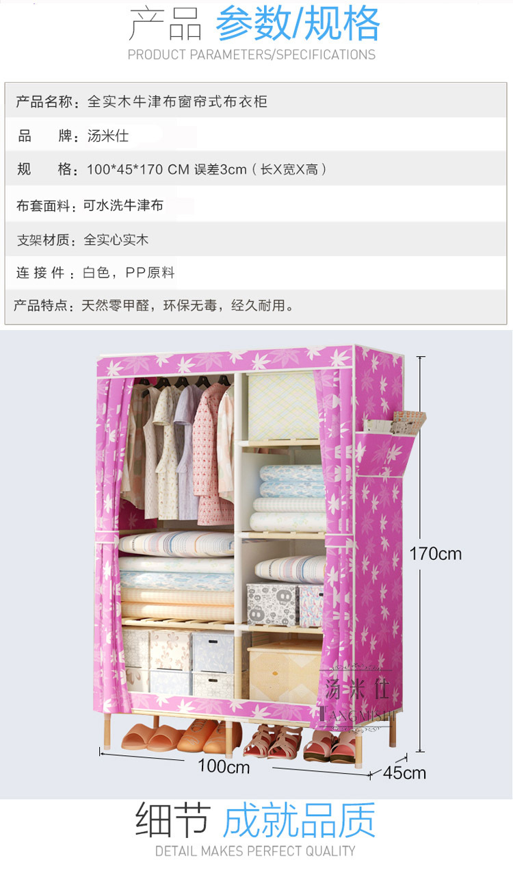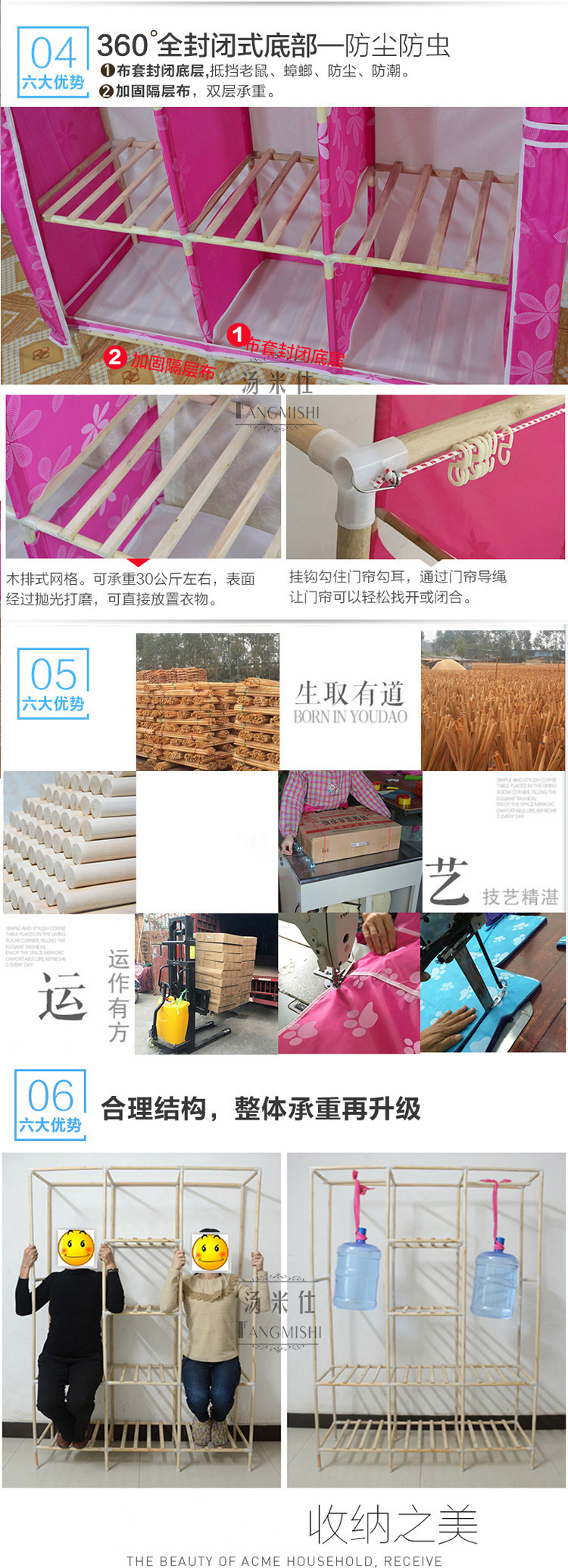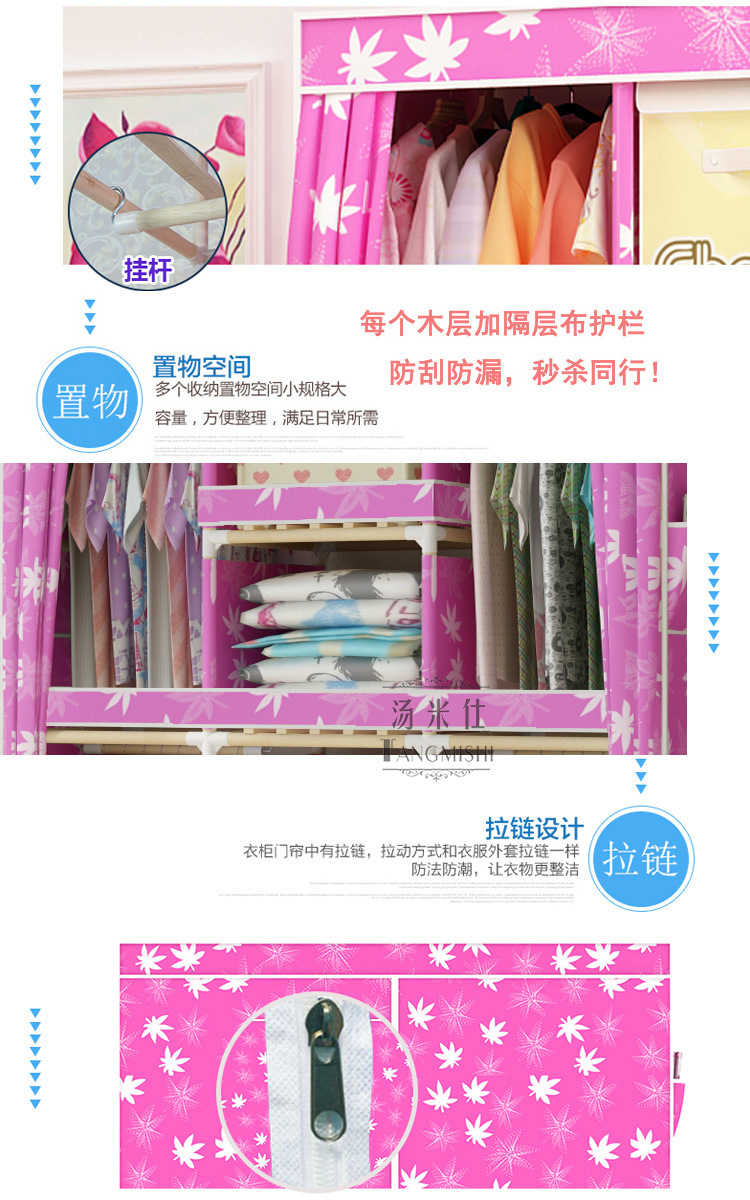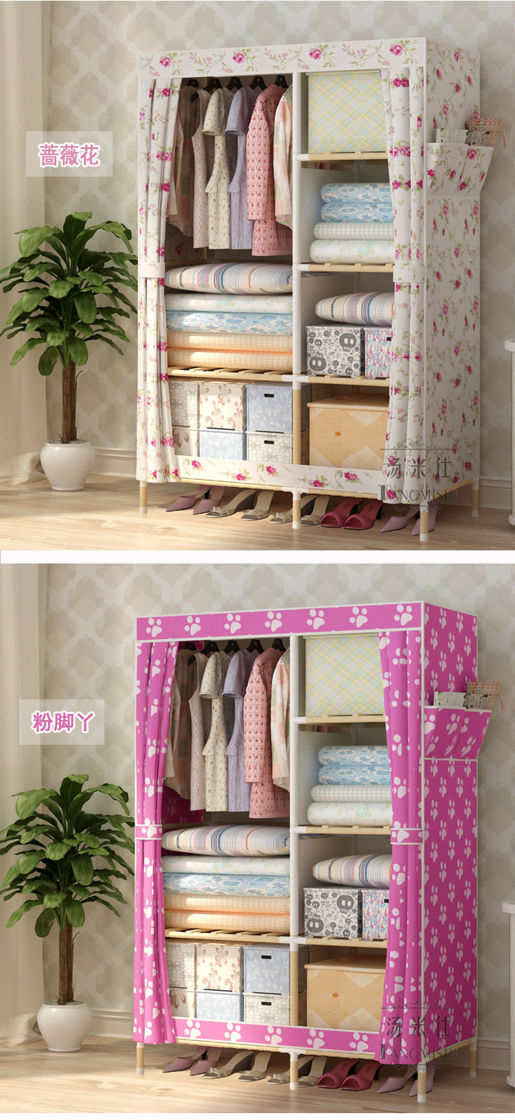 美汇特供:2017新款简易衣柜单人学生宿舍非钢管实木加固收纳牛津布衣柜