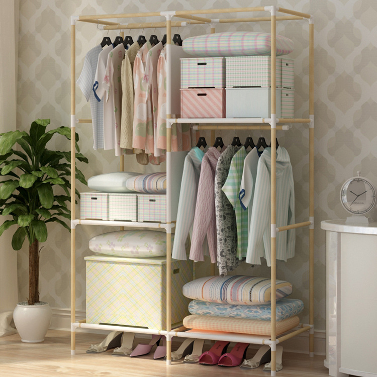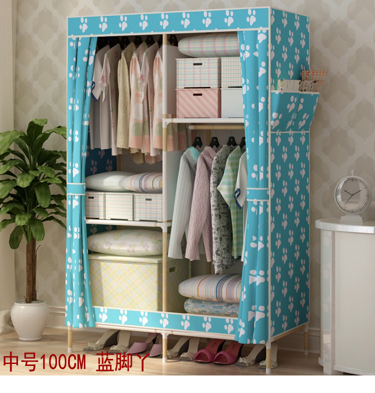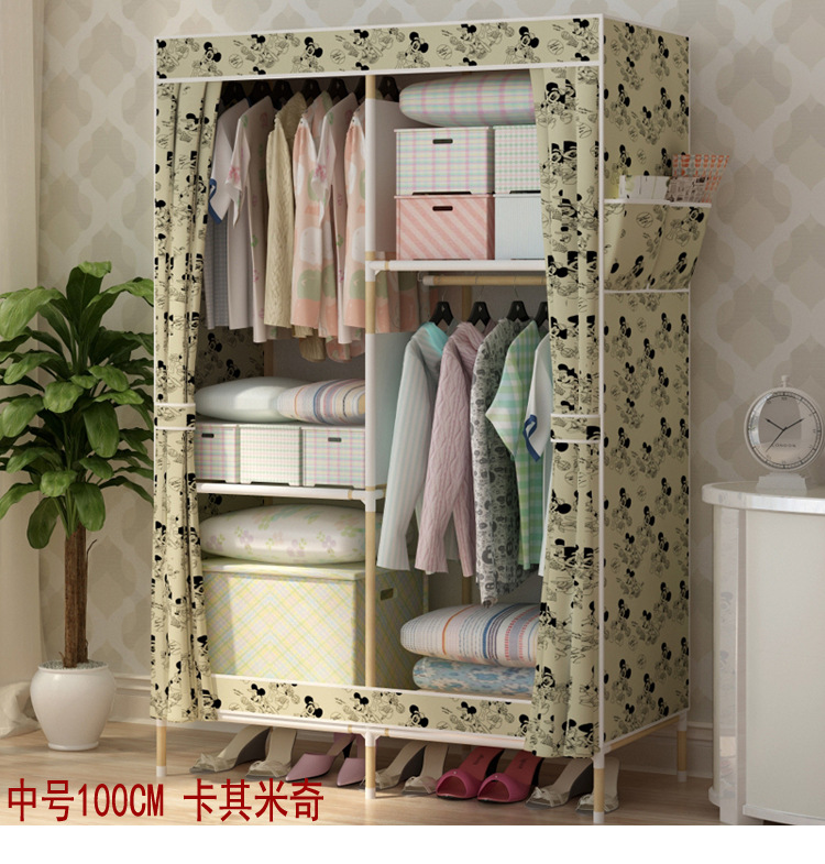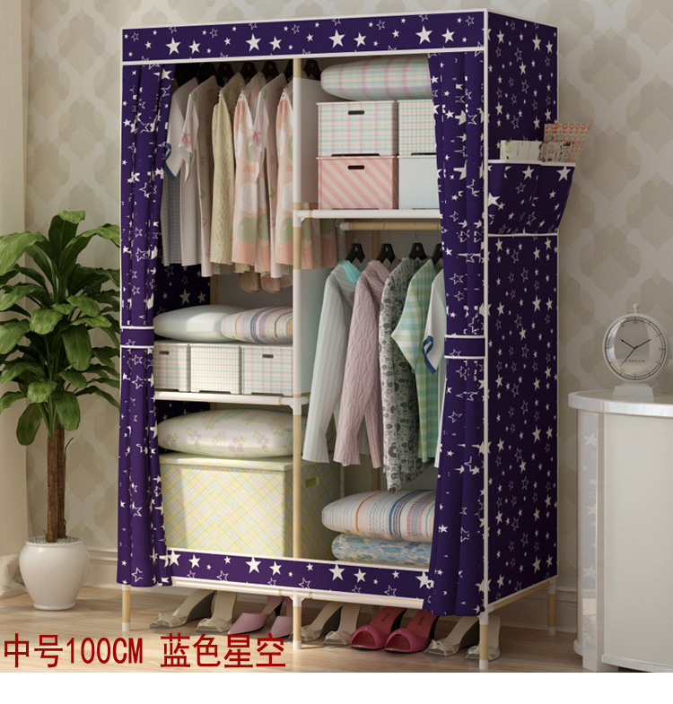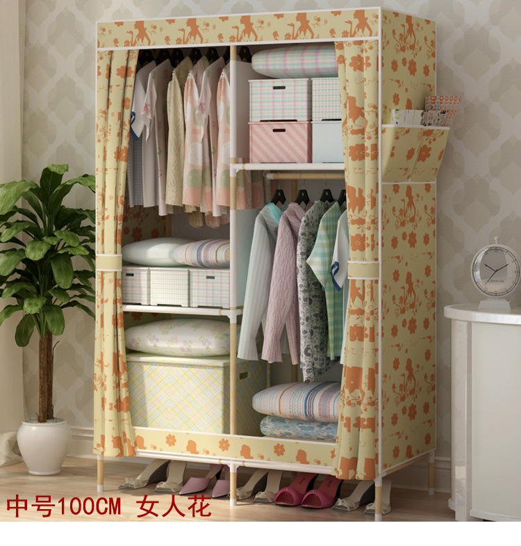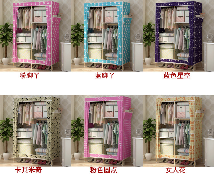 美汇特供:2017新款简易衣柜衣橱实木布衣柜组装加固双人木质组合牛津布折叠布衣柜