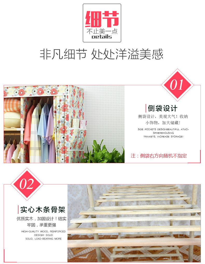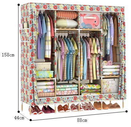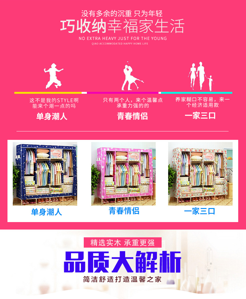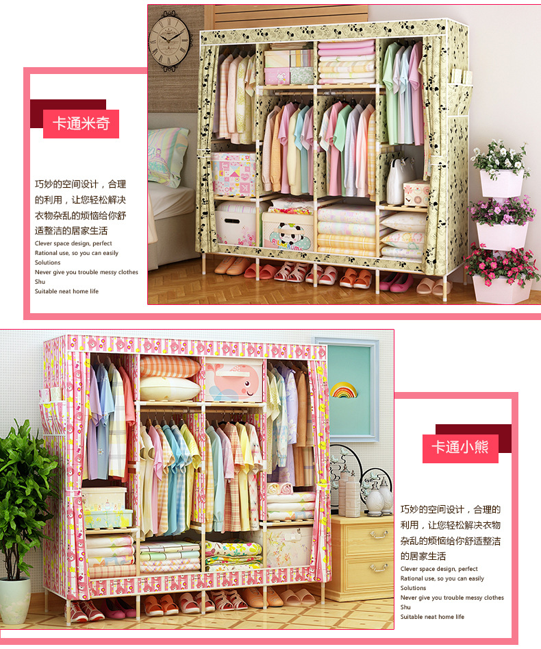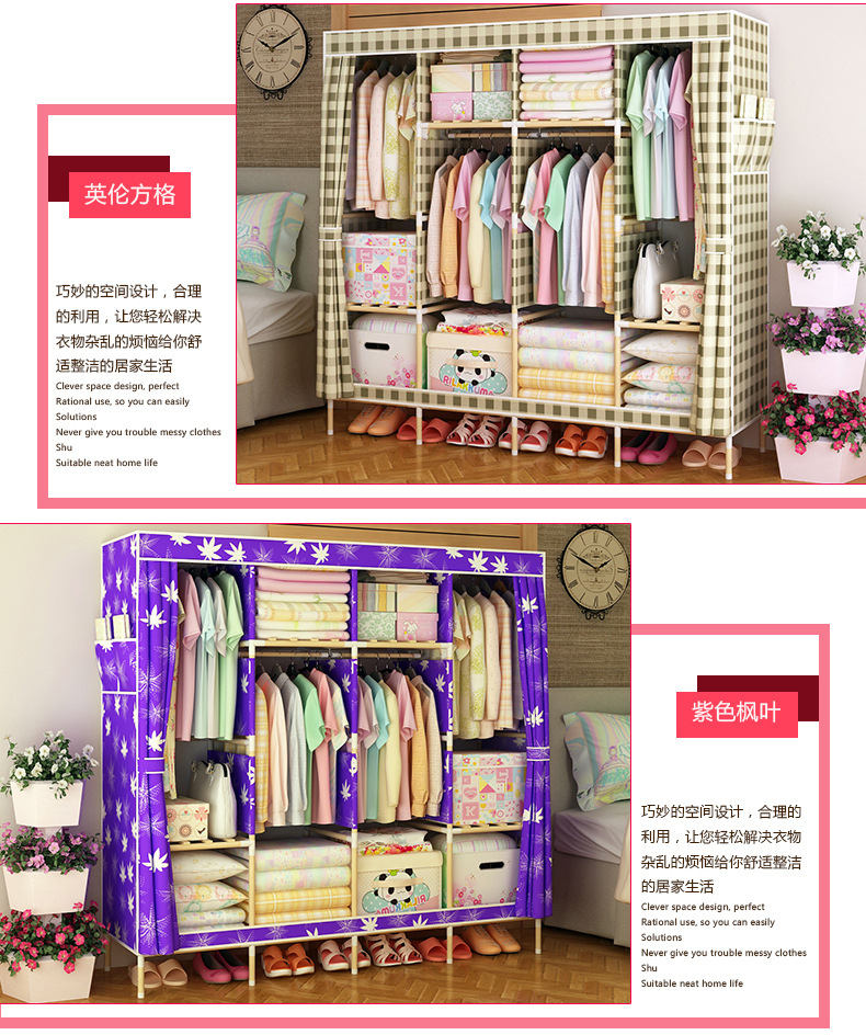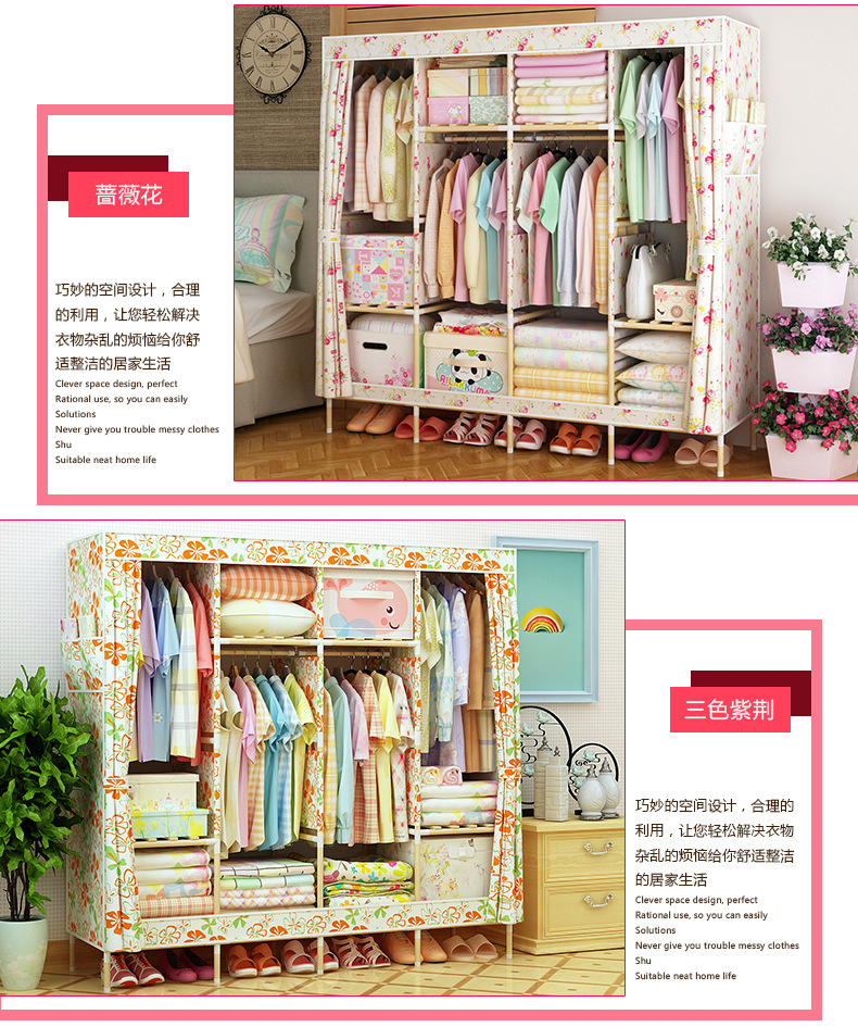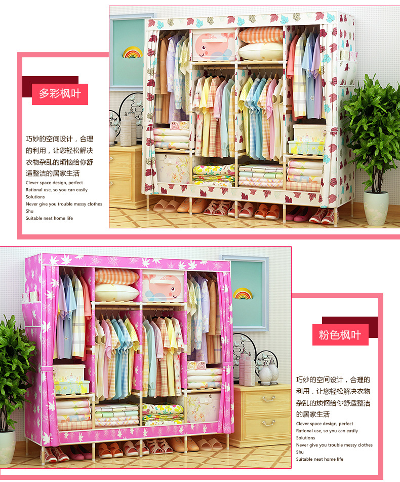 美汇特供:2017新款超大容量加粗实木简易衣柜牛津布衣橱防尘收纳布衣柜