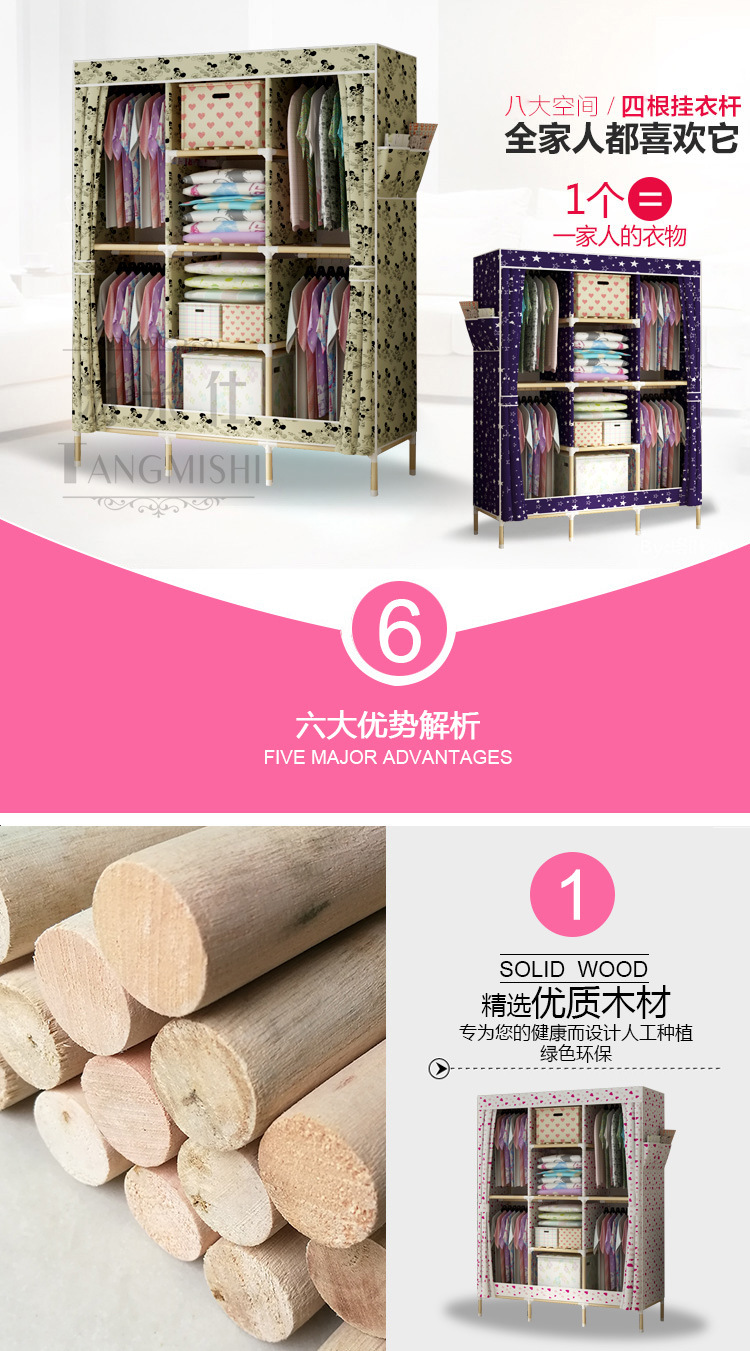 美汇特供:2017新款牛津布收纳柜折叠省空间组装加固布衣柜
