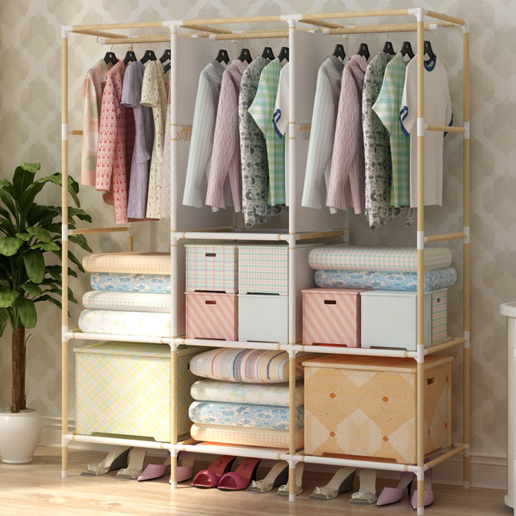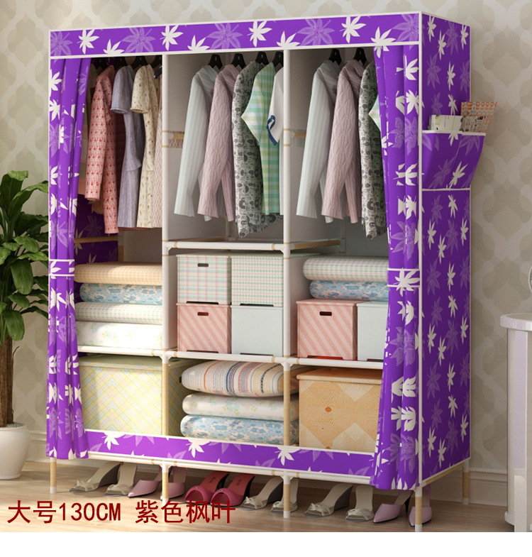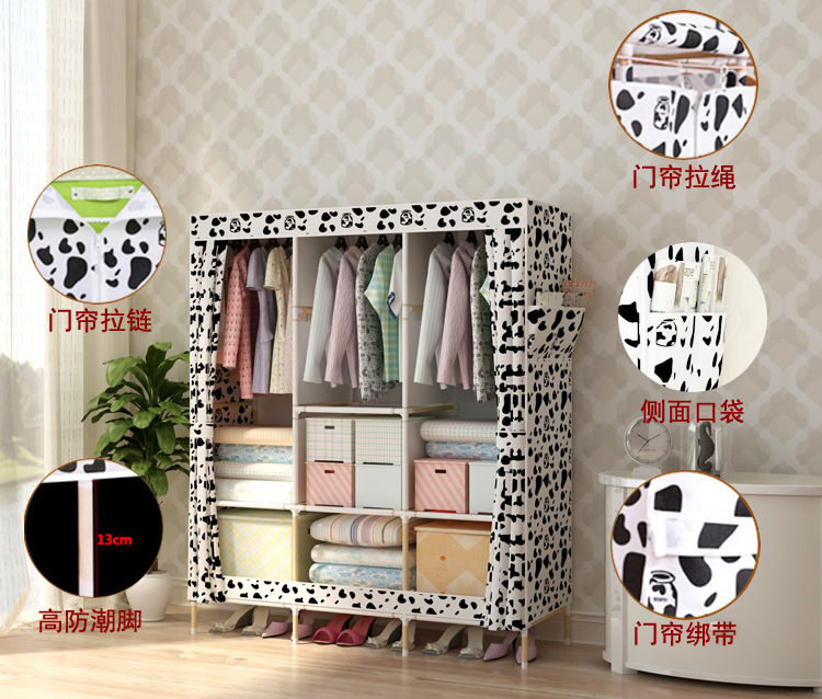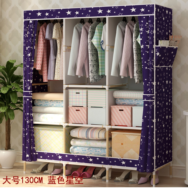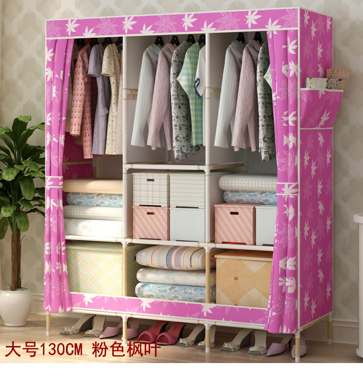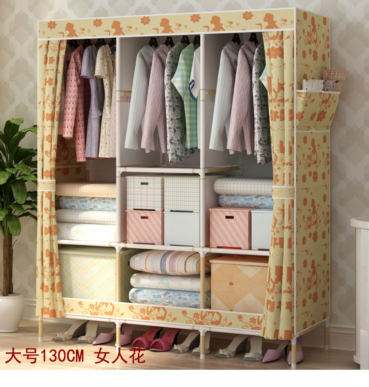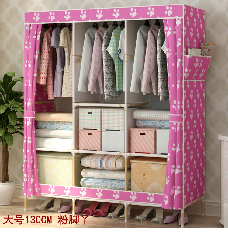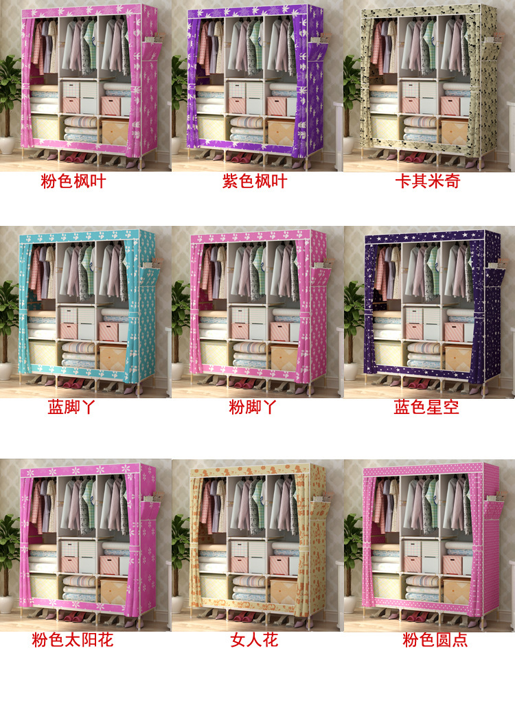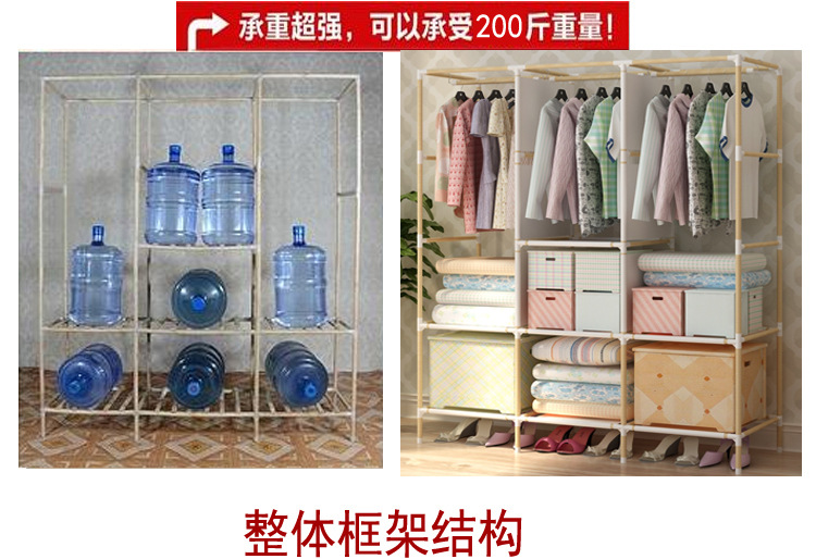 美汇特供:2017新款实木布衣柜组装加固布艺简易衣柜牛津布韩式折叠组合衣橱
