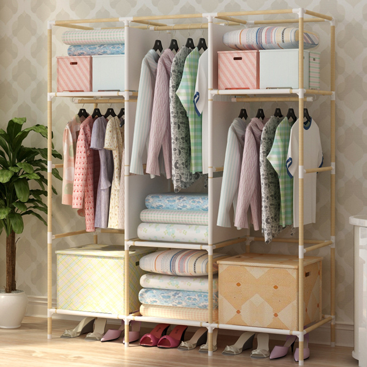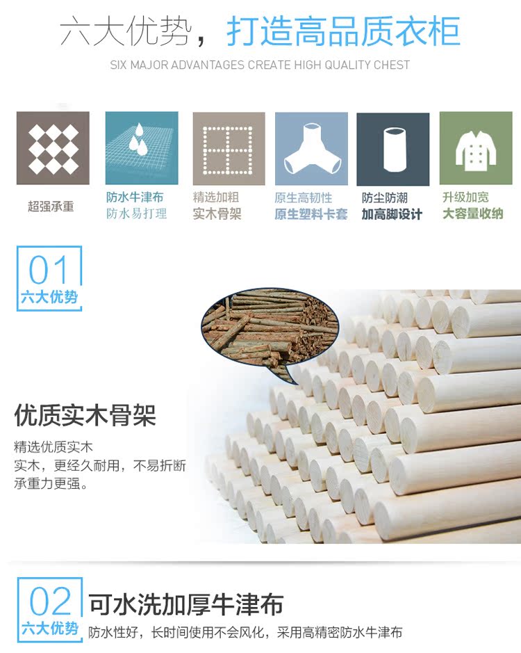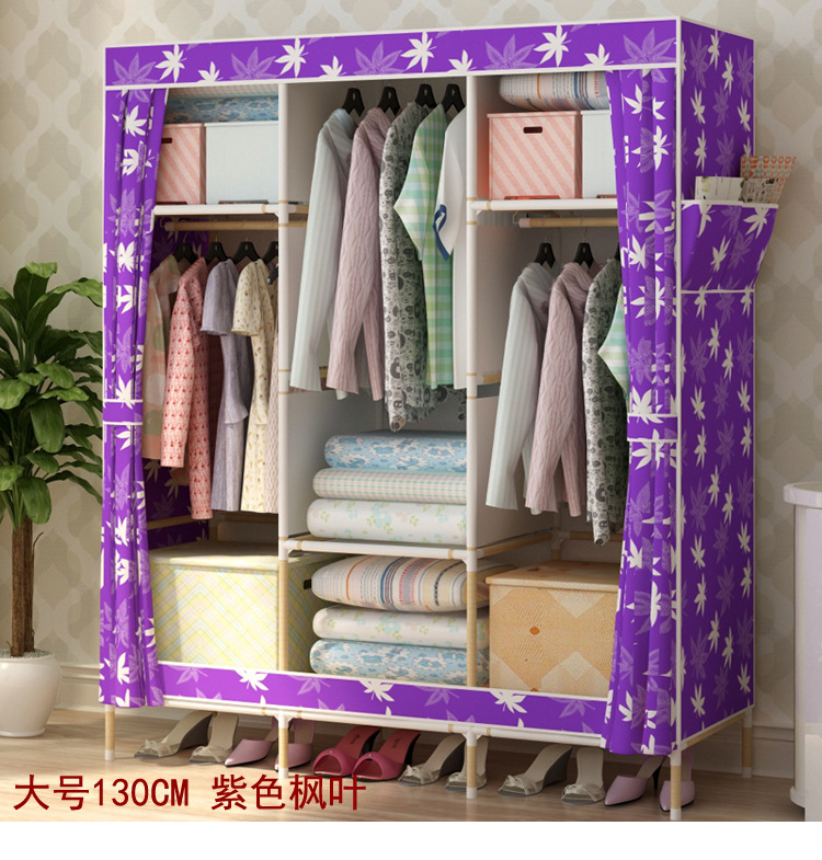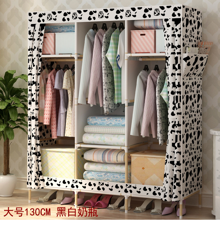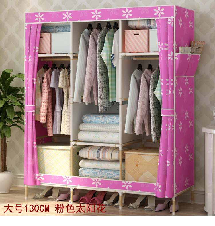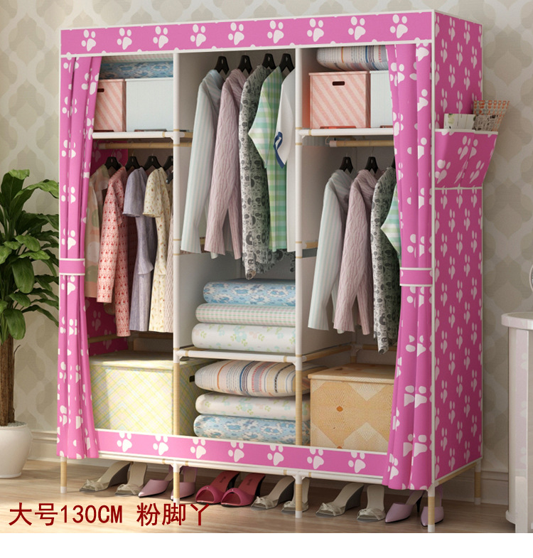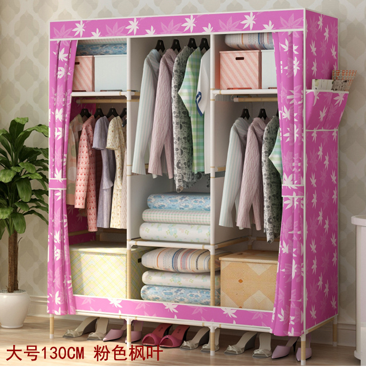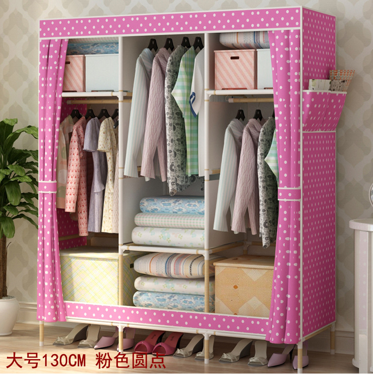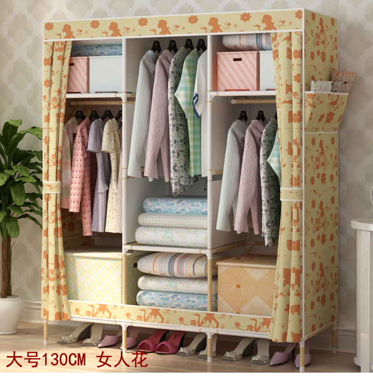 美汇特供:2017新款布艺简易衣柜衣橱实木大号组装加固双人木质组合牛津布折叠