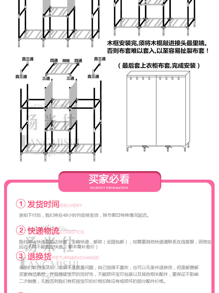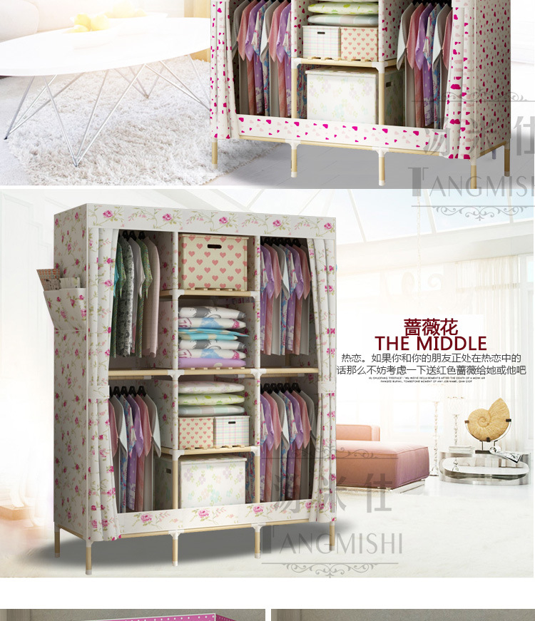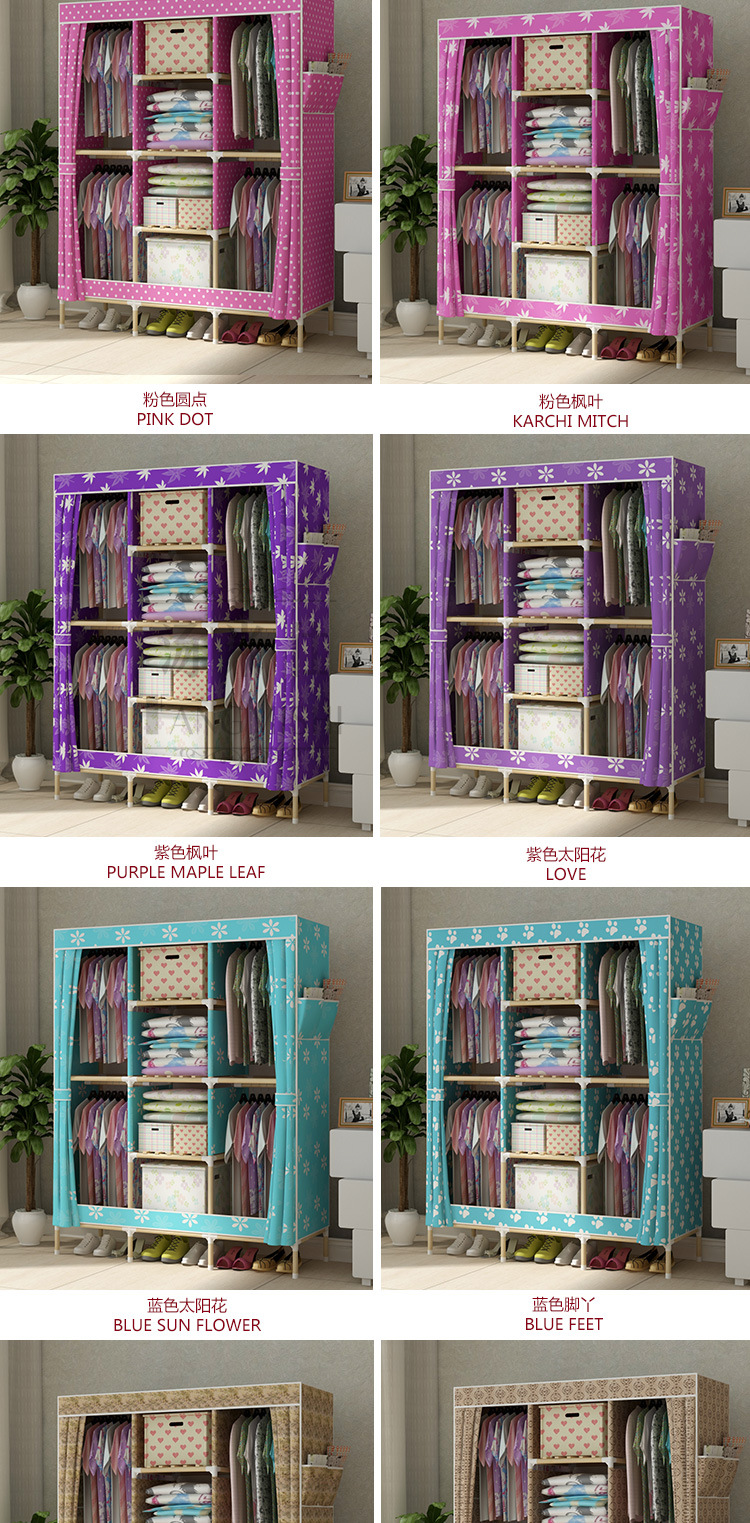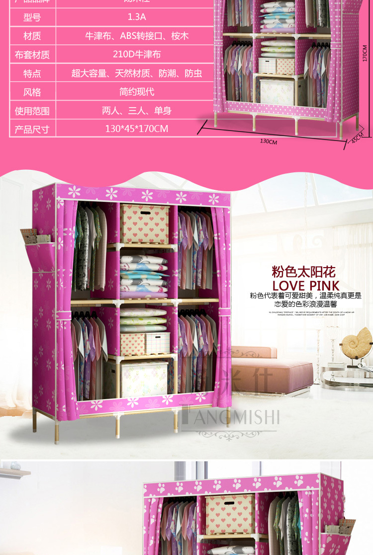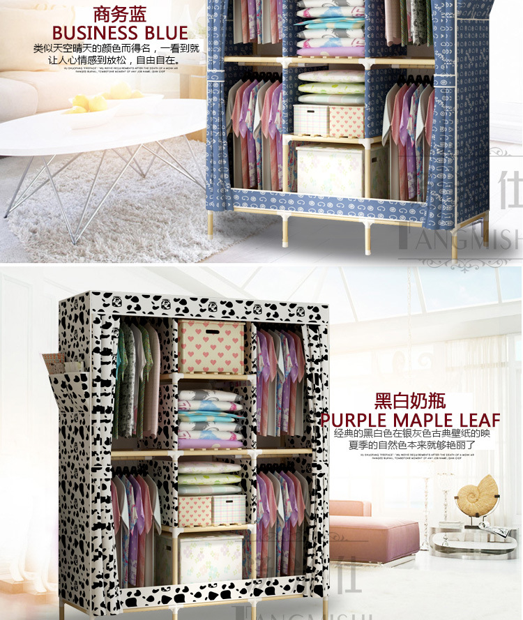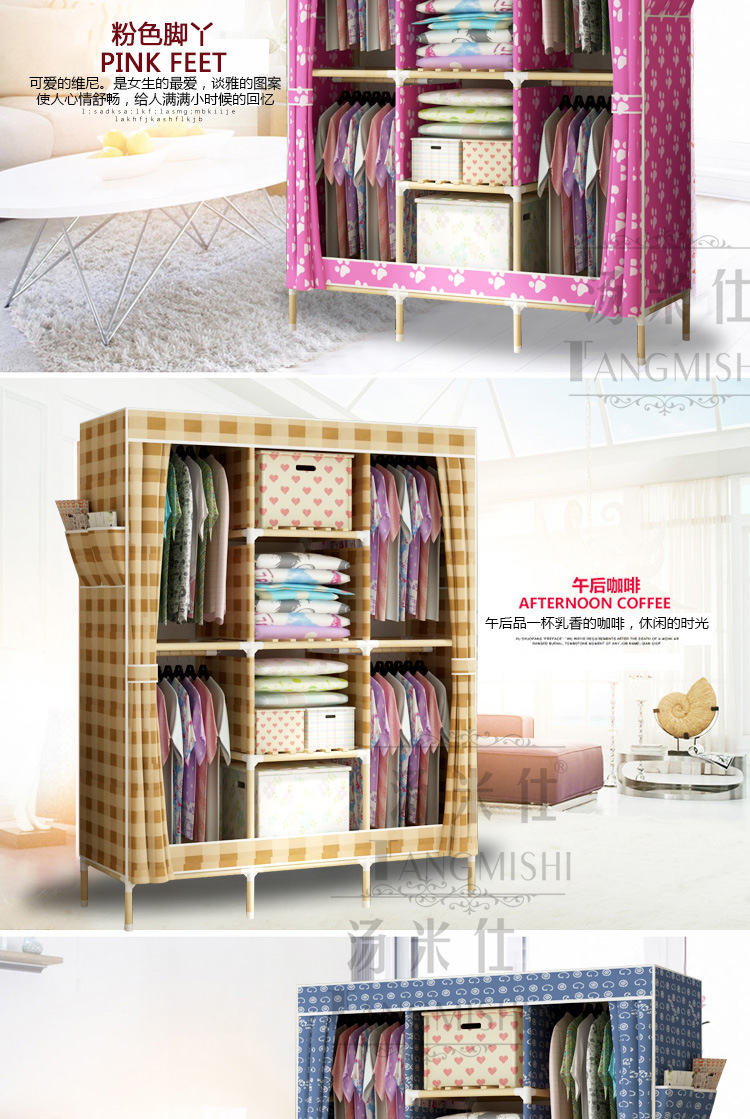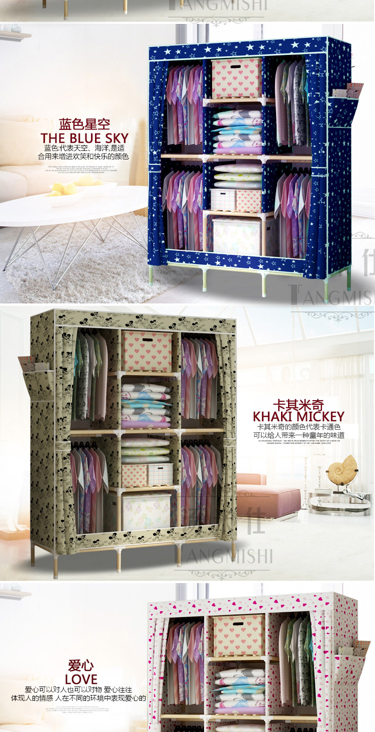 美汇特供:2017新款折叠大号牛津布衣柜组装加固双人简易加粗实木衣柜