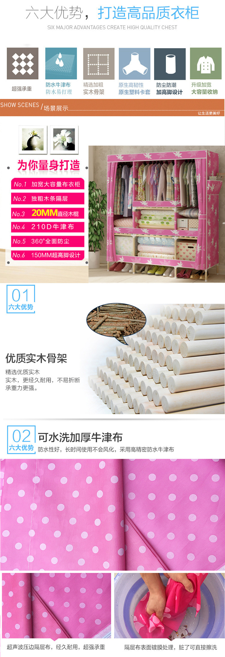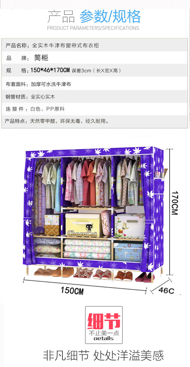美汇特供:2017新款牛津布收纳柜折叠省空间组装加固简易布衣柜