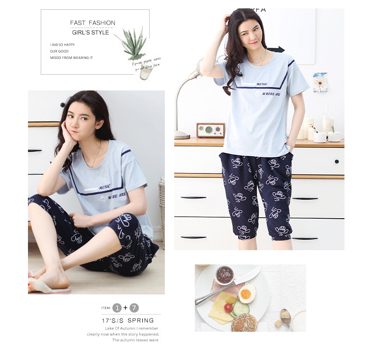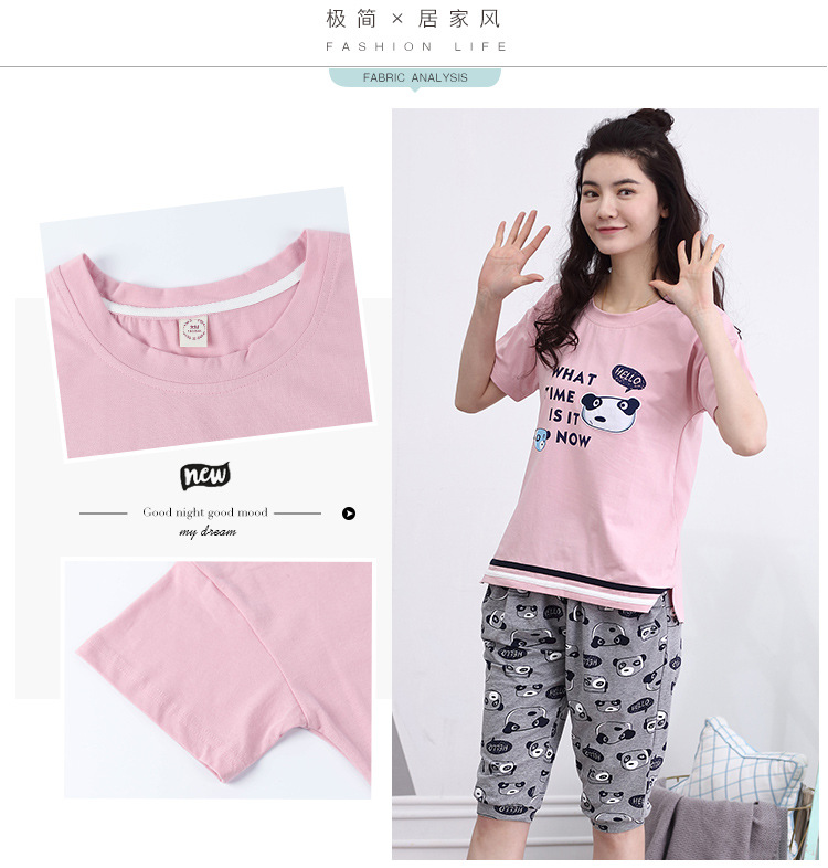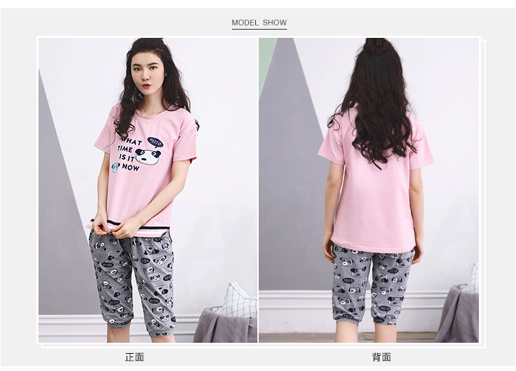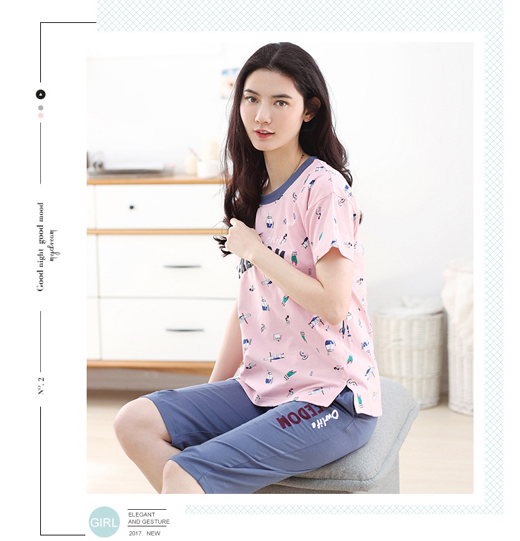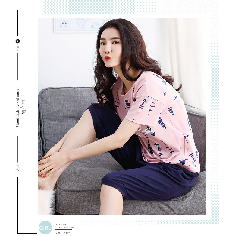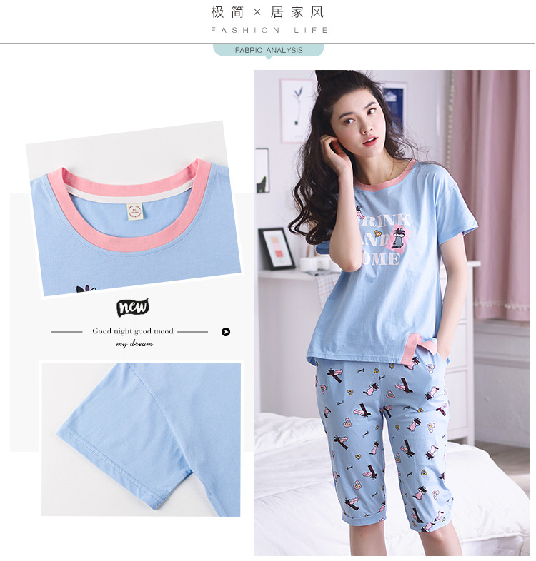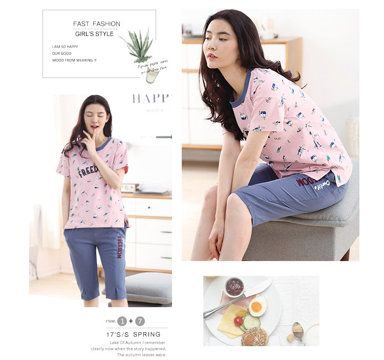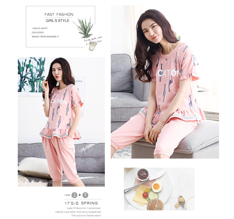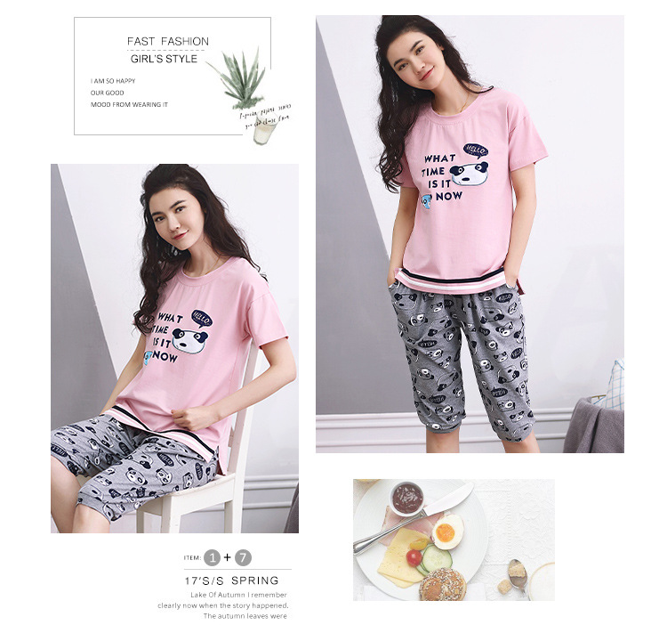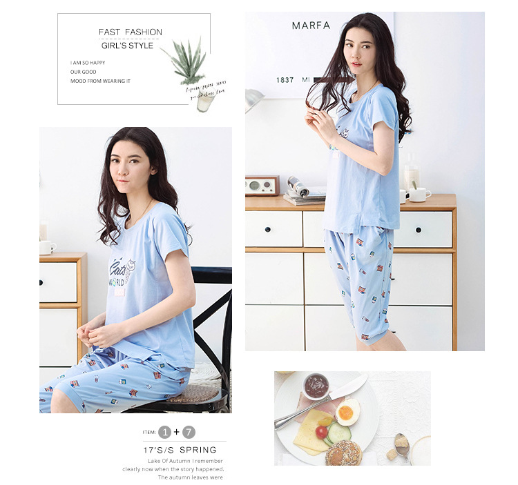 美汇特供:爱情妮2017夏季新款韩版时尚可爱卡通短袖七分裤睡衣套装