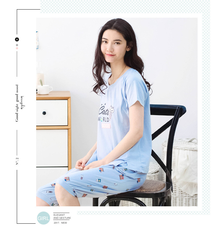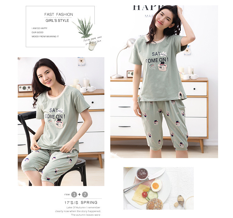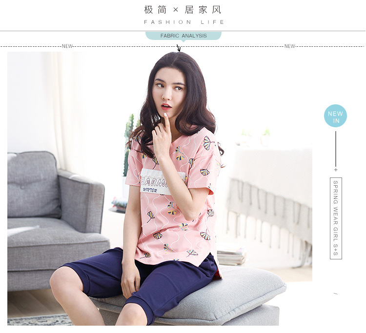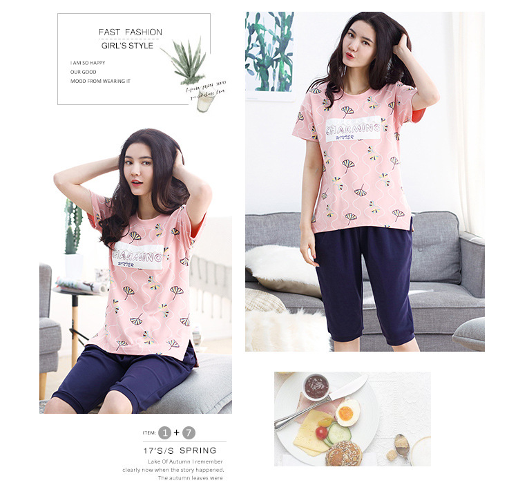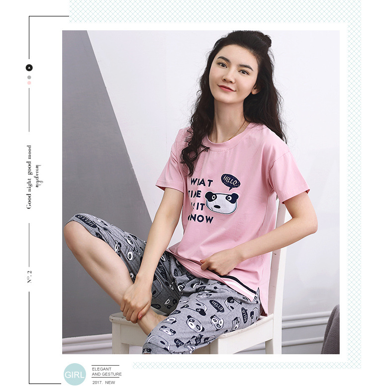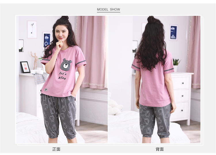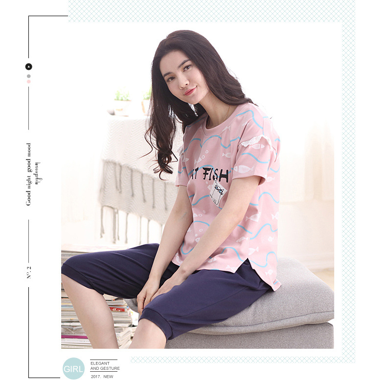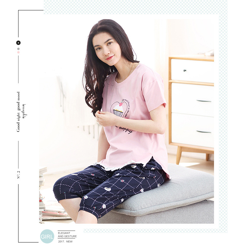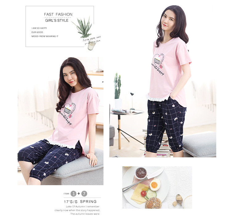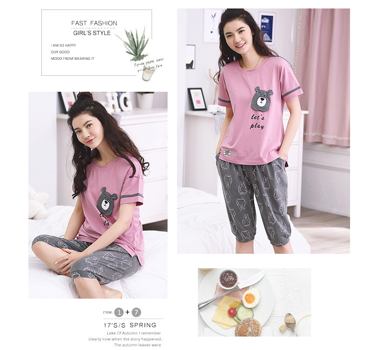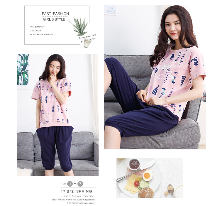 美汇特供:爱情妮2017夏季新款韩版时尚可爱卡通短袖七分裤睡衣套装