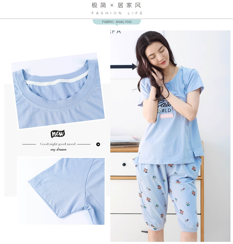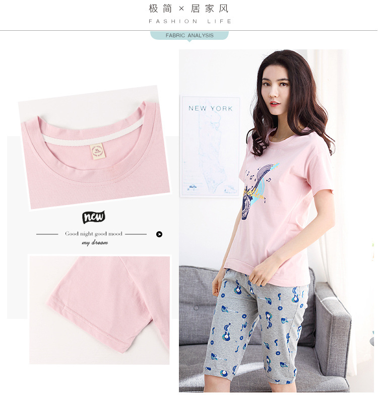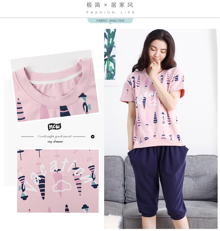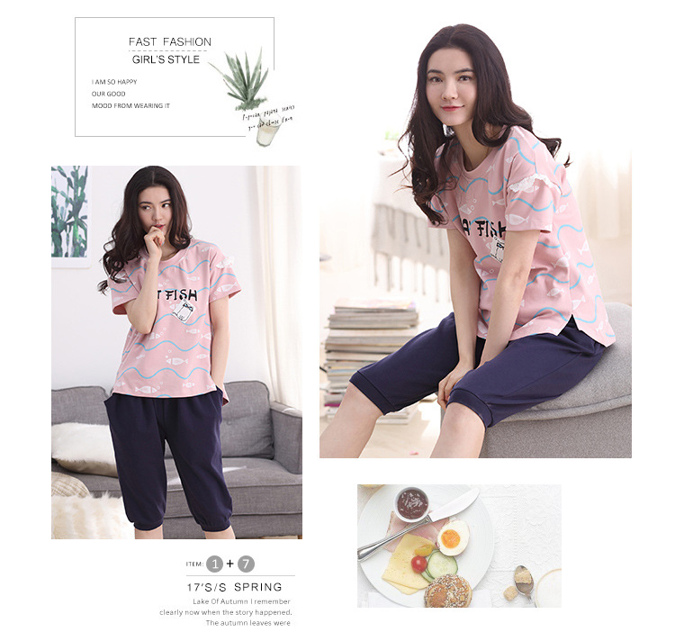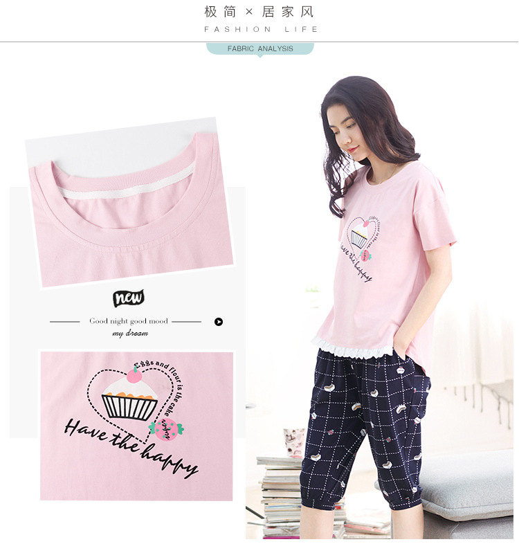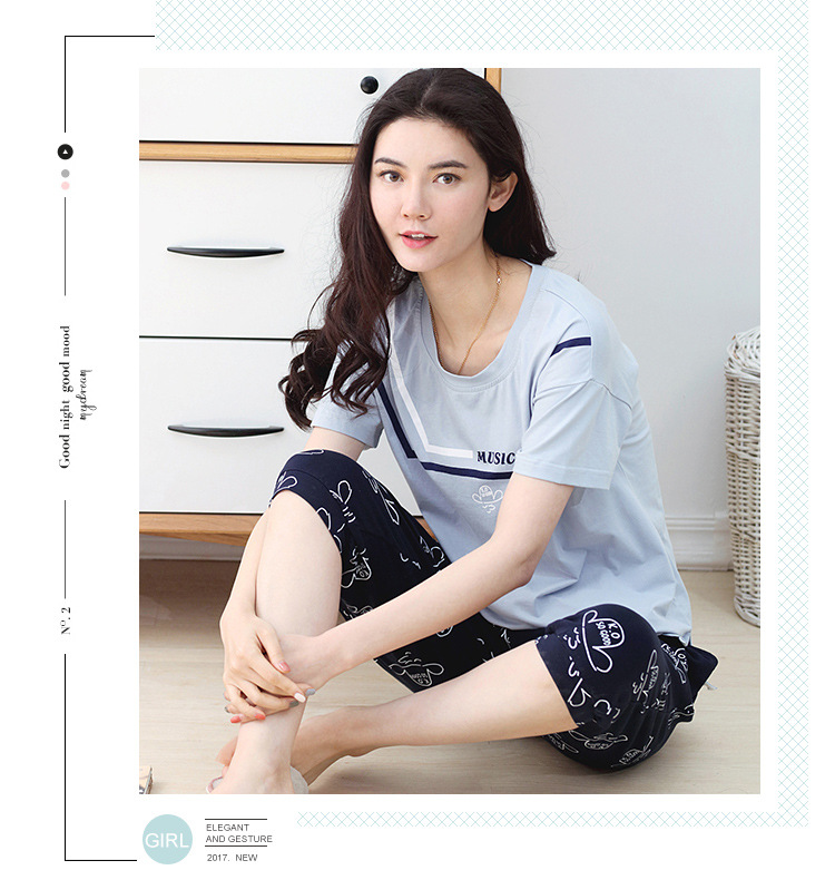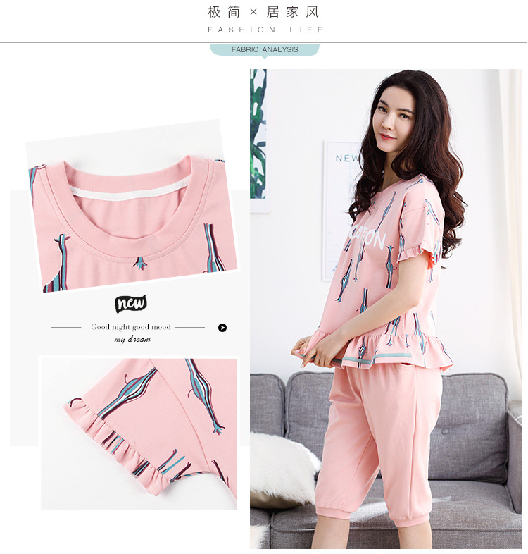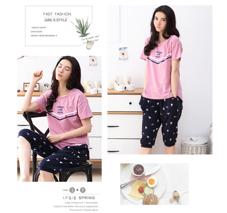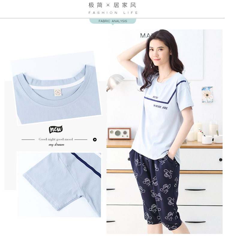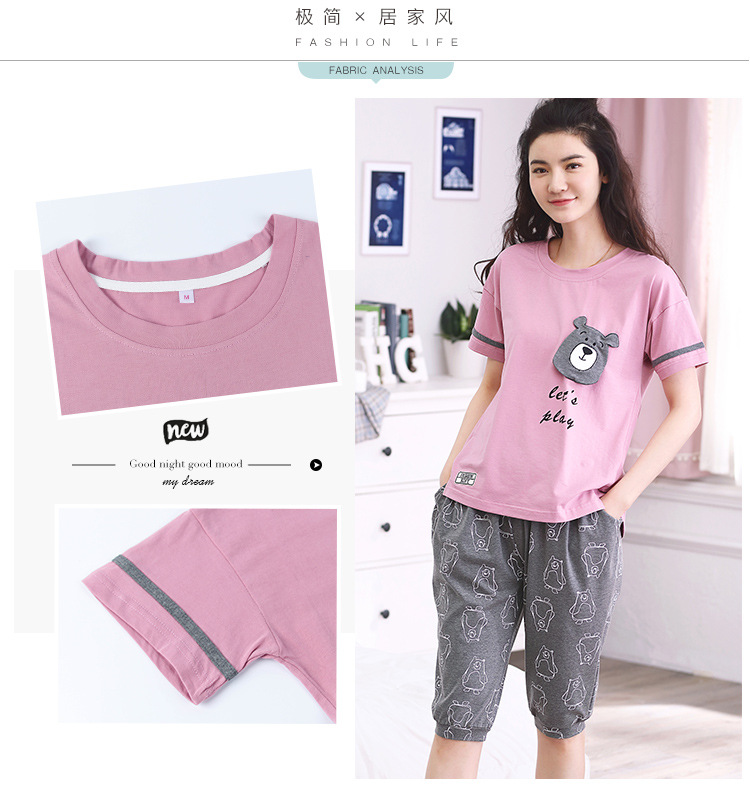 美汇特供:爱情妮2017夏季新款韩版时尚可爱卡通短袖七分裤睡衣套装