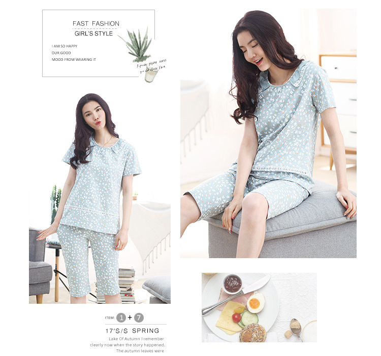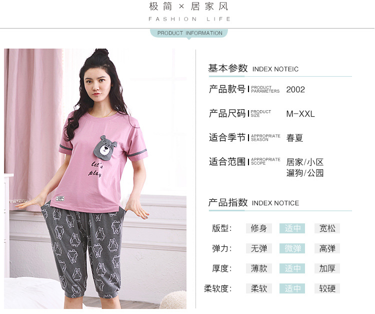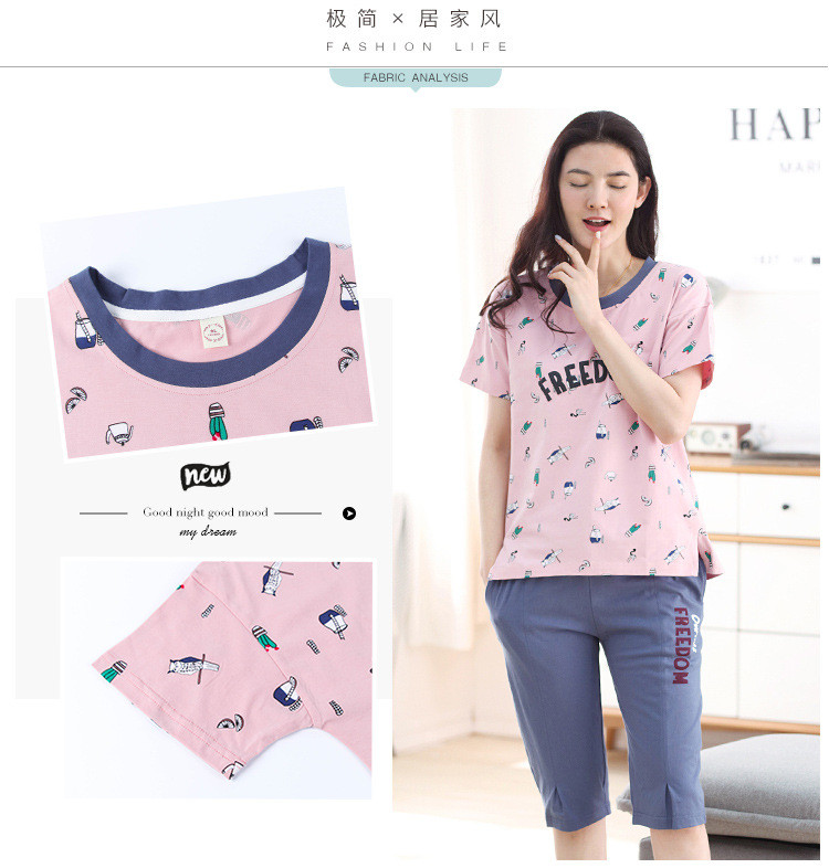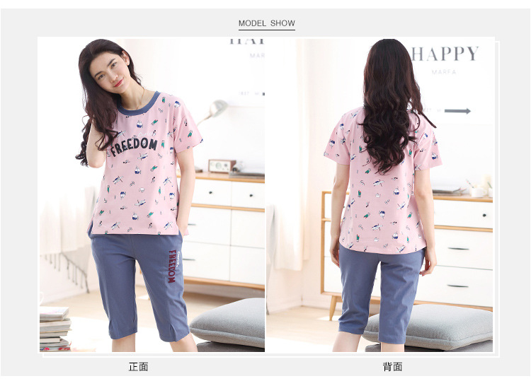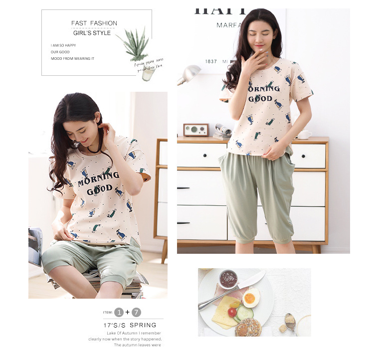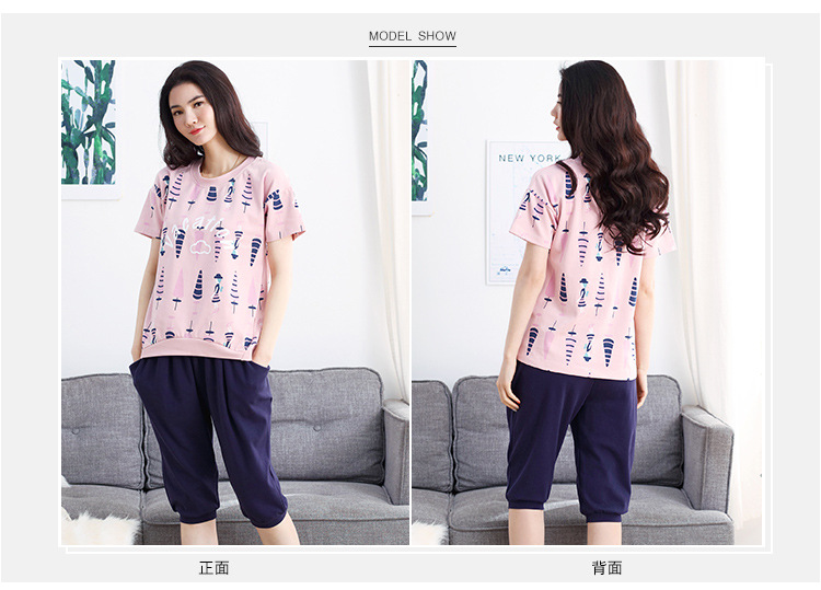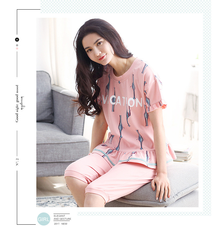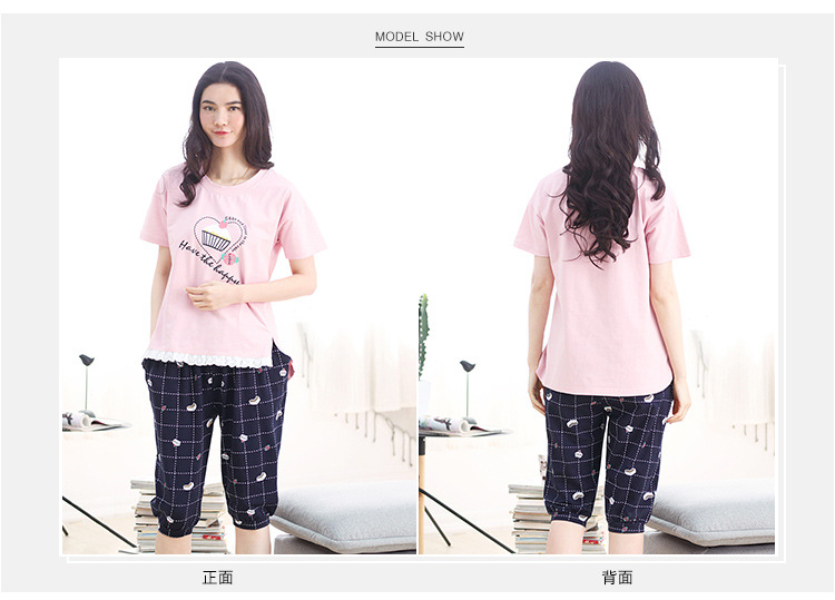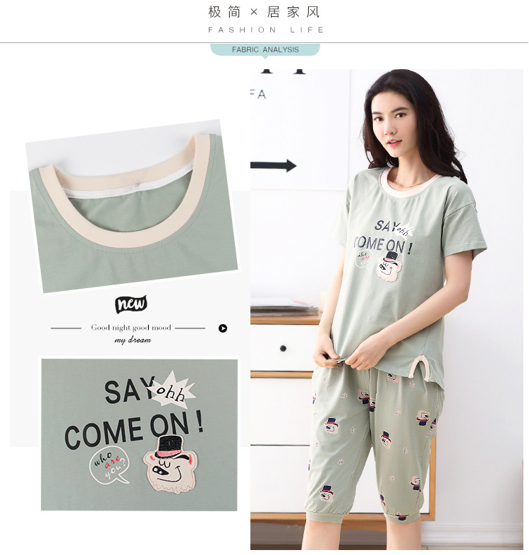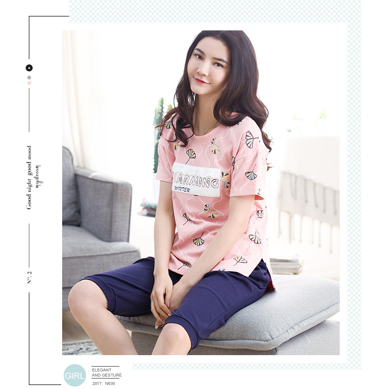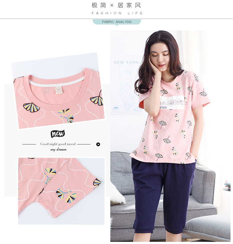 美汇特供:爱情妮2017夏季新款韩版时尚可爱卡通短袖七分裤睡衣套装