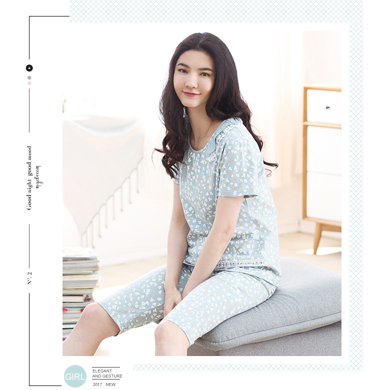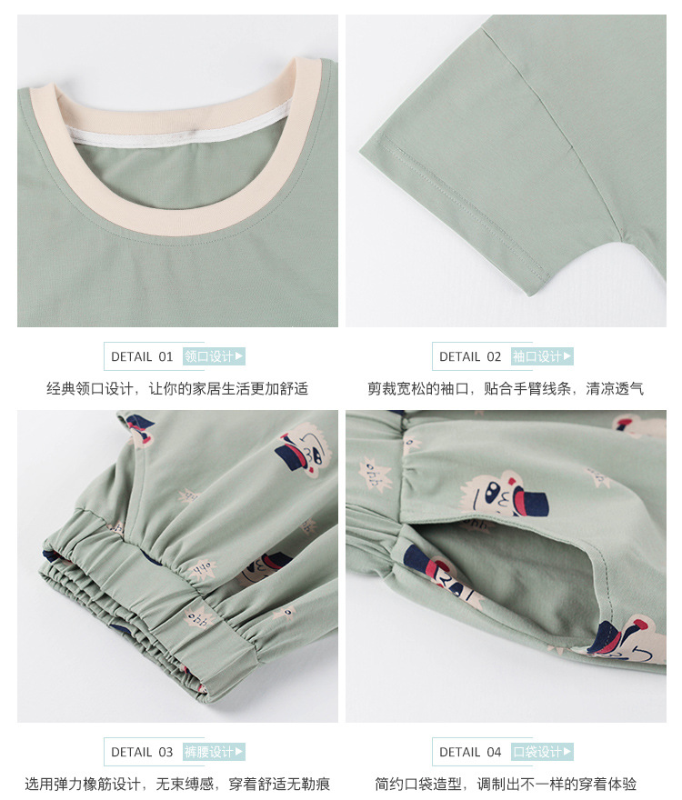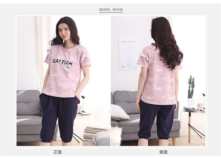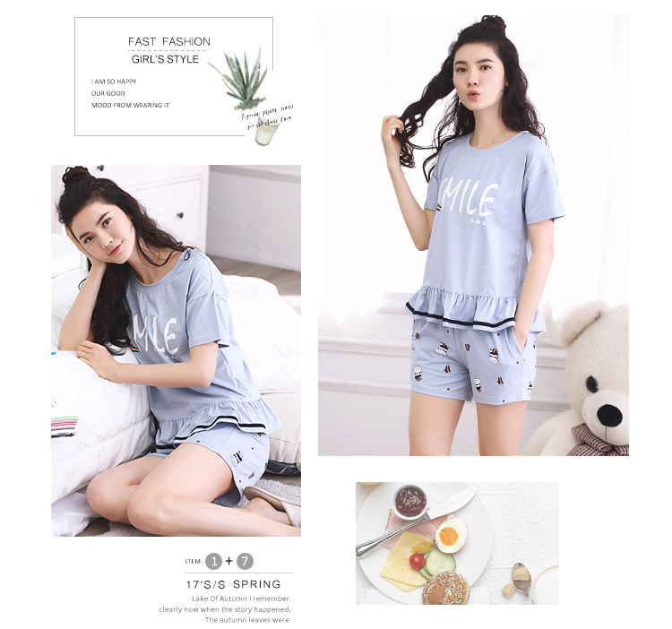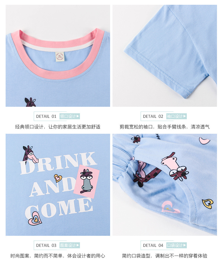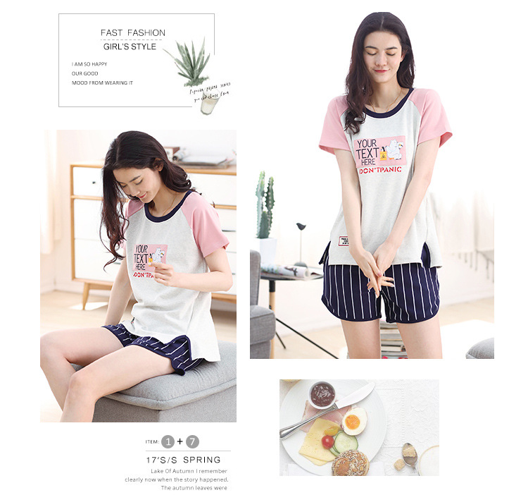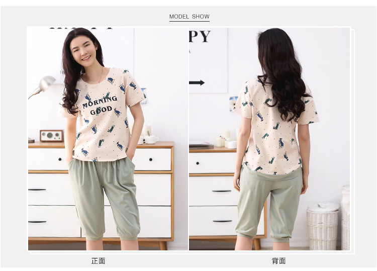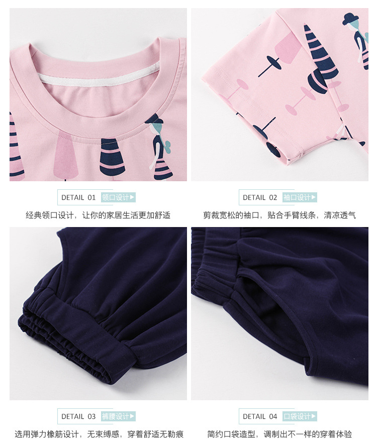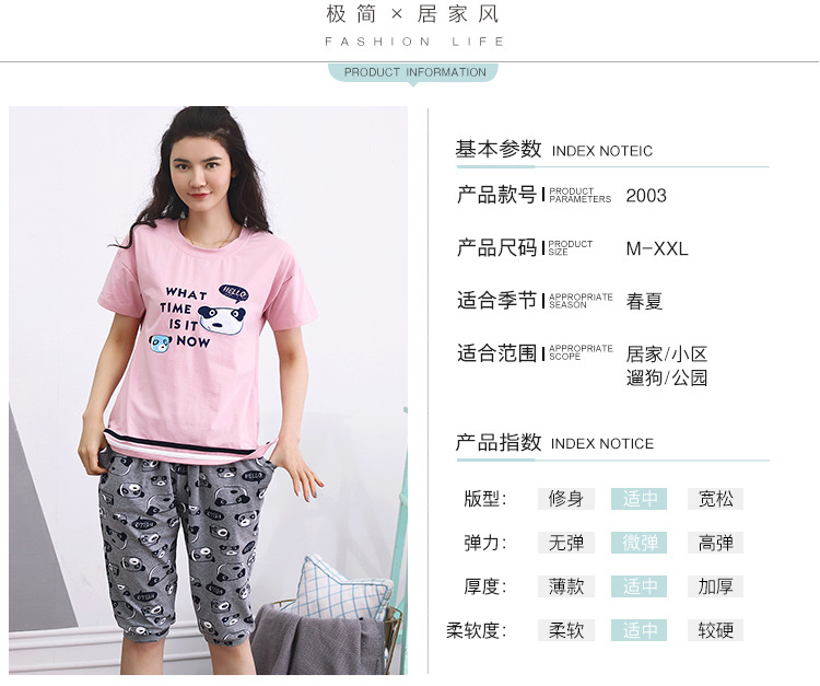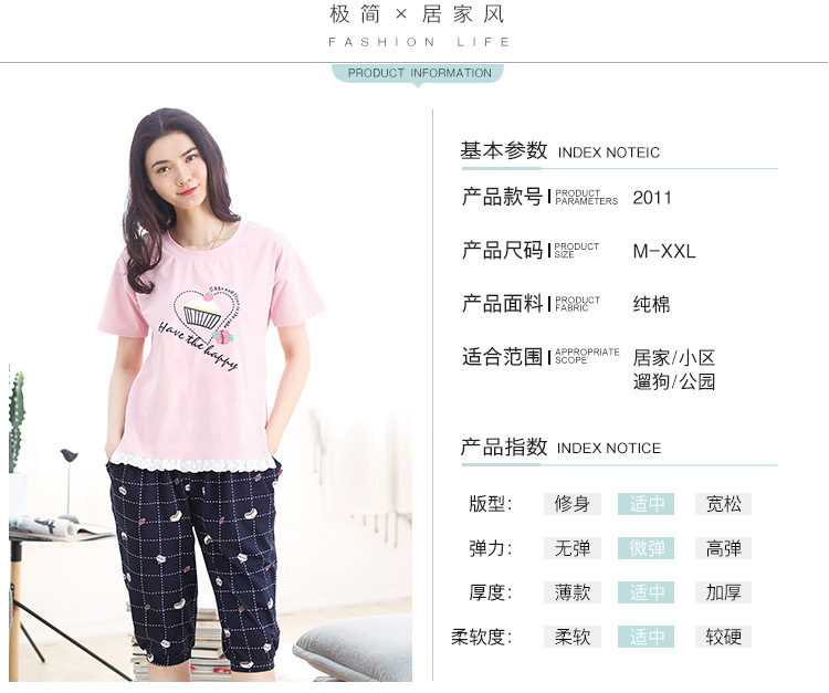 美汇特供:爱情妮2017夏季新款韩版时尚可爱卡通短袖七分裤睡衣套装