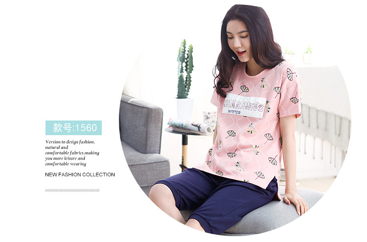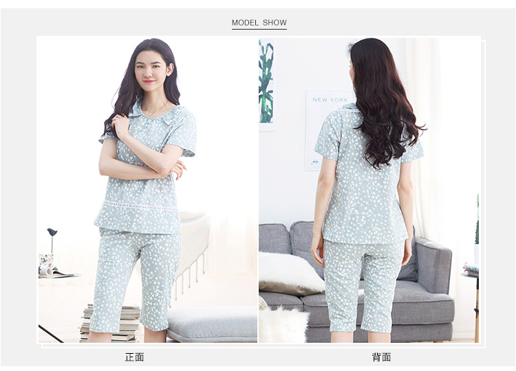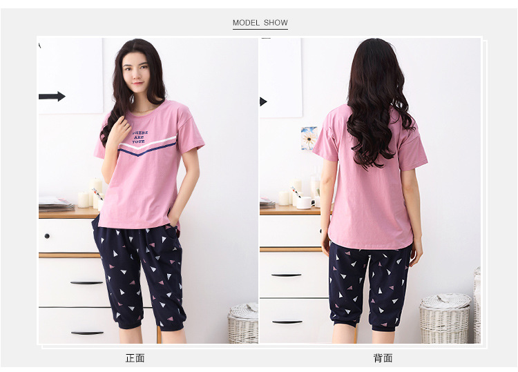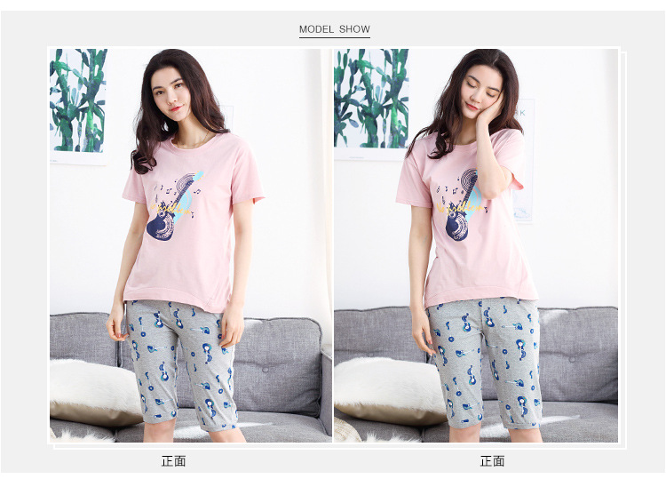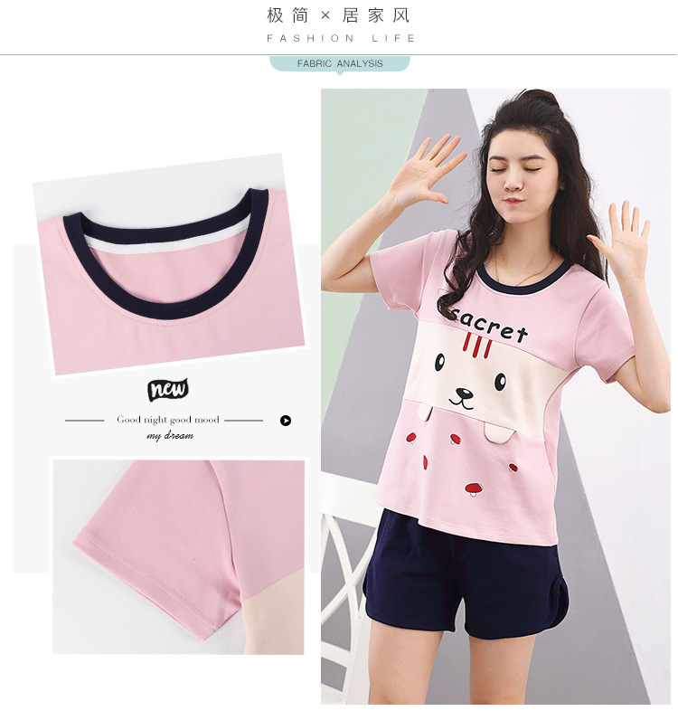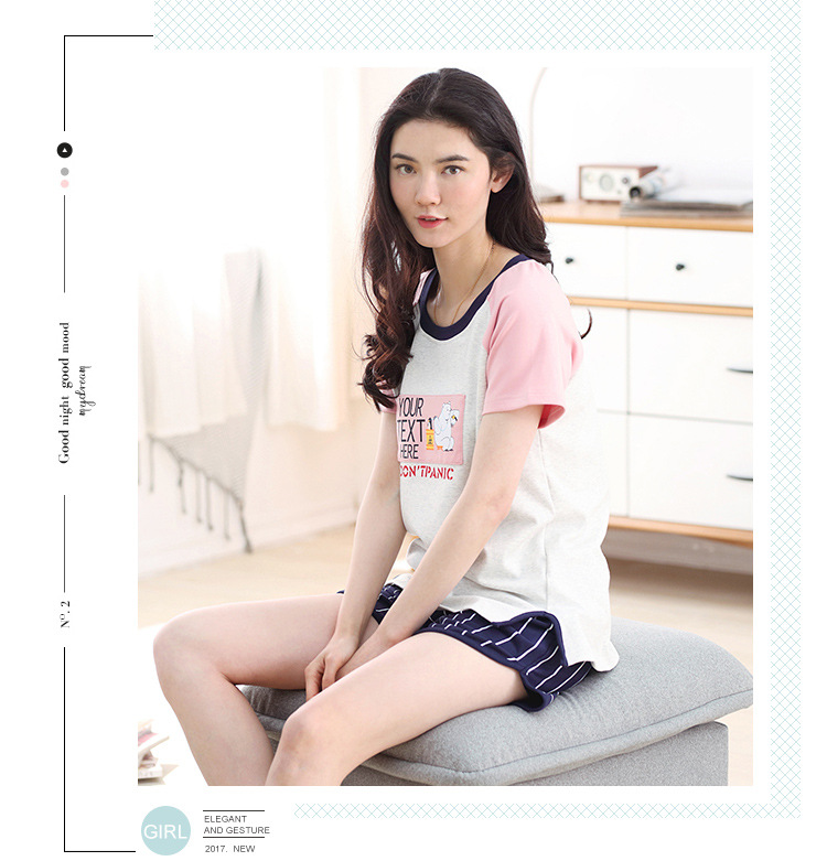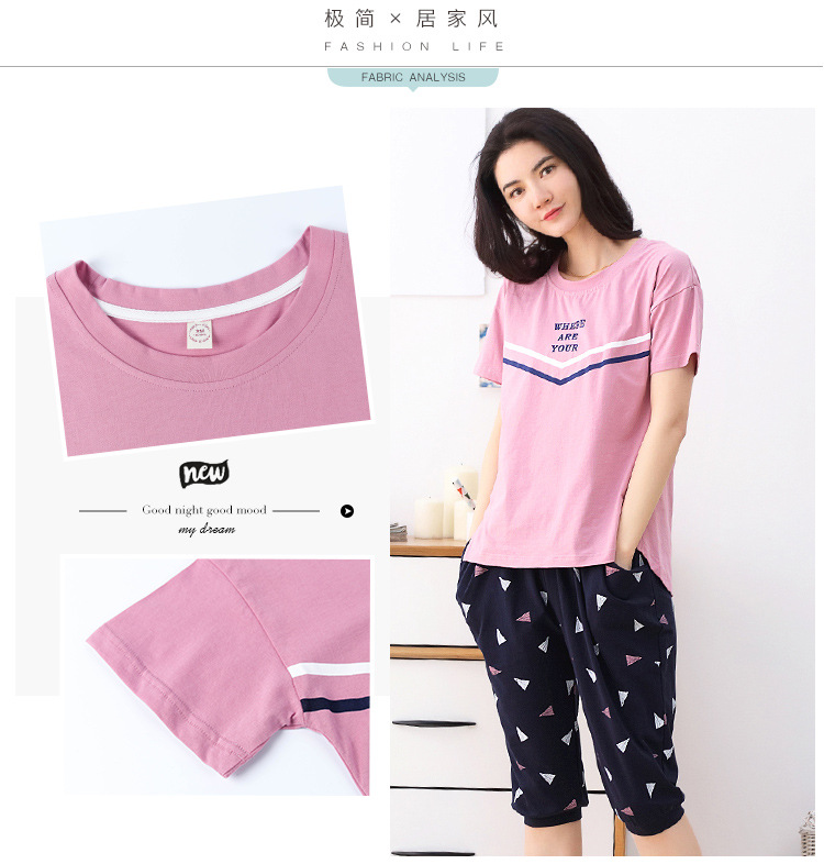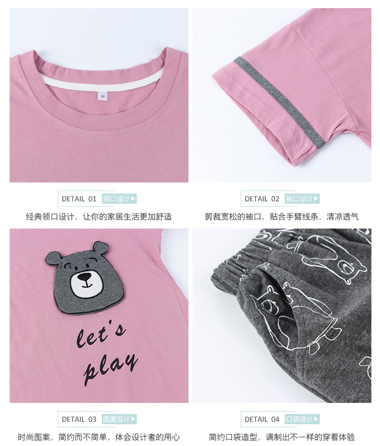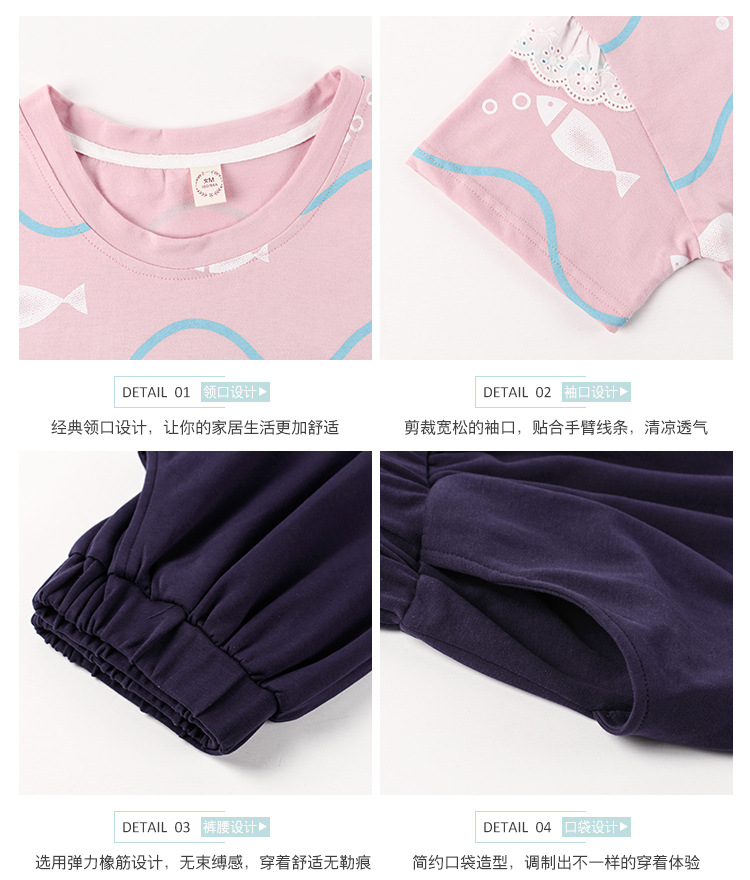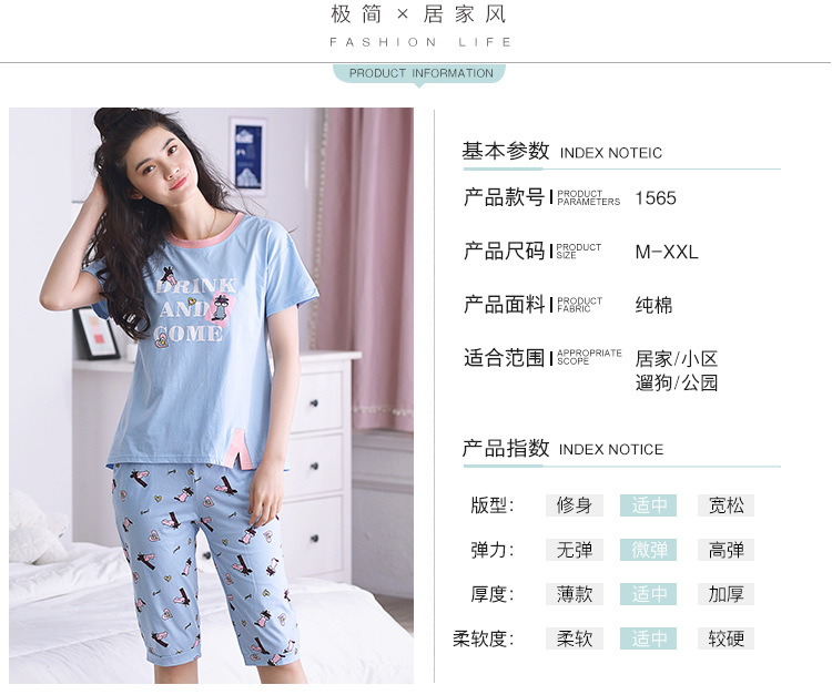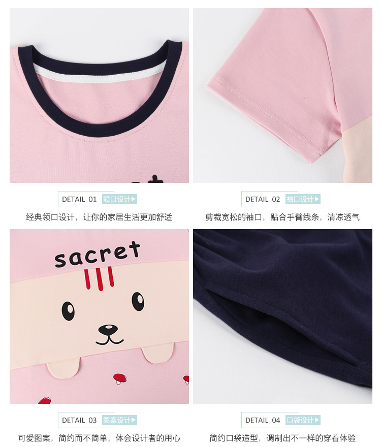 美汇特供:爱情妮2017夏季新款韩版时尚可爱卡通短袖七分裤睡衣套装