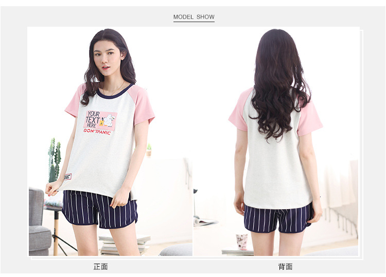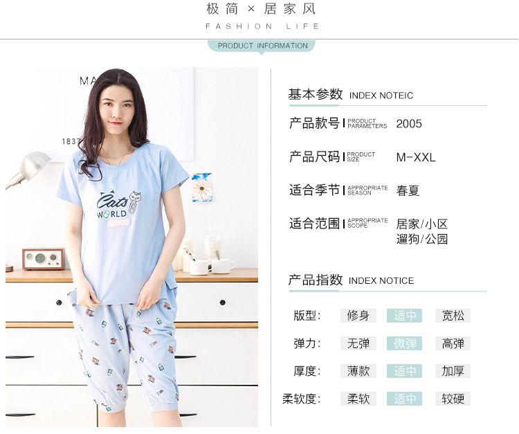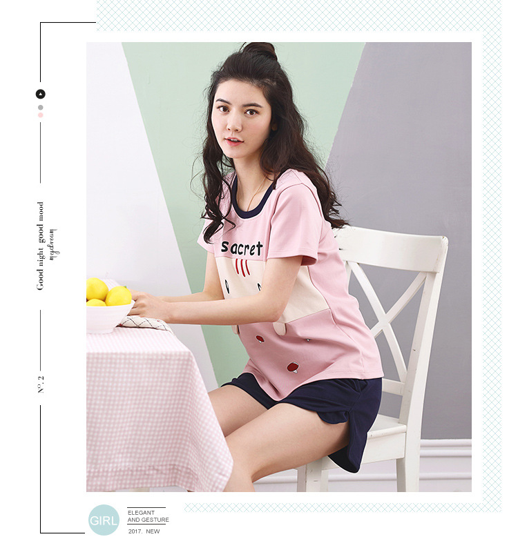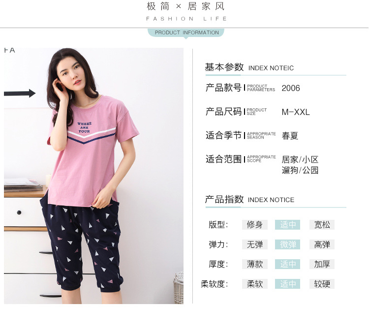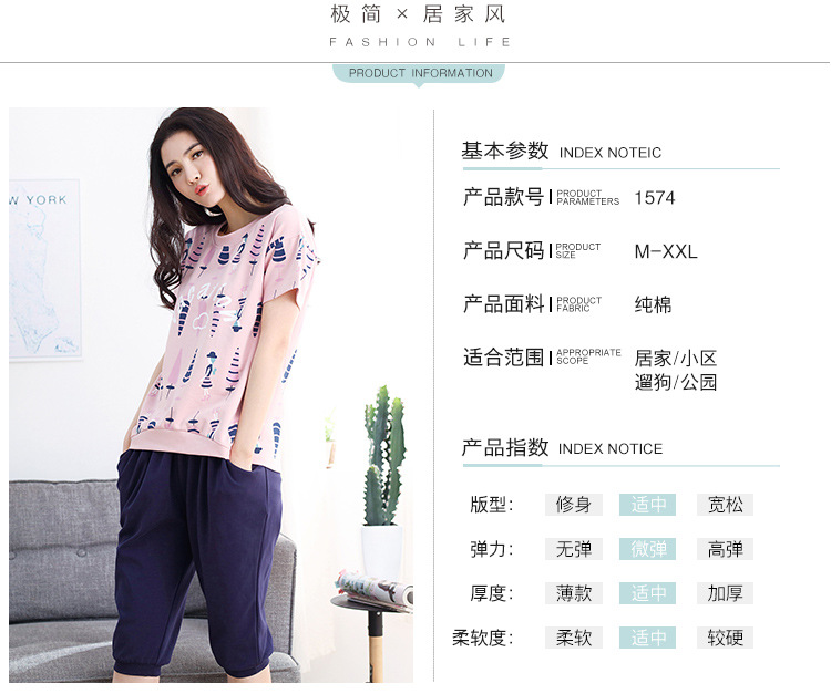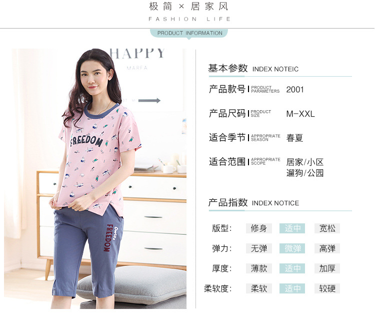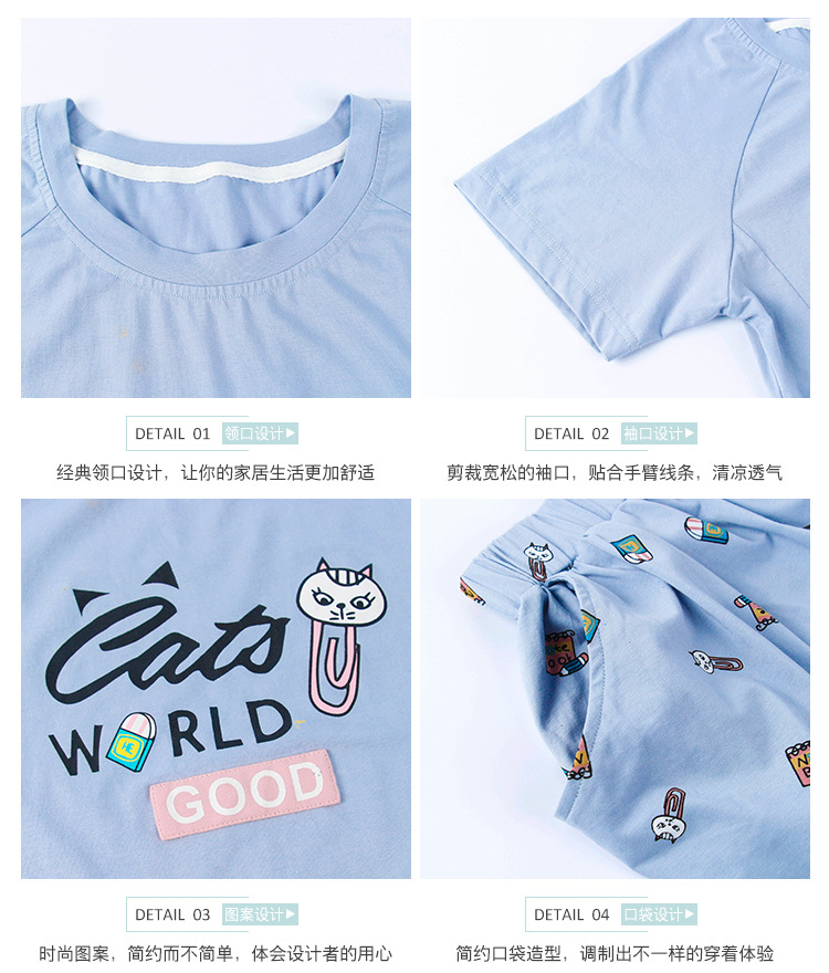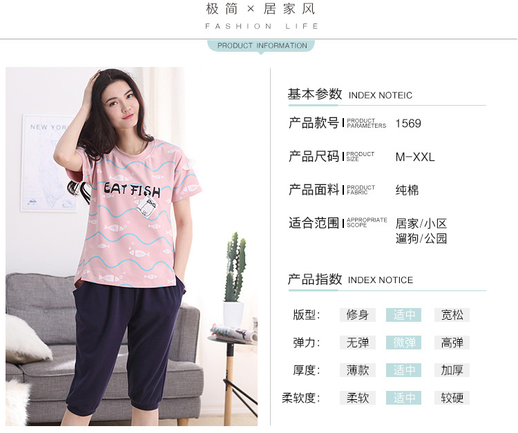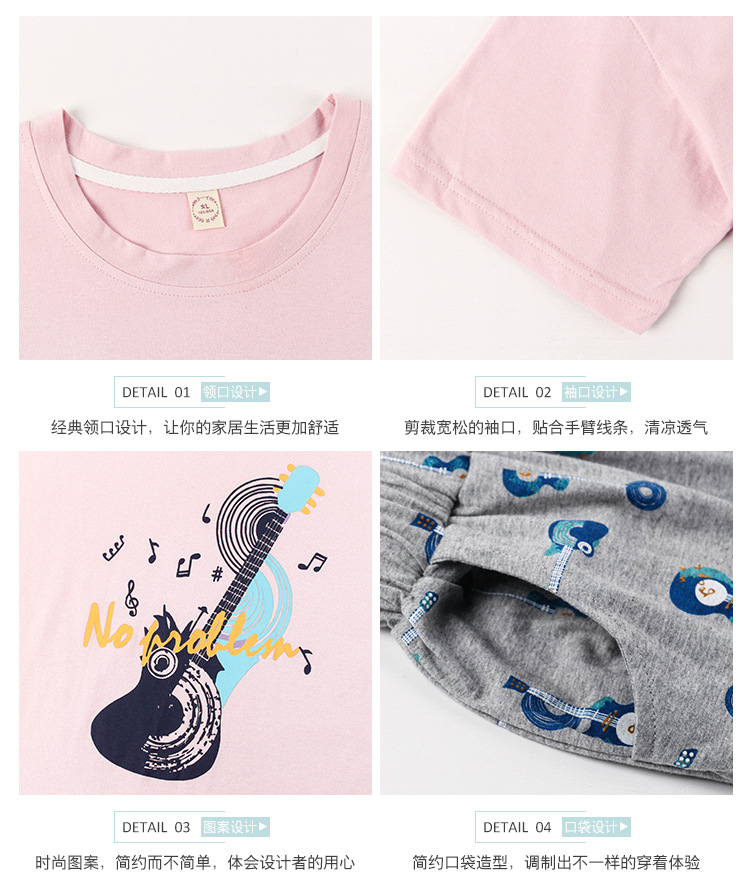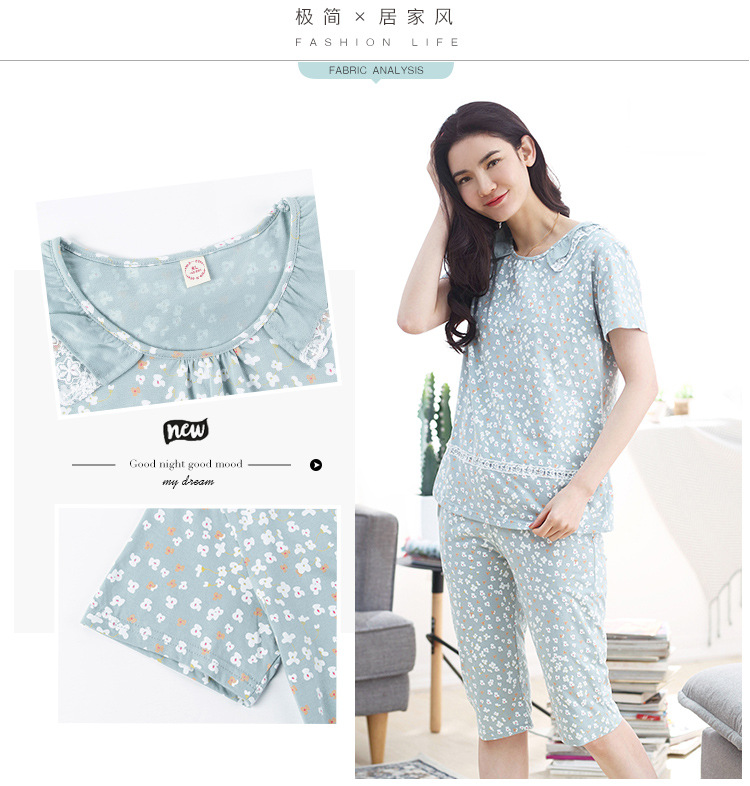 美汇特供:爱情妮2017夏季新款韩版时尚可爱卡通短袖七分裤睡衣套装