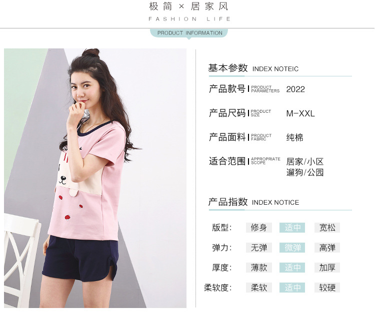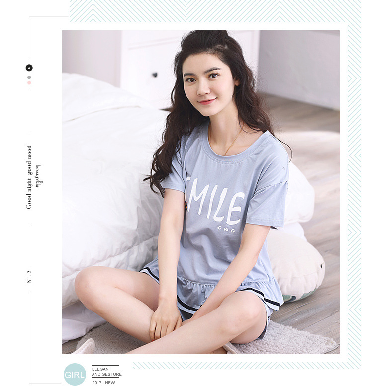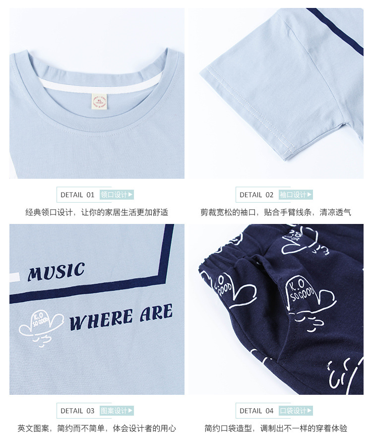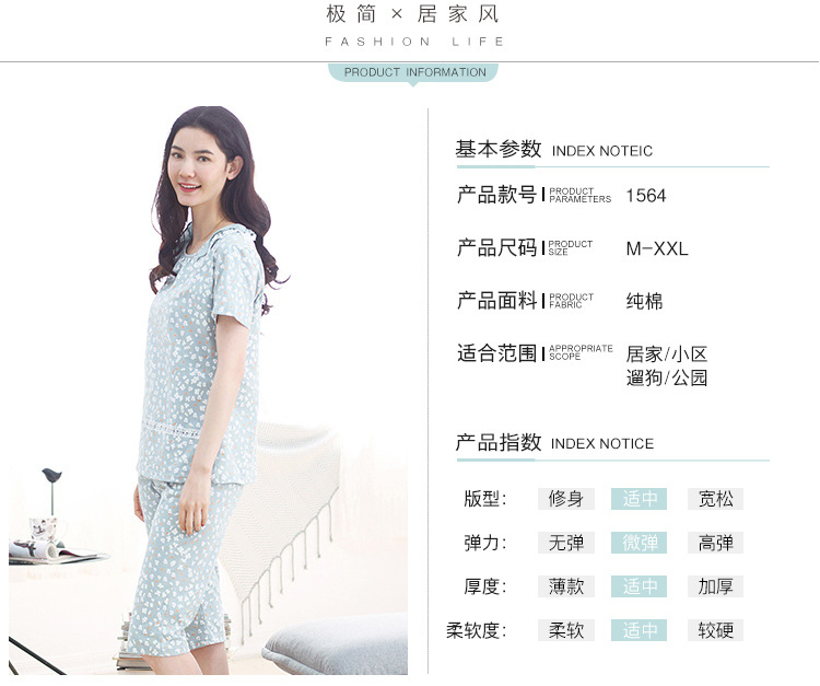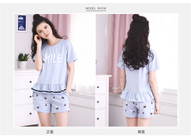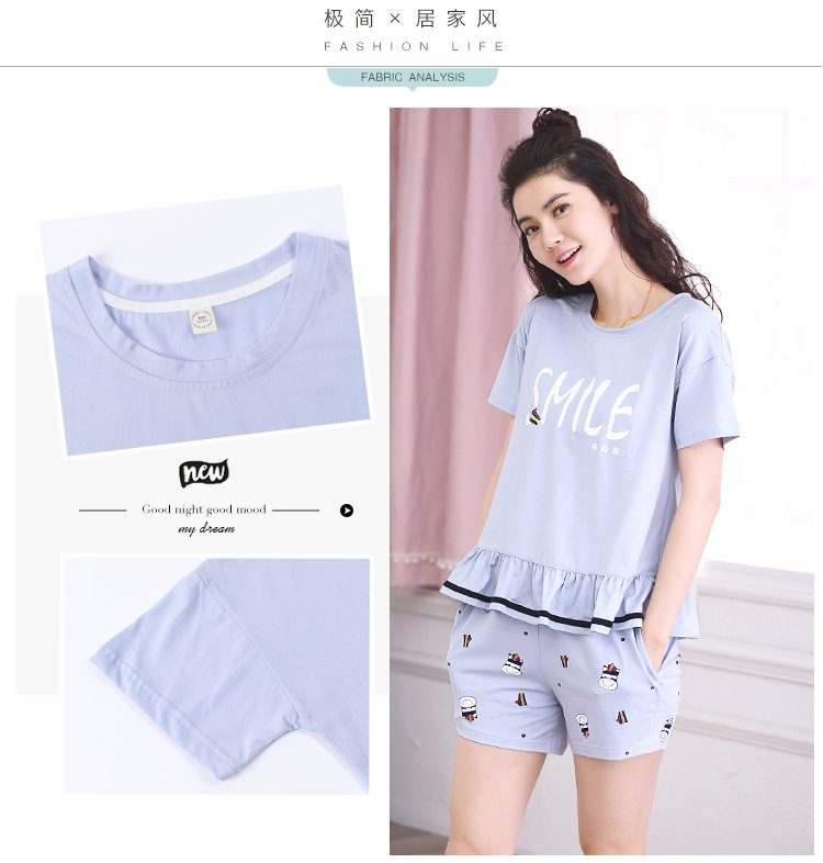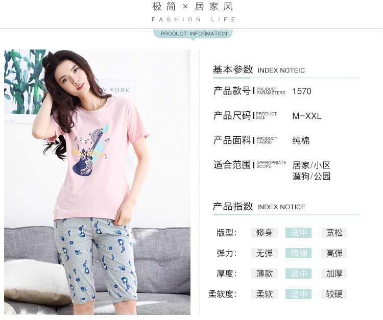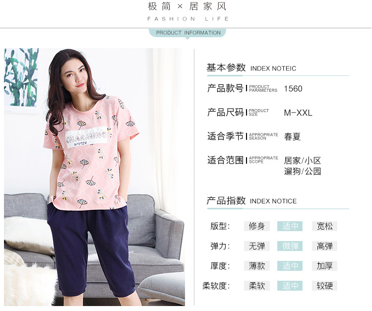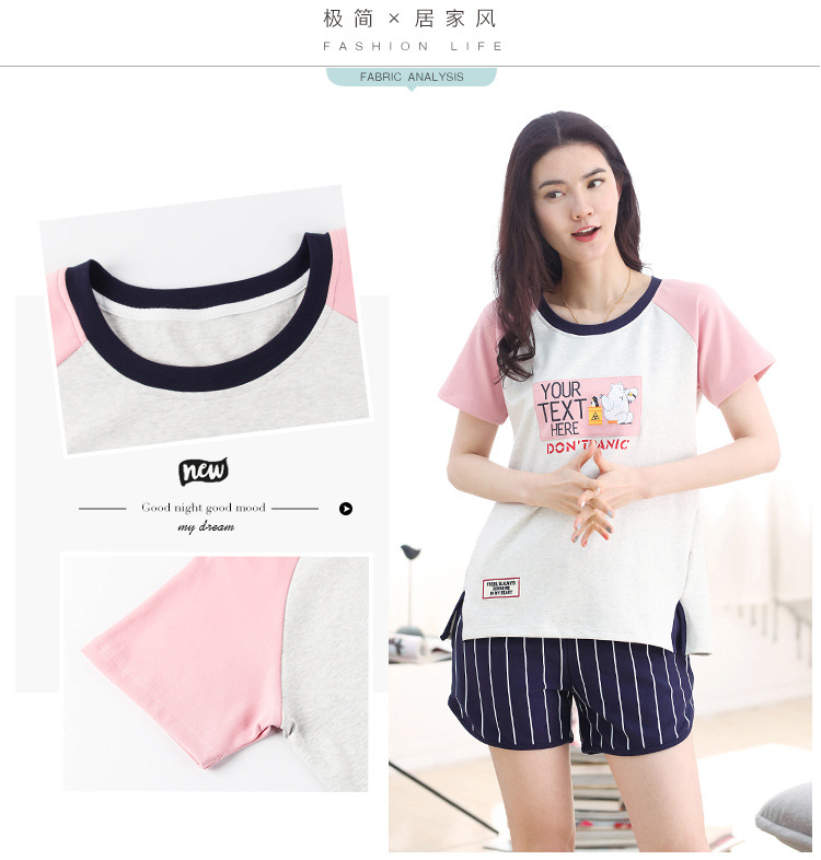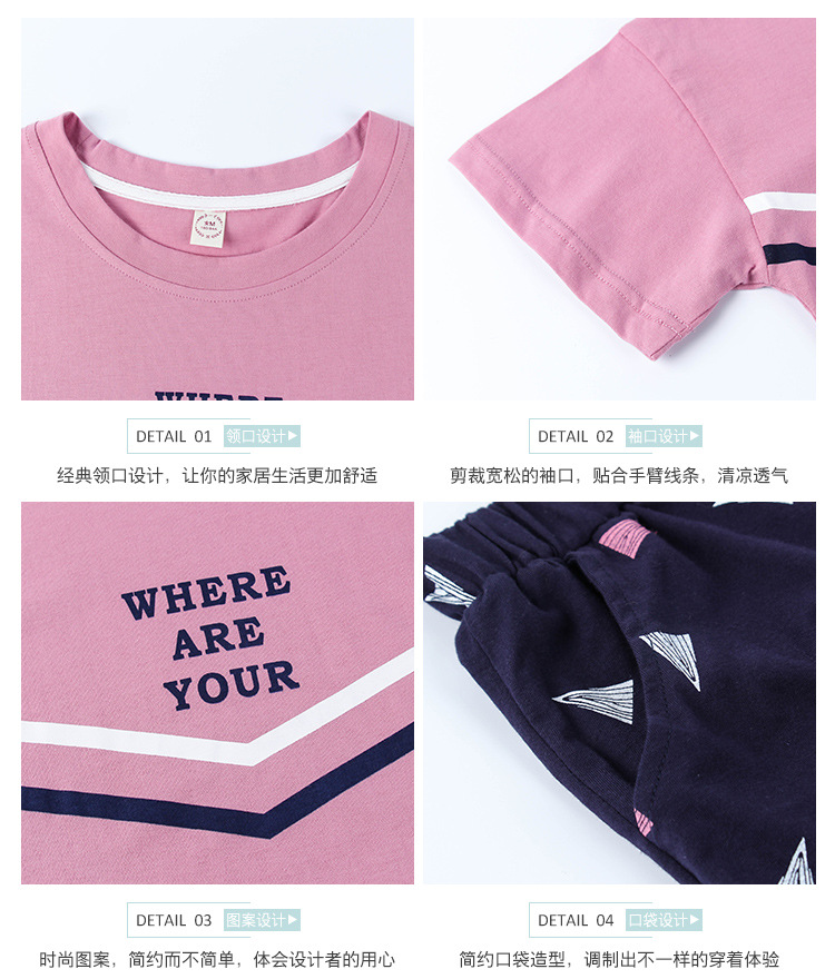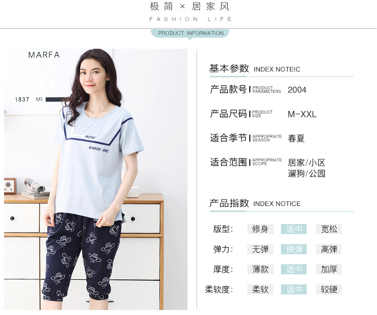 美汇特供:爱情妮2017夏季新款韩版时尚可爱卡通短袖七分裤睡衣套装