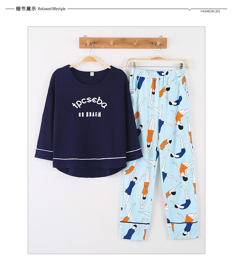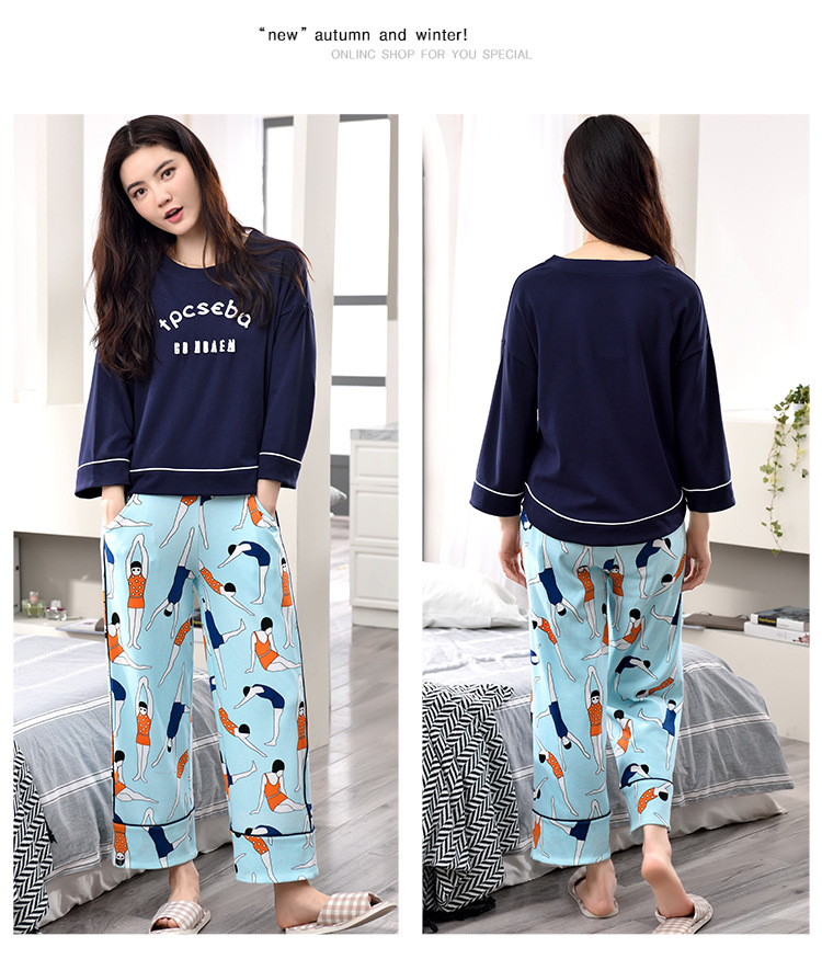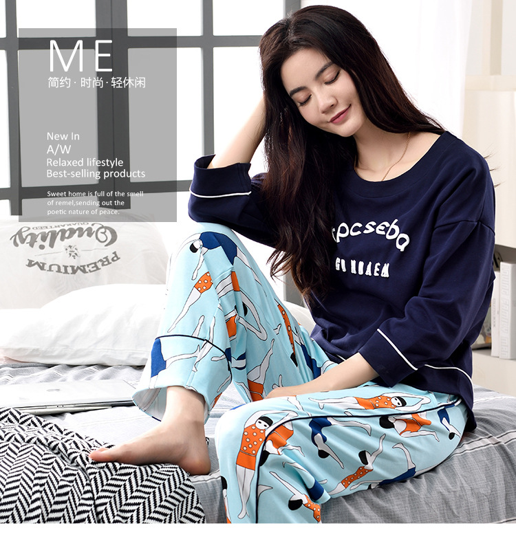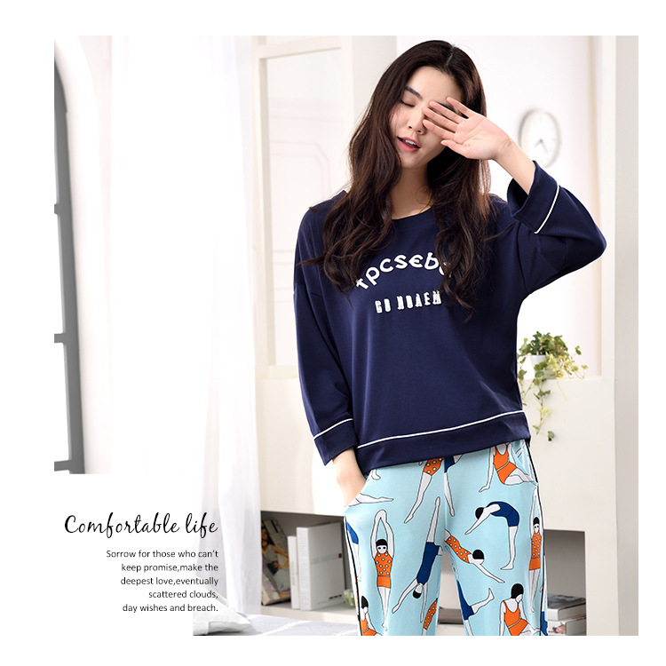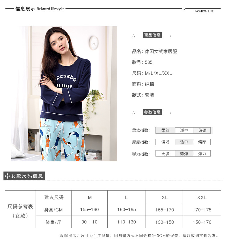 美汇特供:爱情妮2017秋季新款女士长袖纯棉休闲加大码睡衣