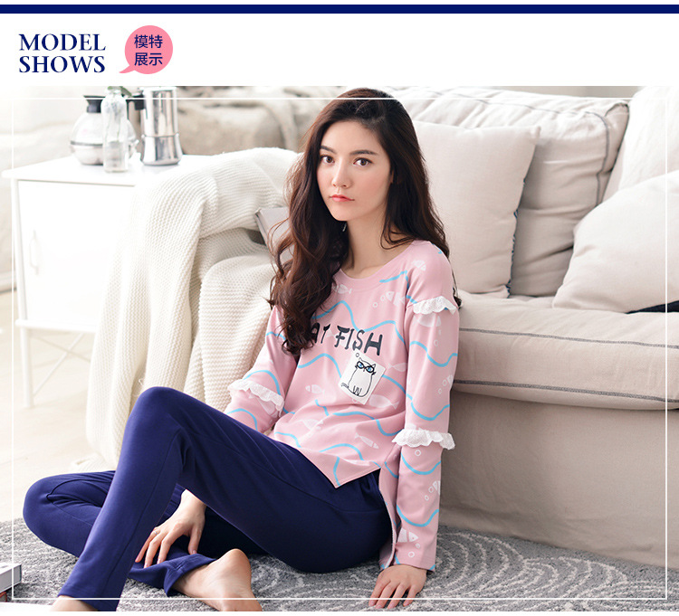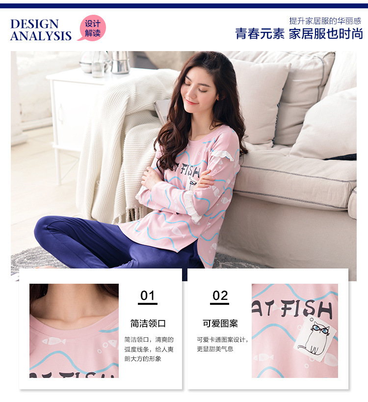 美汇特供:爱情妮2017秋季新品女款长袖睡衣全棉舒适纯棉休闲女家居服套装
