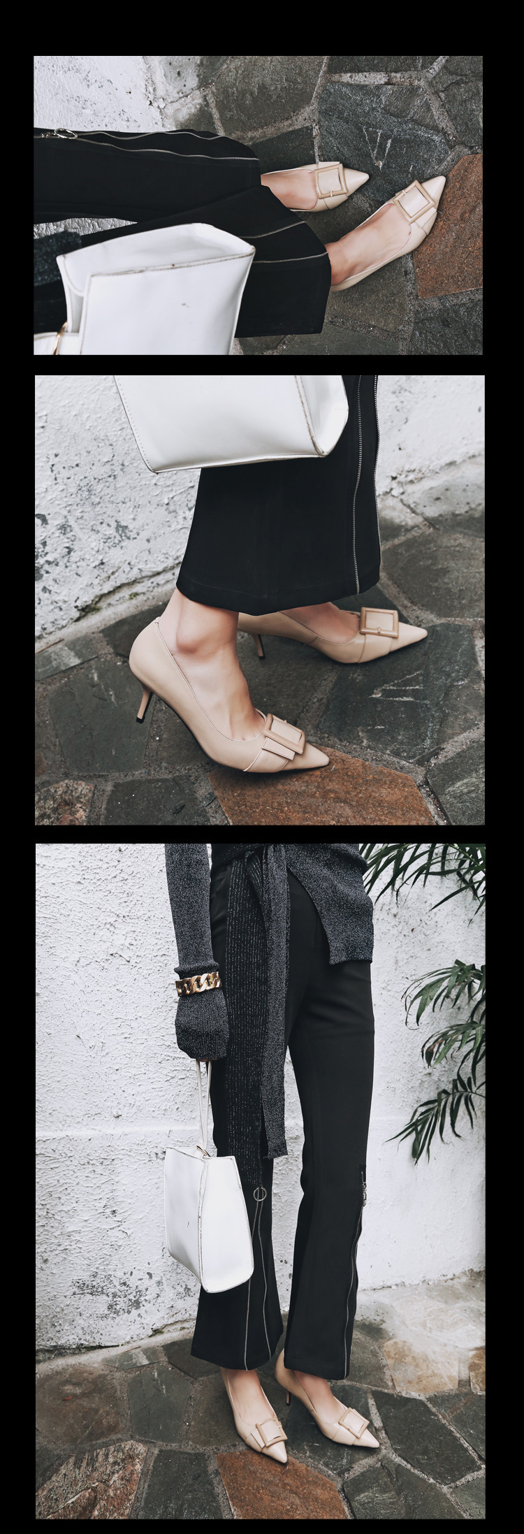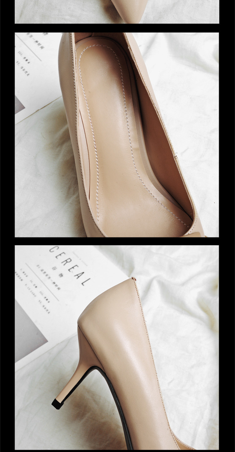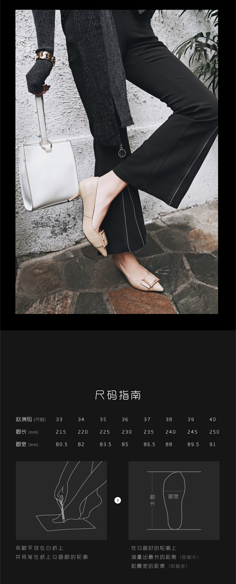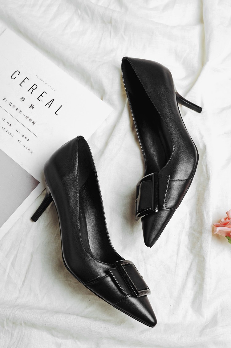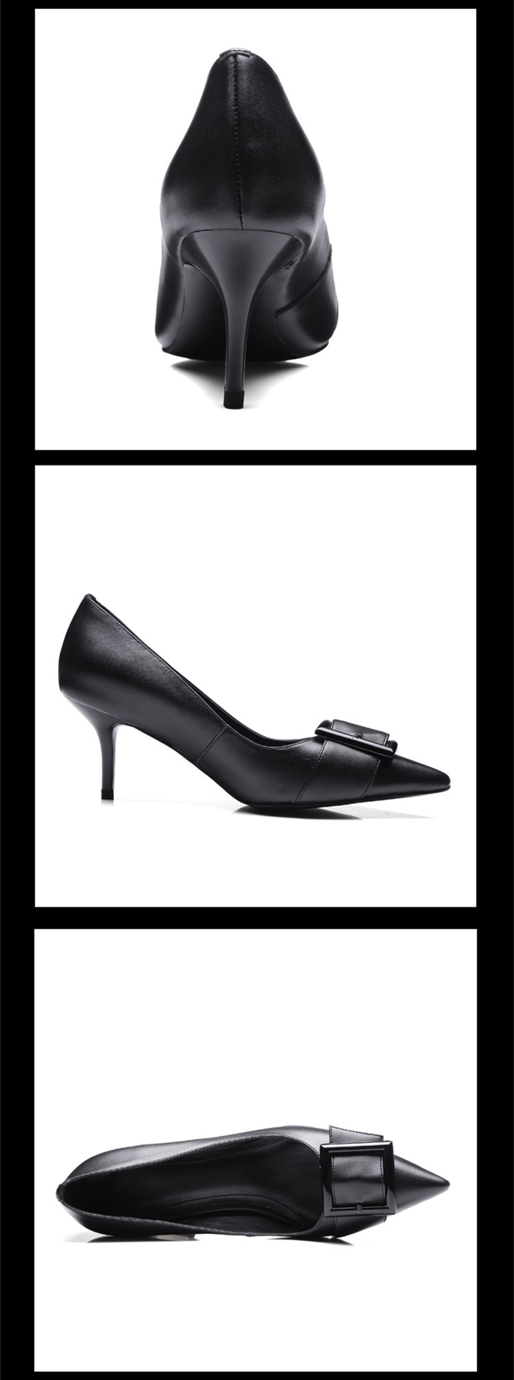 美汇特供:2017秋季新款全皮女鞋韩版头层皮尖头浅口方扣细跟真皮单鞋高跟鞋