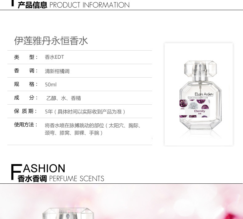 美汇特供:伊莲雅丹女士香水永恒香氛法国进口正品持久清新