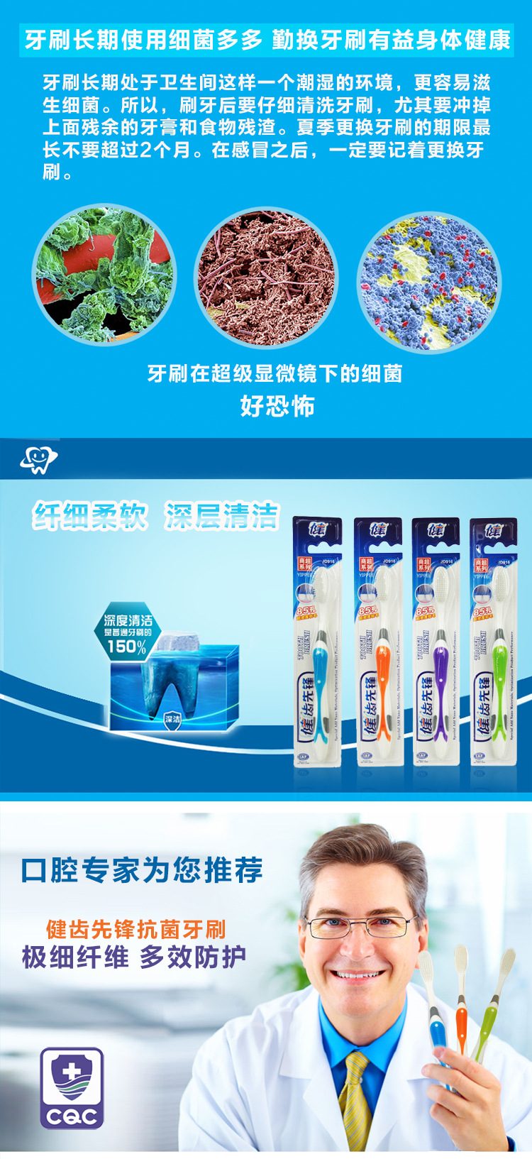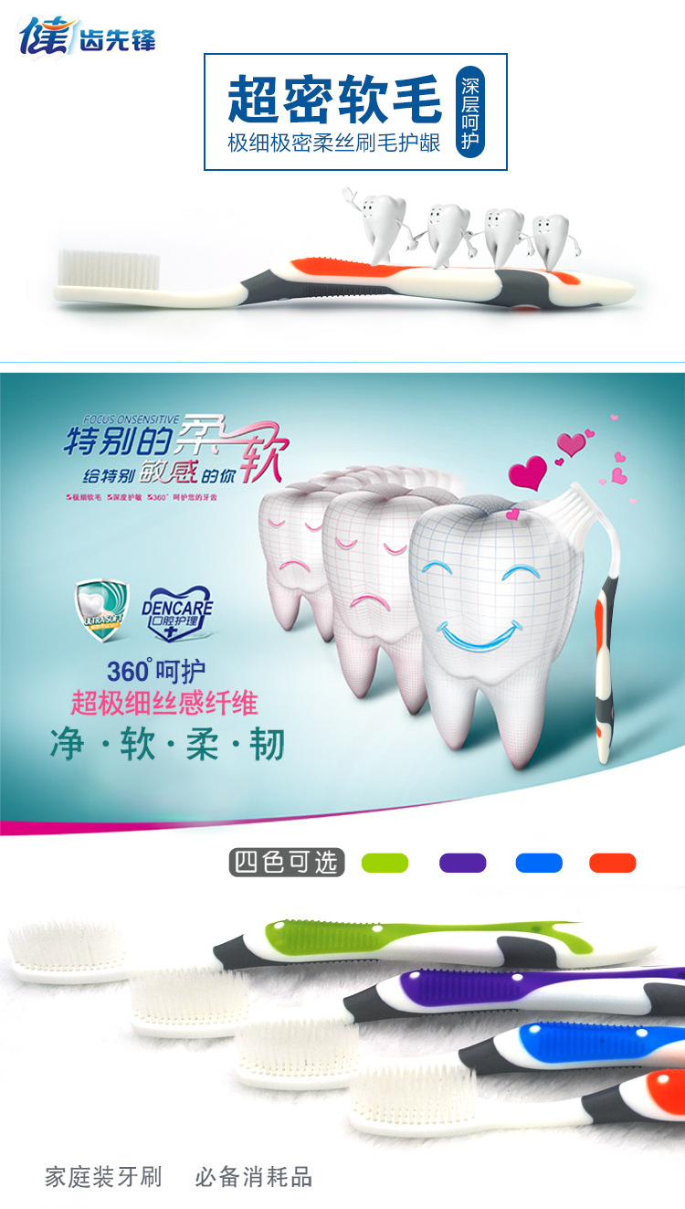美汇特供:健齿先锋新款牙刷10支 成人大头85孔进口超密软毛护龈牙刷美白牙齿