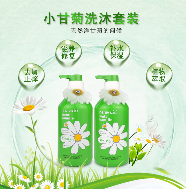 美汇特供:德国进口小甘菊沐浴露洗发露套装持久留香美白保湿690ml