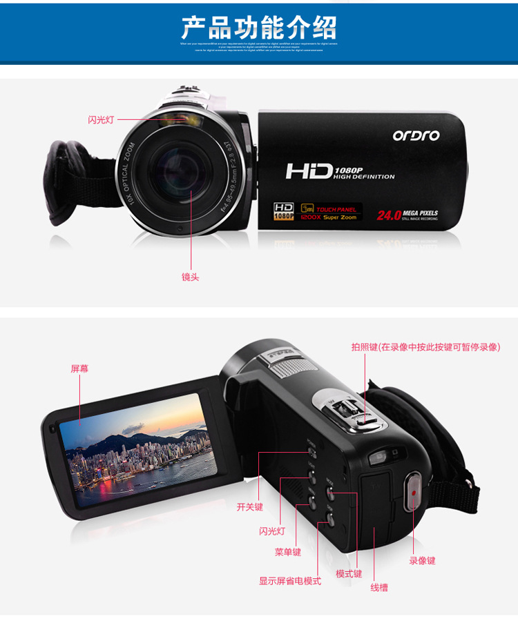 美汇特供:欧达HDV-Z80高清2400万像素触控遥控摄像机 家用专业数码摄像机