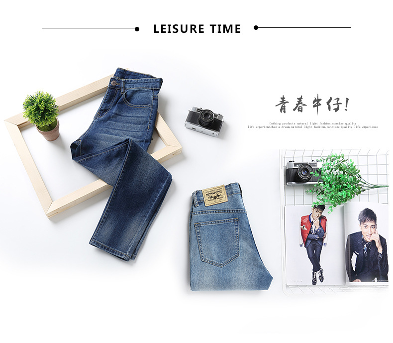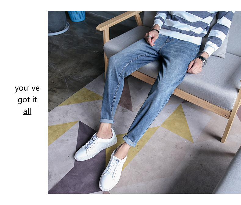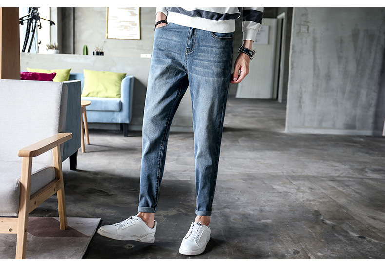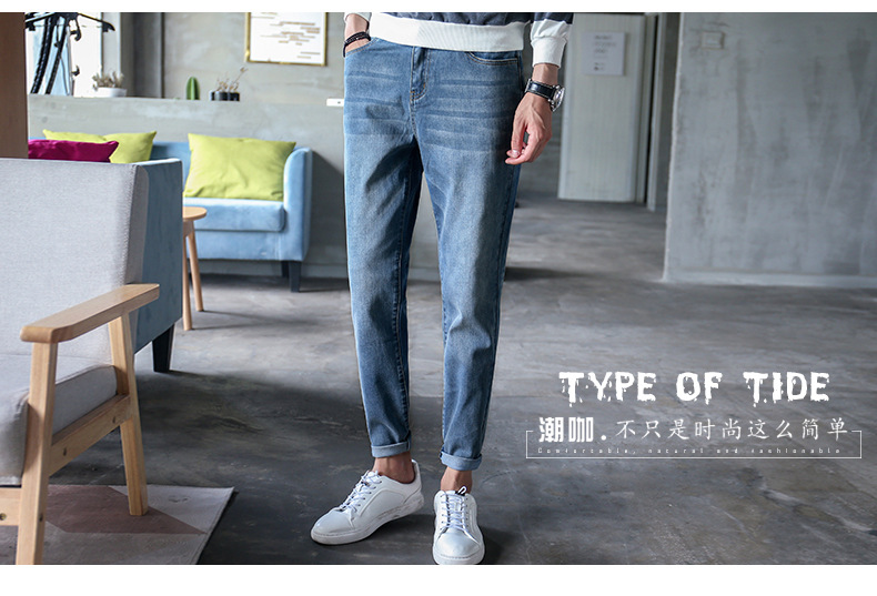美汇特供:韩路休闲男装 2017秋季新品男式牛仔裤修身小脚裤子百搭牛仔裤