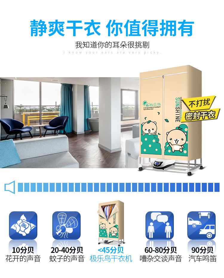美汇特供:极乐鸟干衣机可折叠双层烘干机遥控智能负离子杀菌烘衣机