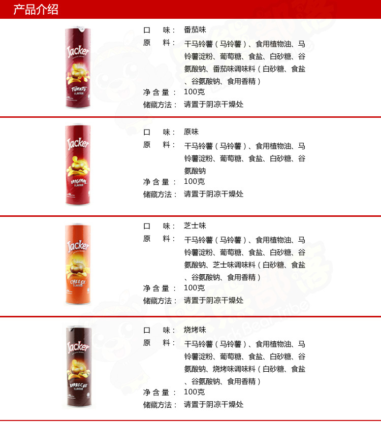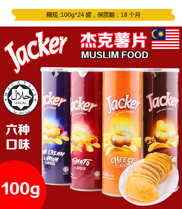 美汇特供:Jacker薯片 马来西亚原装进口休闲膨化食品 热卖零食罐装100g*2罐