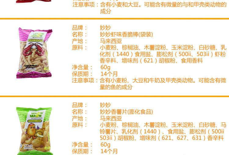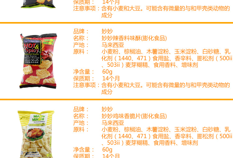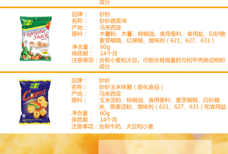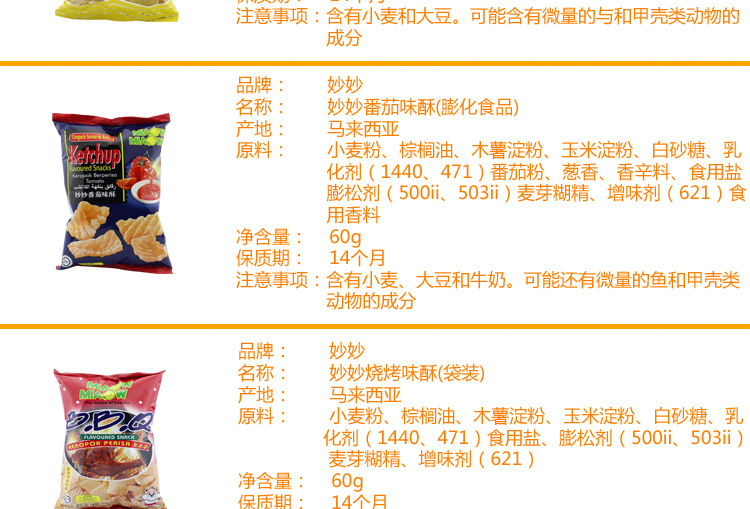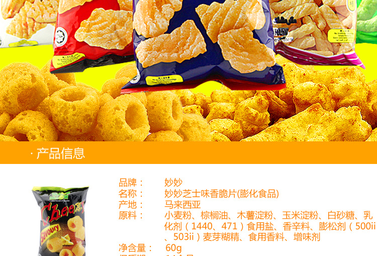 美汇特供:马来西亚进口休闲零食 人气经典妙妙多口味膨化食品60g*5包