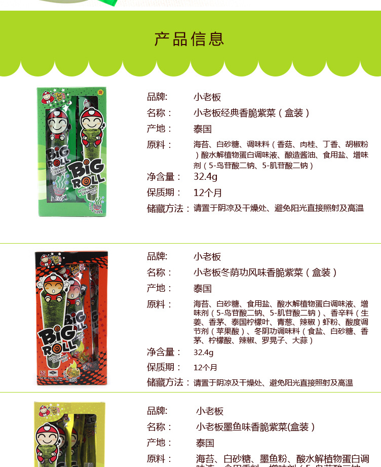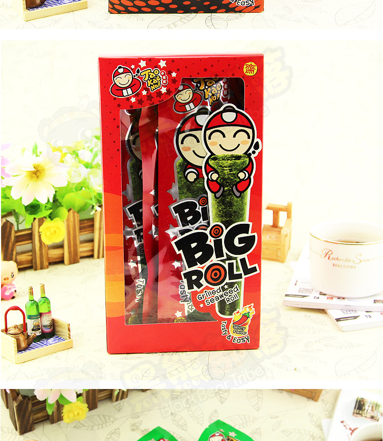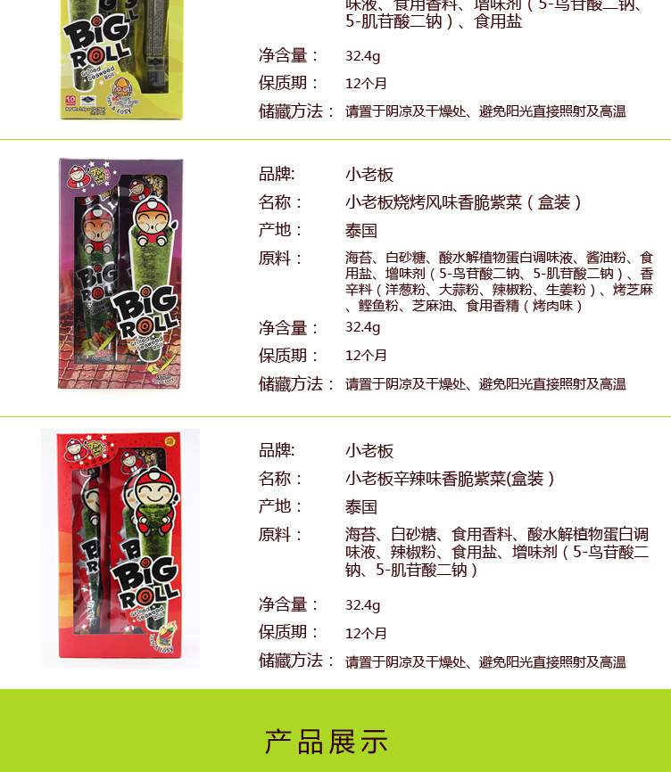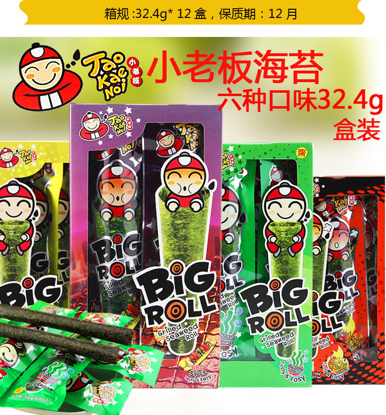 美汇特供:泰国进口零食 热卖休闲食品 小老板盒装烤紫菜卷 海苔32.4g