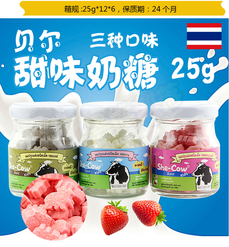 美汇特供:贝尔牛奶高钙片糖果 休闲儿童奶糖 泰国进口食品营养奶片零食25g