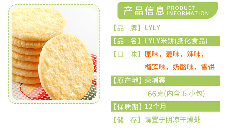 美汇特供:柬埔寨进口食品 LYLY多口味米饼 热卖膨化食品休闲饼干66g*5盒