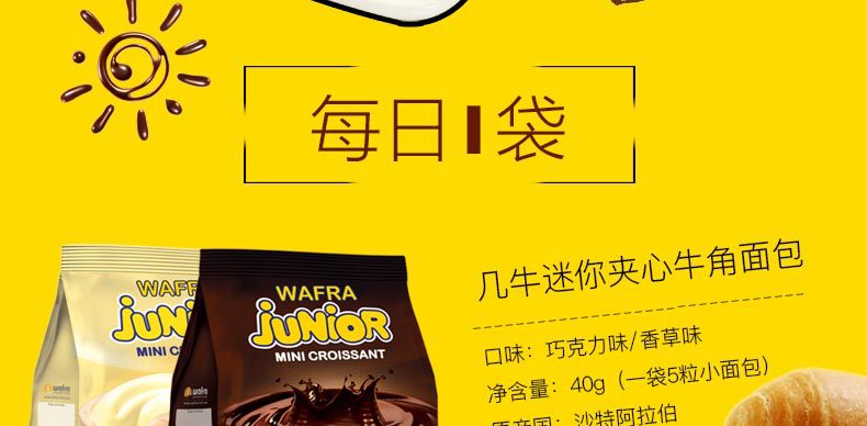 美汇特供:沙特进口食品 几牛迷你夹心牛角面包 热卖休闲零食糕点40g