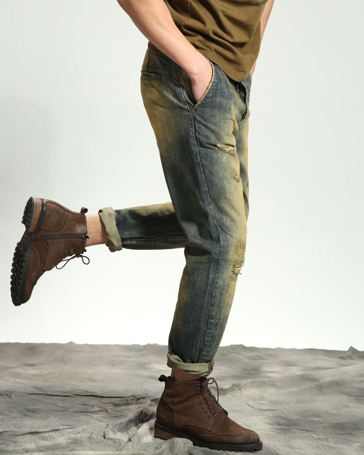 美汇特供:RS男装|2017春夏个性潮流破洞男式牛仔裤 欧美简约做旧牛仔裤男