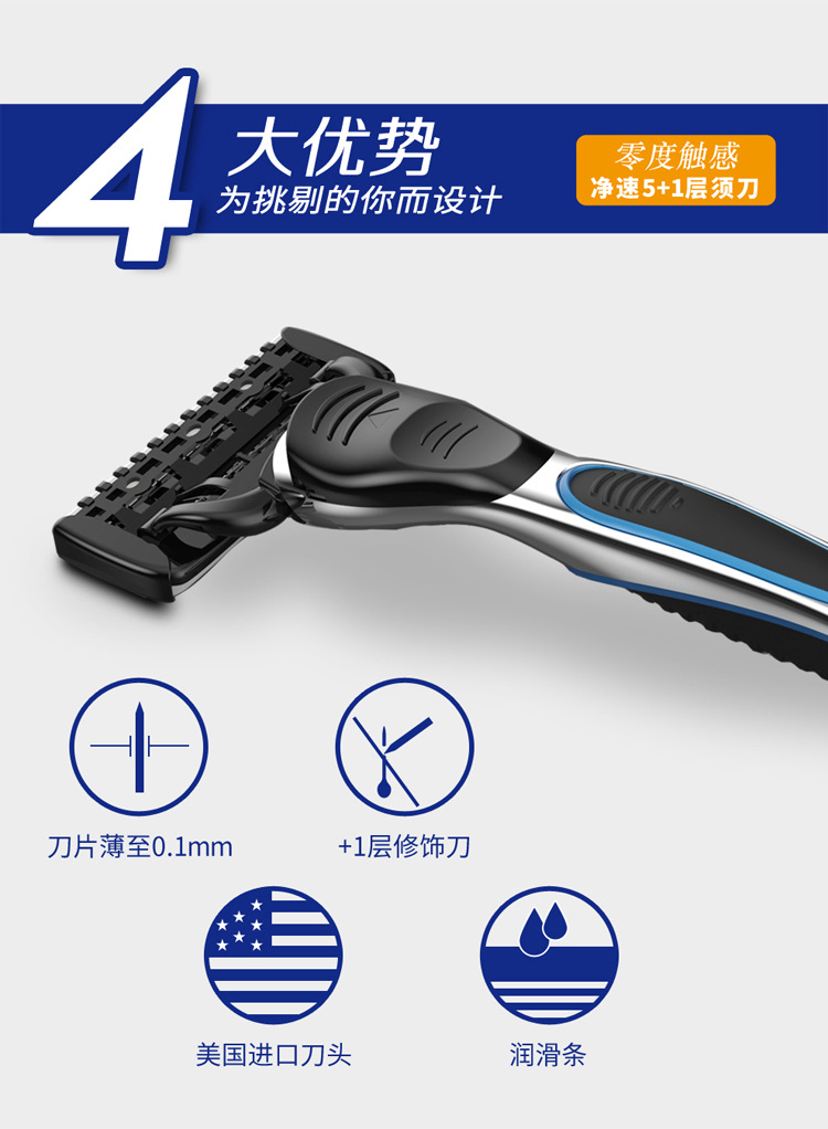 美汇特供:美国进口刀片英吉利5层手动剃须刀手动刮胡刀 手动1刀架6刀头泡沫