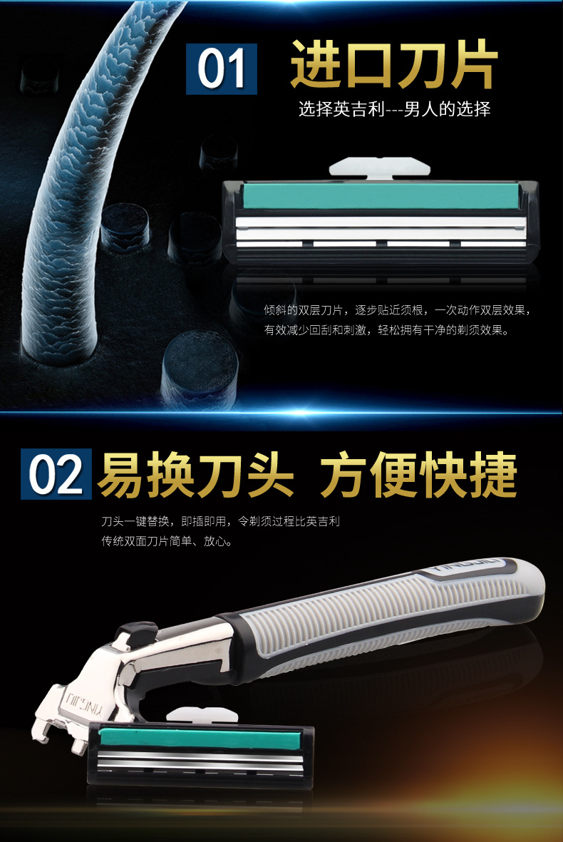美汇特供:英吉利 炫锋双层手动剃须刀 刮胡刀 含1刀架6刀片 美国进口刀片