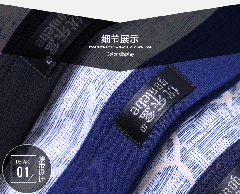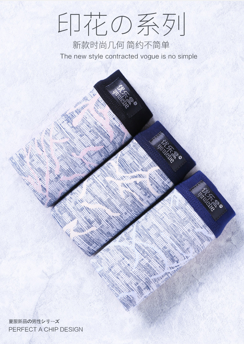 美汇特供:莫代尔男士舒适棉质印花内裤中腰平角短裤盒装 3条装