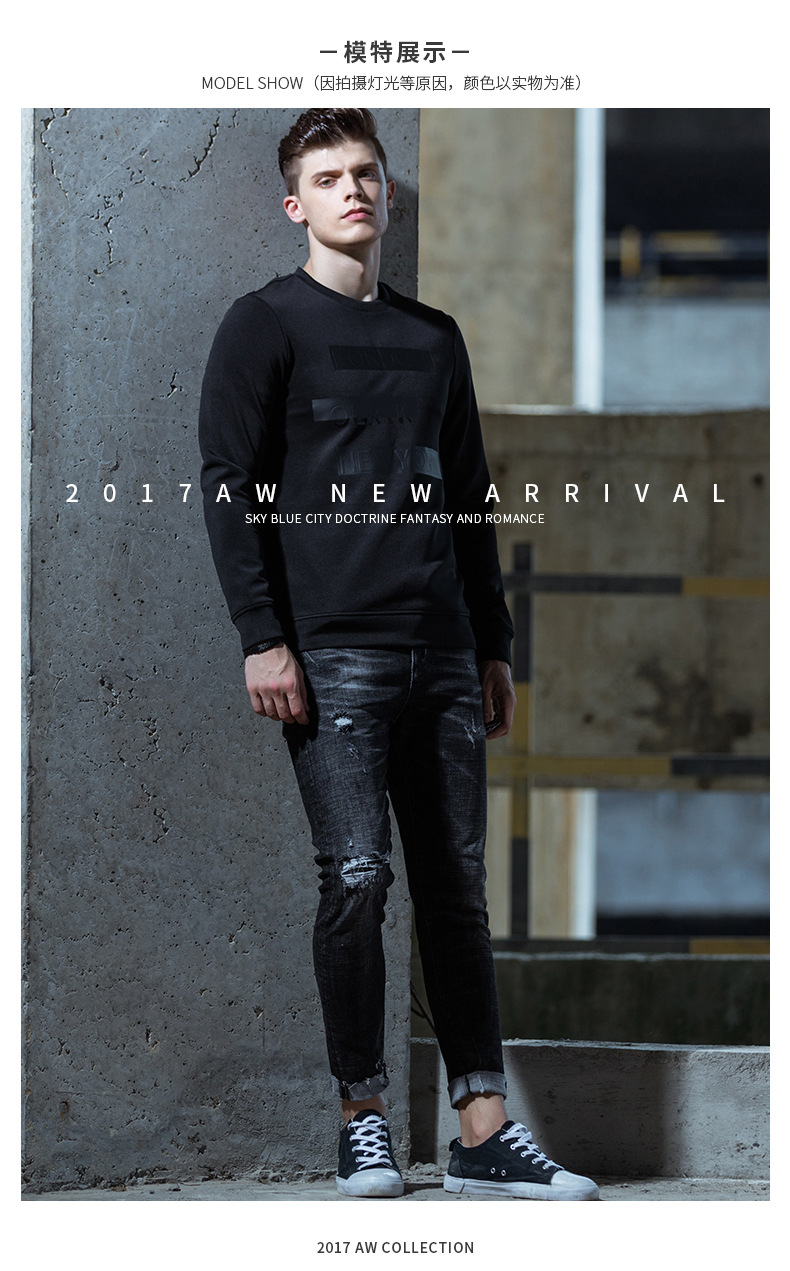 美汇特供:OLRIK秋冬潮流时尚修身男士破洞牛仔裤微弹修身黑色裤子男装