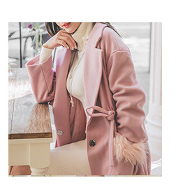 美汇特供: 2017实拍秋冬装新款韩版长袖中长款外套显瘦系带连帽风衣