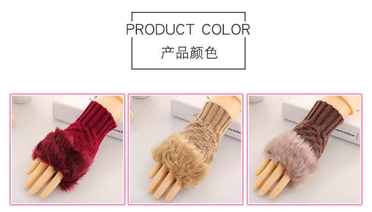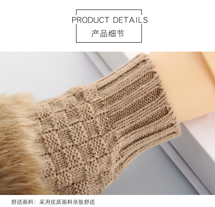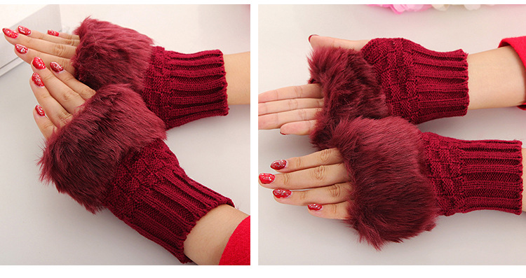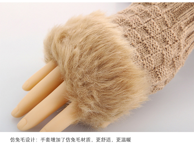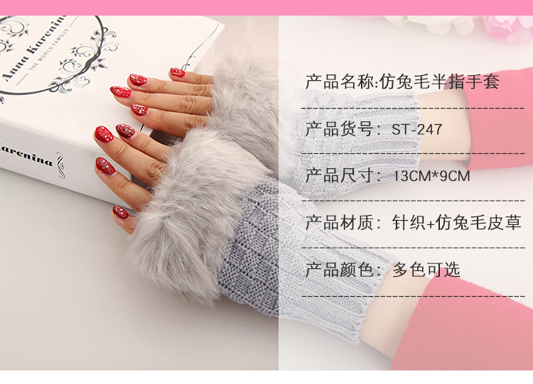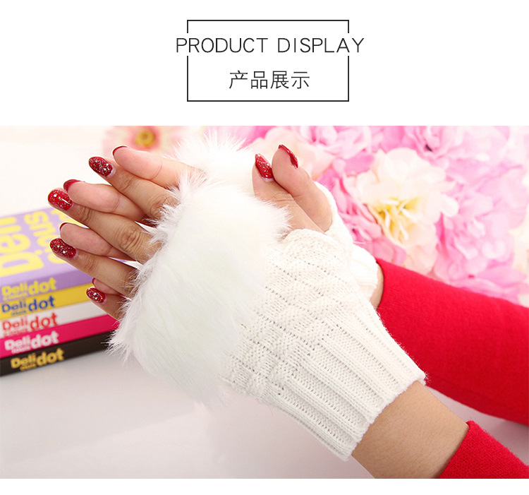 美汇特供:2017冬季新款 韩版兔毛半指皮草手套 菱形露指手套