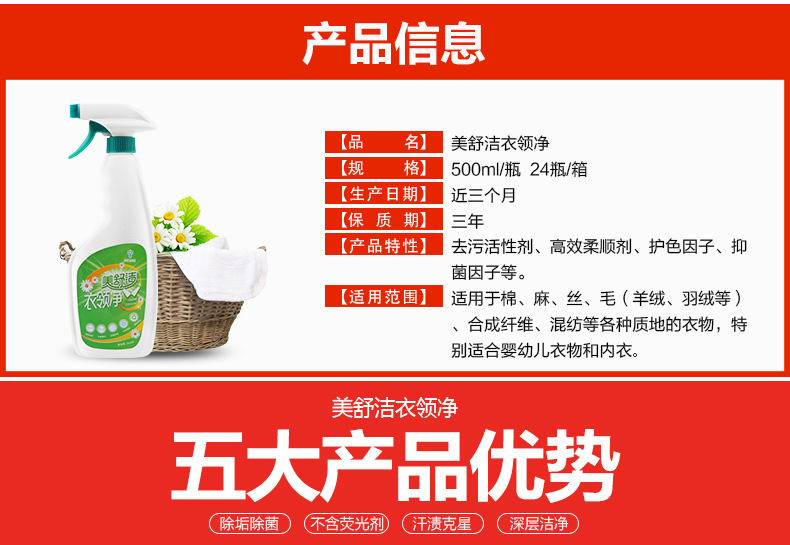 美汇特供:美舒洁500ml衣领袖口衣领净 强力去污去油渍免揉搓清洁洗涤剂
