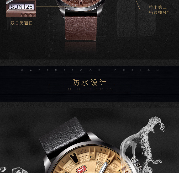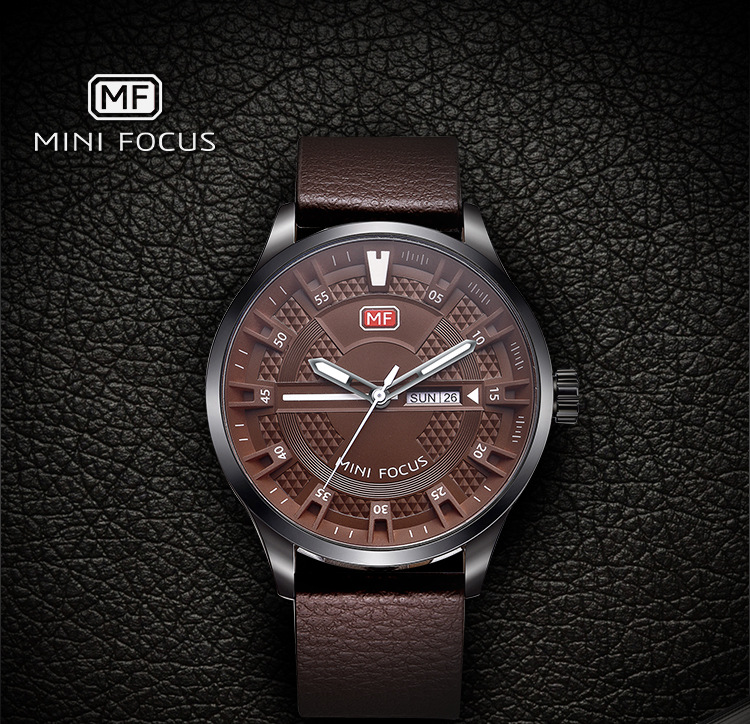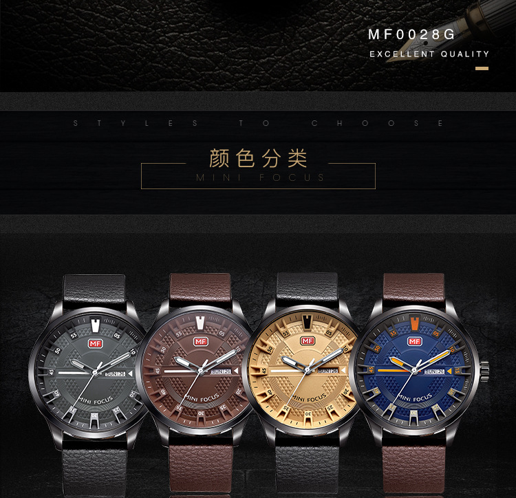 美汇特供:MINI FOCUS男表石英表潮流真皮表带进口机芯