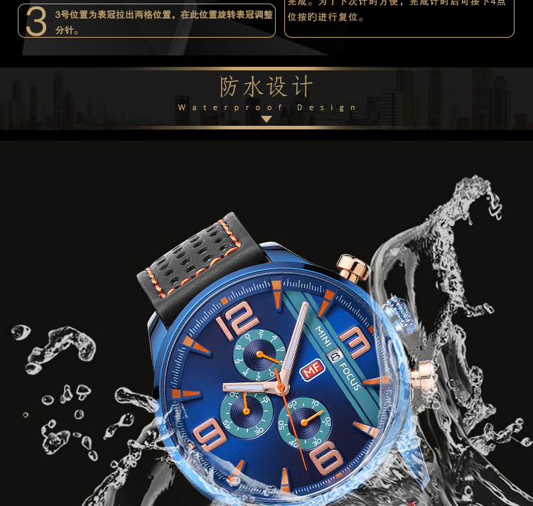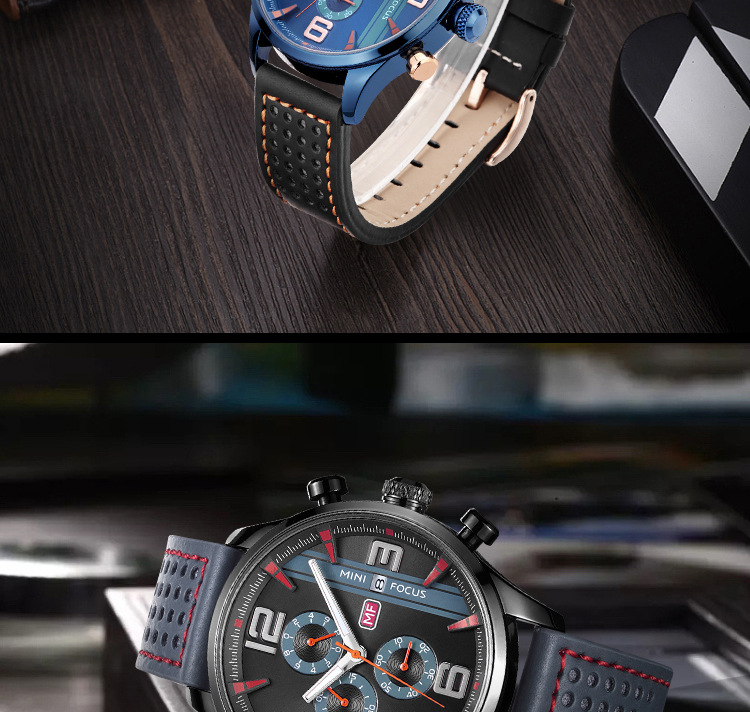 美汇特供:MINI FOCUS福克斯男表石英表运动多功能设计款三眼日历