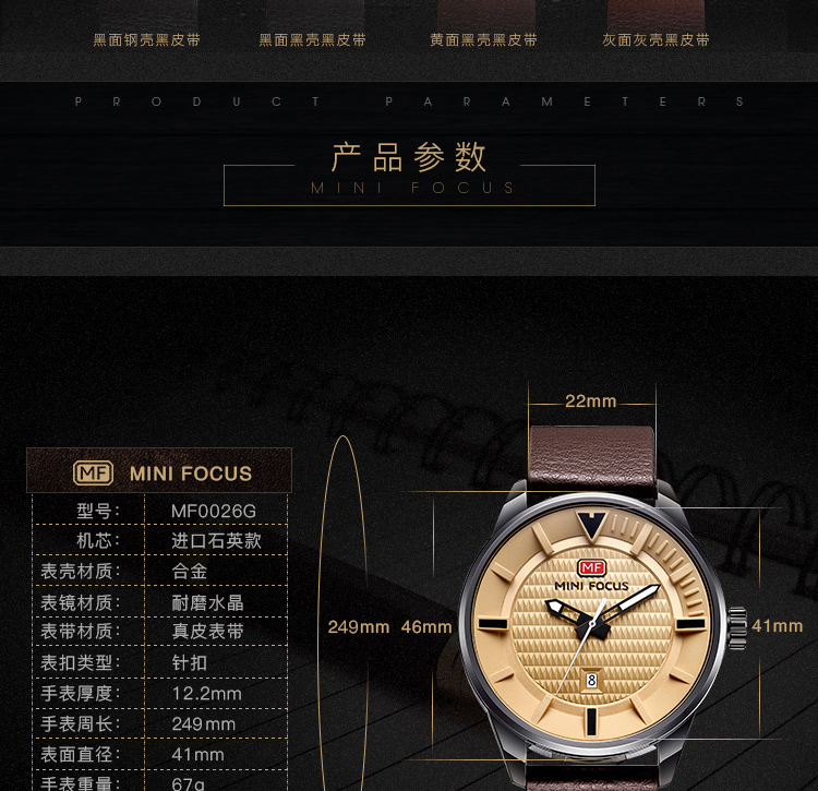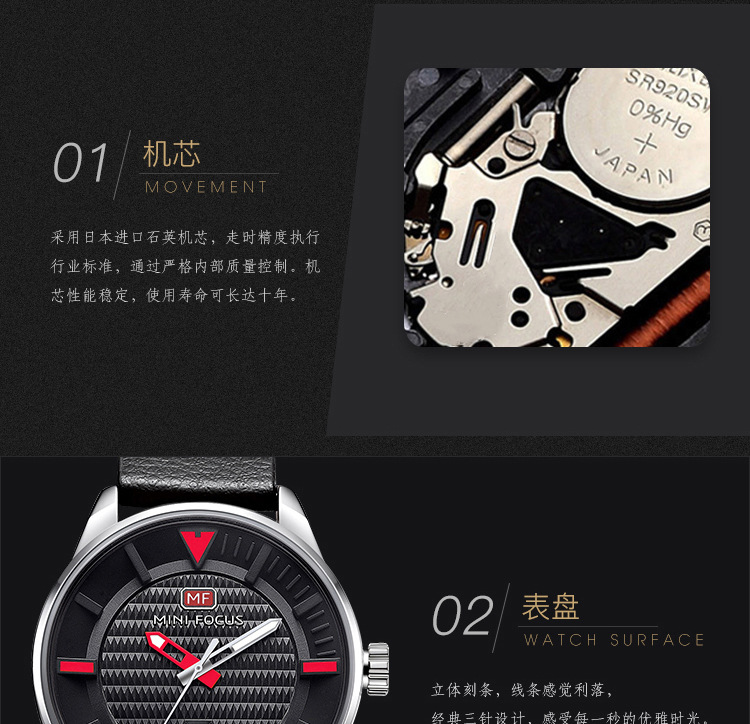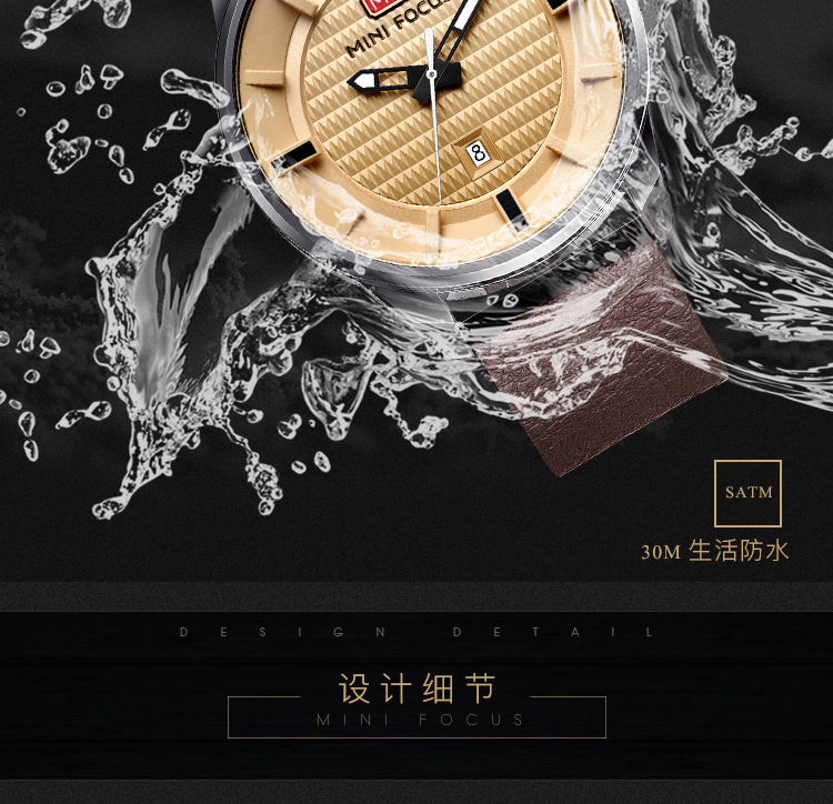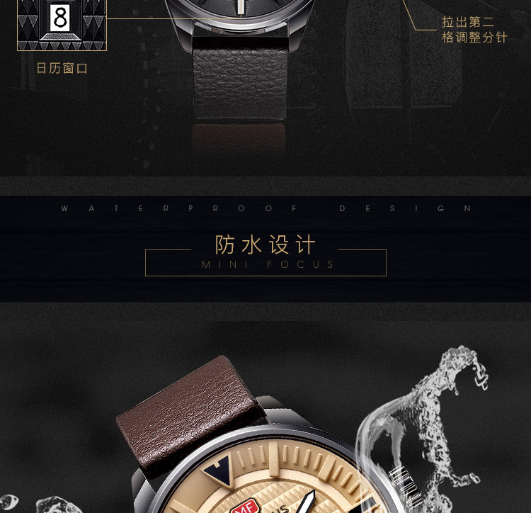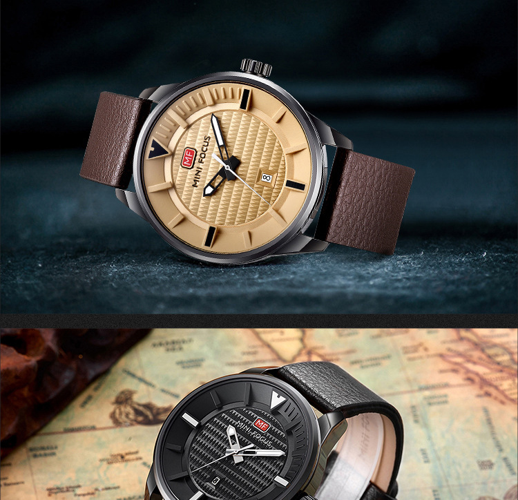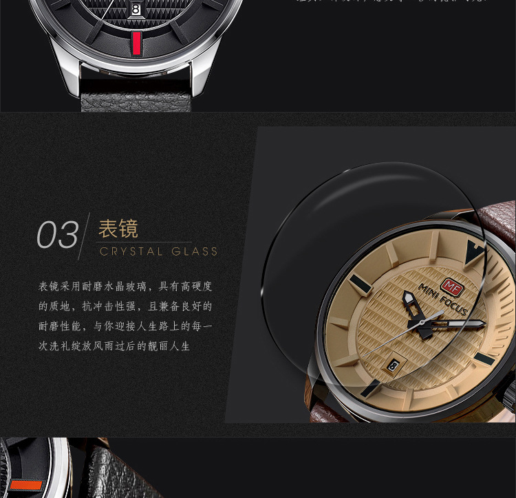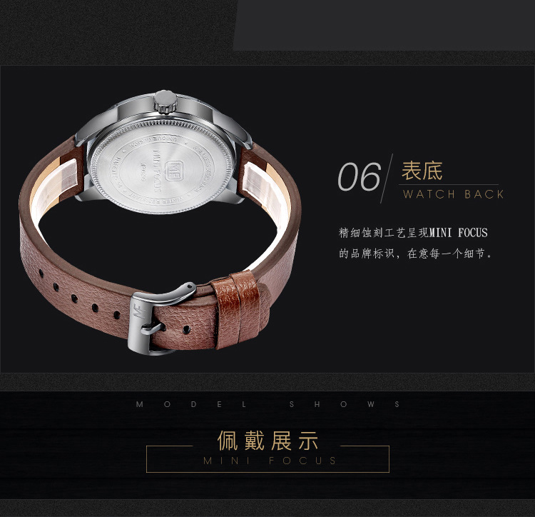 美汇特供:MINI FOCUS男表石英表简约潮流三针手表进口机芯真皮表带