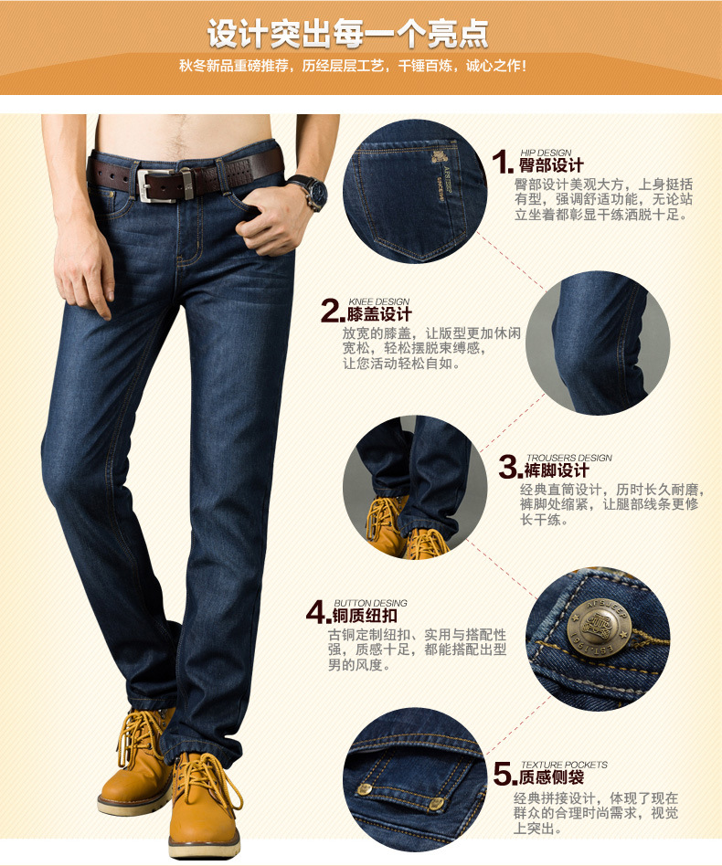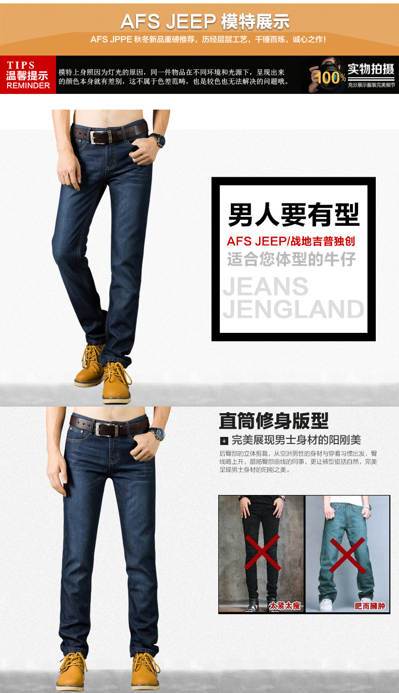 美汇特供: 蓝漫板图战地加绒牛仔裤男加厚商务直筒牛仔裤男式大码男装裤子