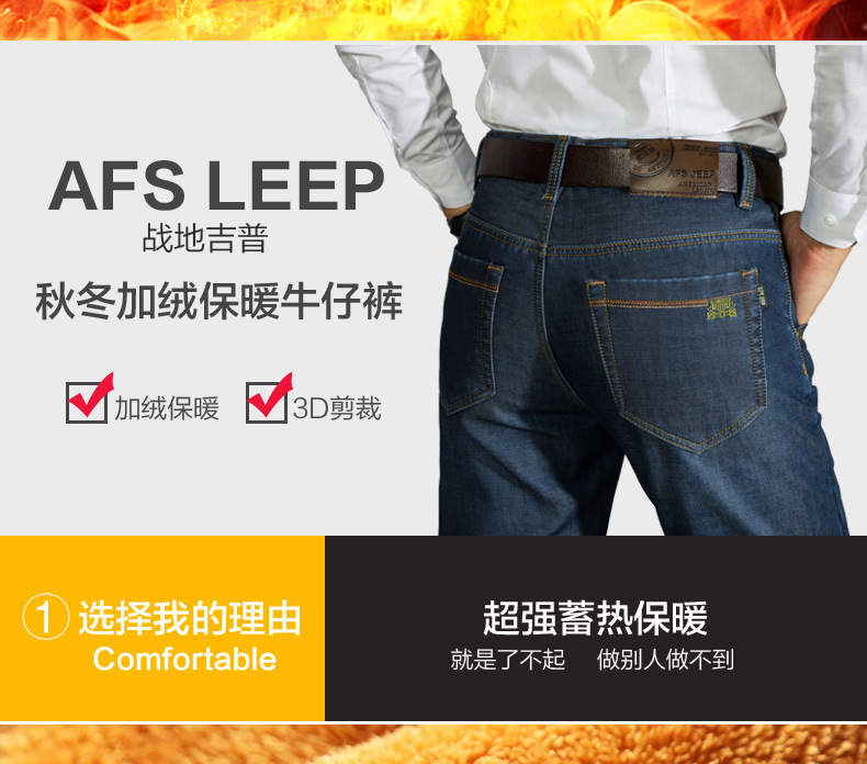 美汇特供: 蓝漫板图宽松牛仔裤男式加绒加厚保暖中年男士牛仔裤子男装
