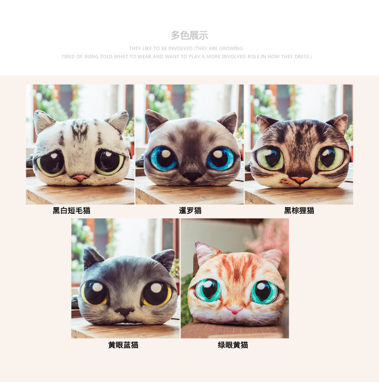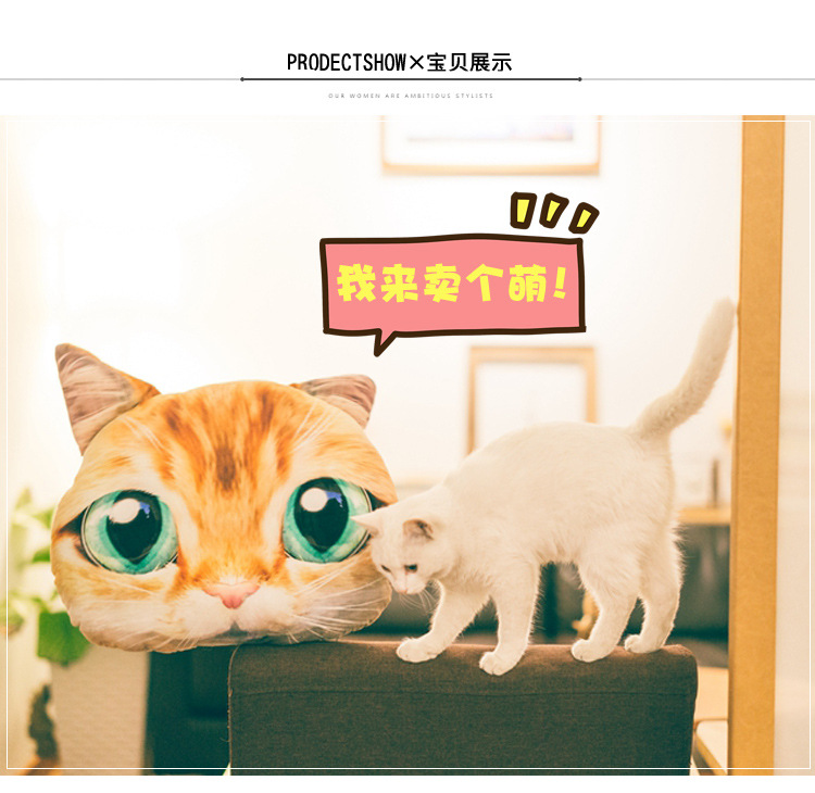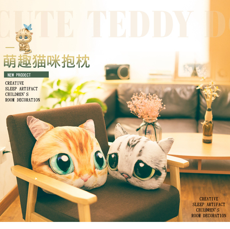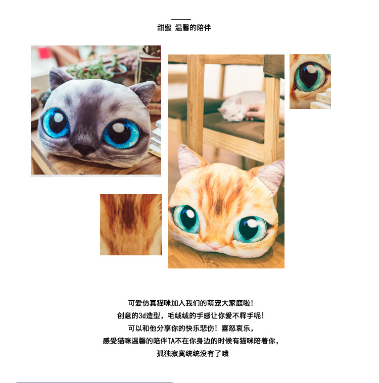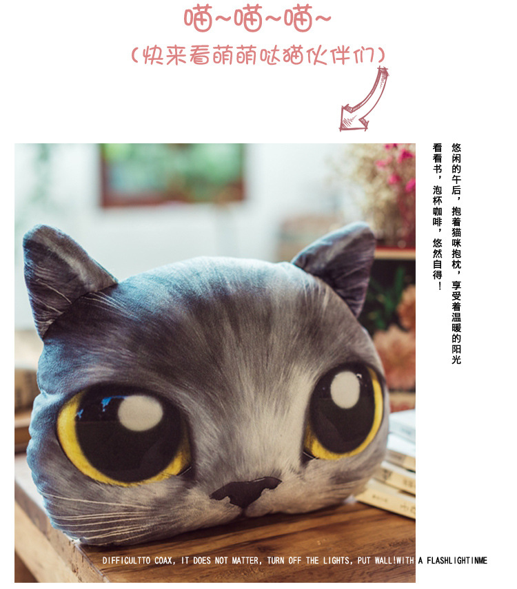 美汇特供:创意喵星人猫头抱枕毛绒玩具小猫咪玩偶娃娃腰靠枕送儿童女生礼物